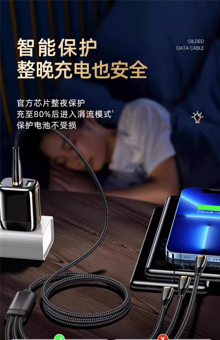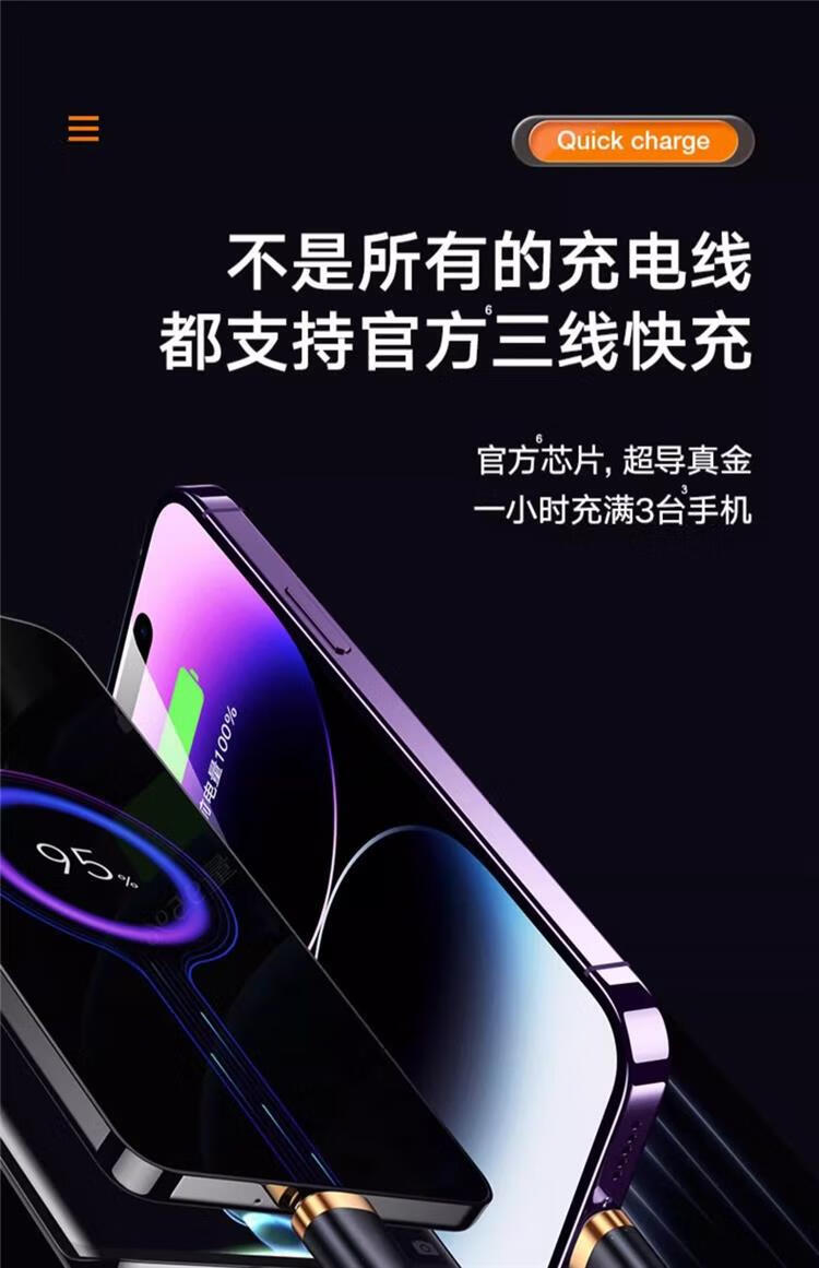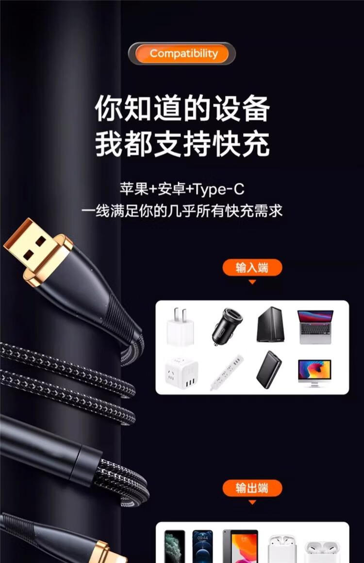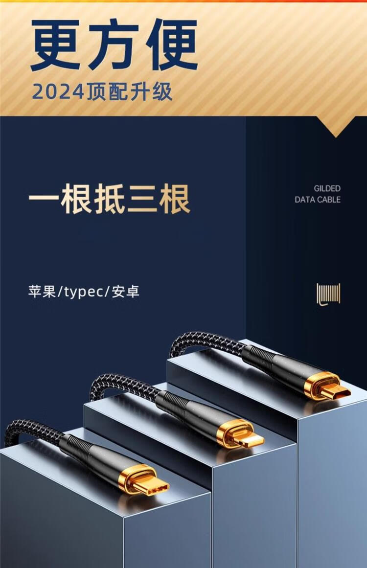 Huawei (HUAWEI) cable de datos de carga de flash de 240 W adaptado uno a uno cable de carga rápida tres en uno cable de carga de Apple para automóvil Huawei Xiaomi OPPO negro chapado en oro tres en uno carga de flash de 500 W con luz LED 2,0 metros productos recomendados buenos - descuento de subsidio por tiempo limitado
