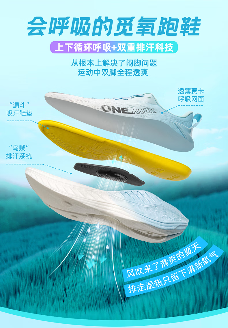 Wanmi OneMix oxygen ultra-light shock-absorbing sports running shoes outdoor jogging shoes soft elastic mesh men's and women's training shoes Gu Beihuang 37