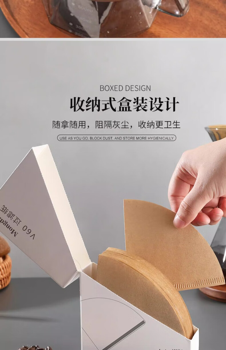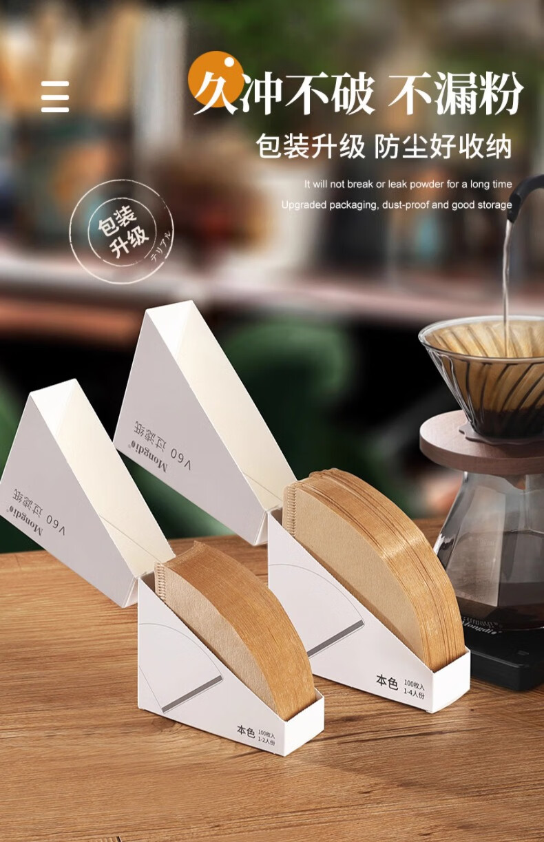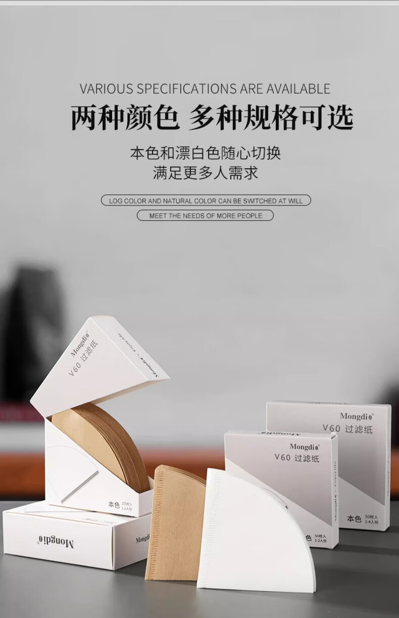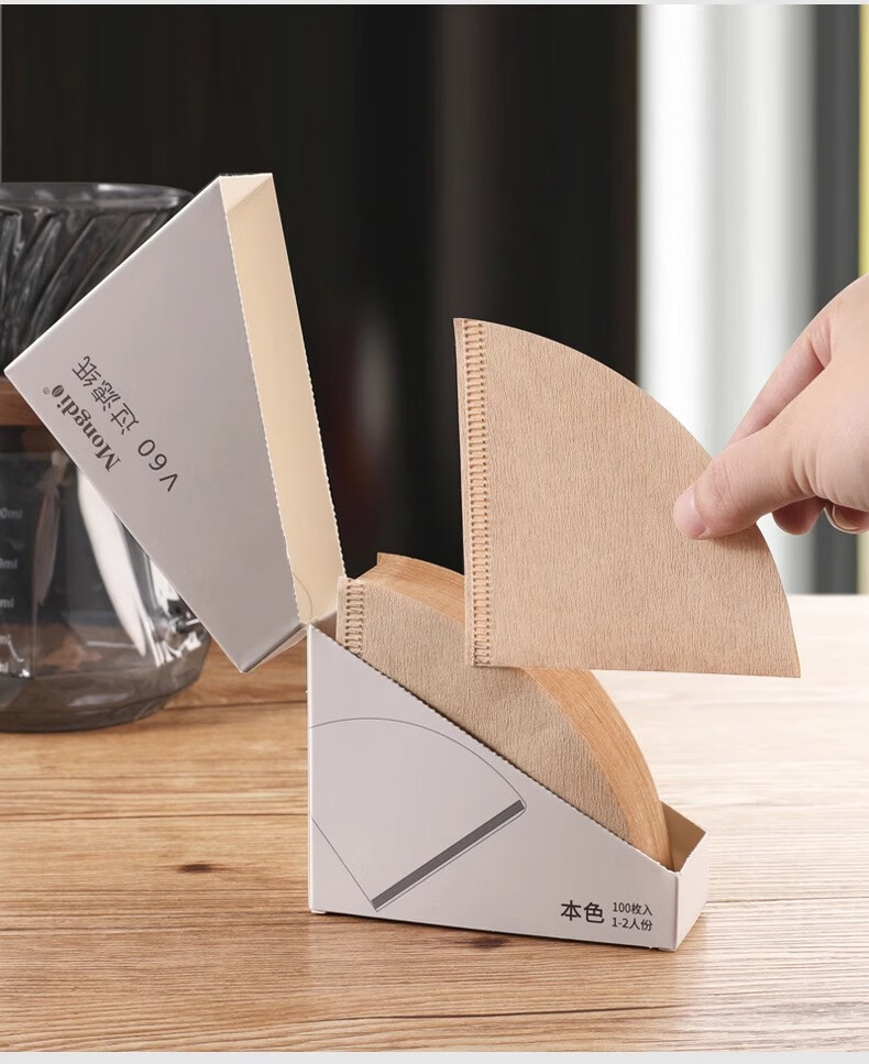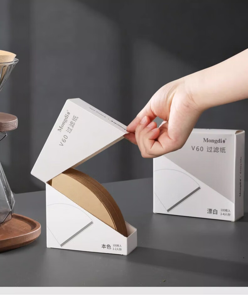 Mongdio coffee filter paper coffee filter paper hand brew v60 filter paper filter drip American coffee machine fan-shaped coffee paper 101# conical filter paper 50 pieces boxed with measuring spoon