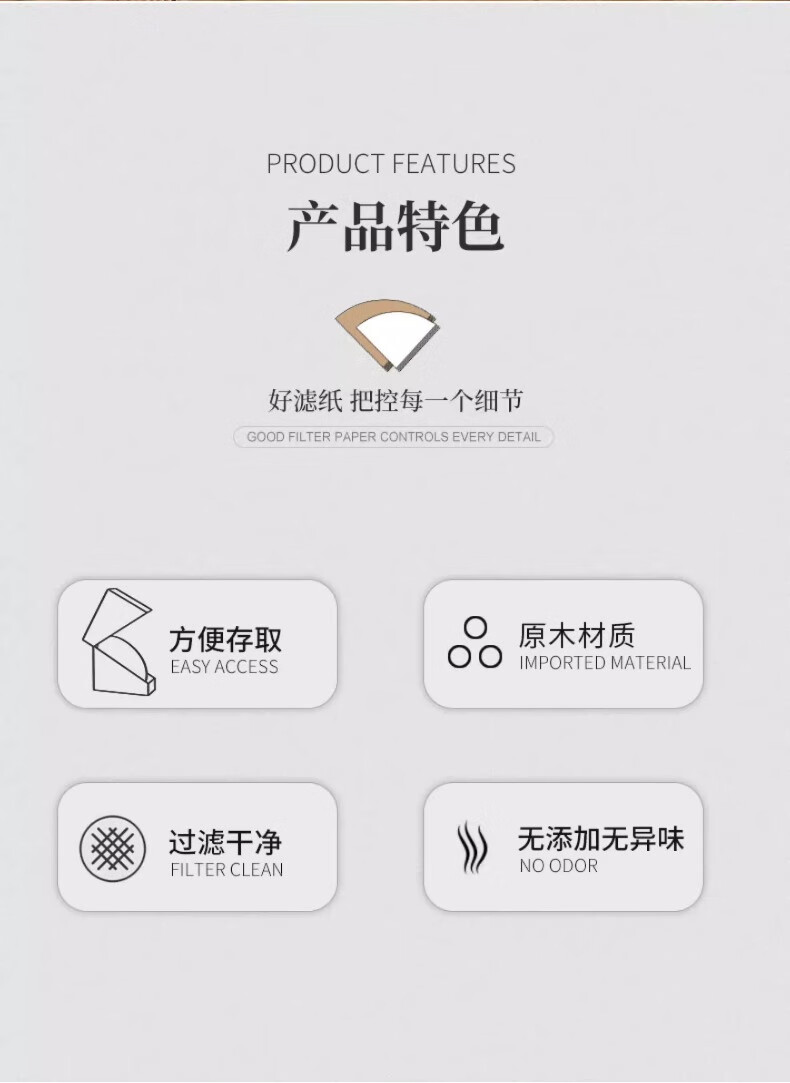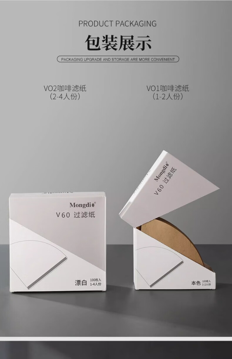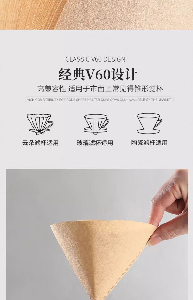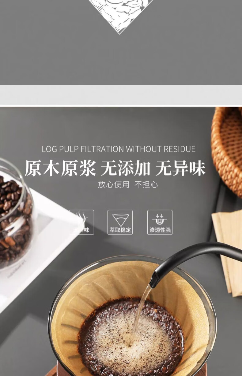 Mongdio coffee filter paper coffee filter paper hand brew v60 filter paper filter drip American coffee machine fan-shaped coffee paper 101# conical filter paper 50 pieces boxed with measuring spoon