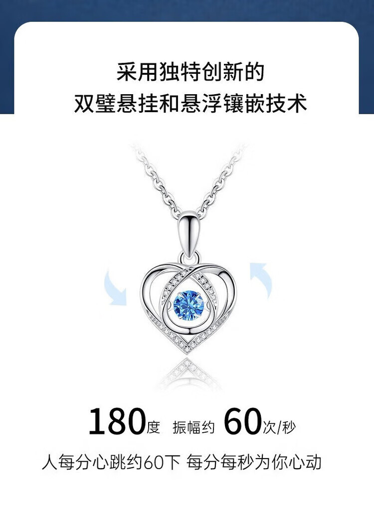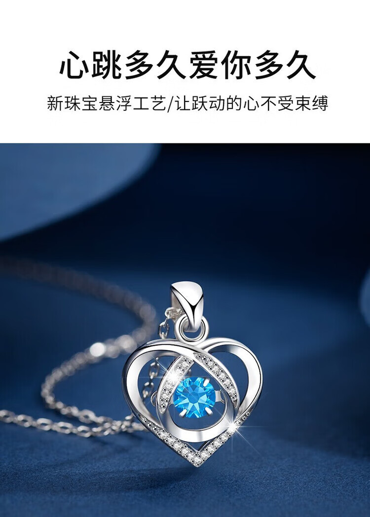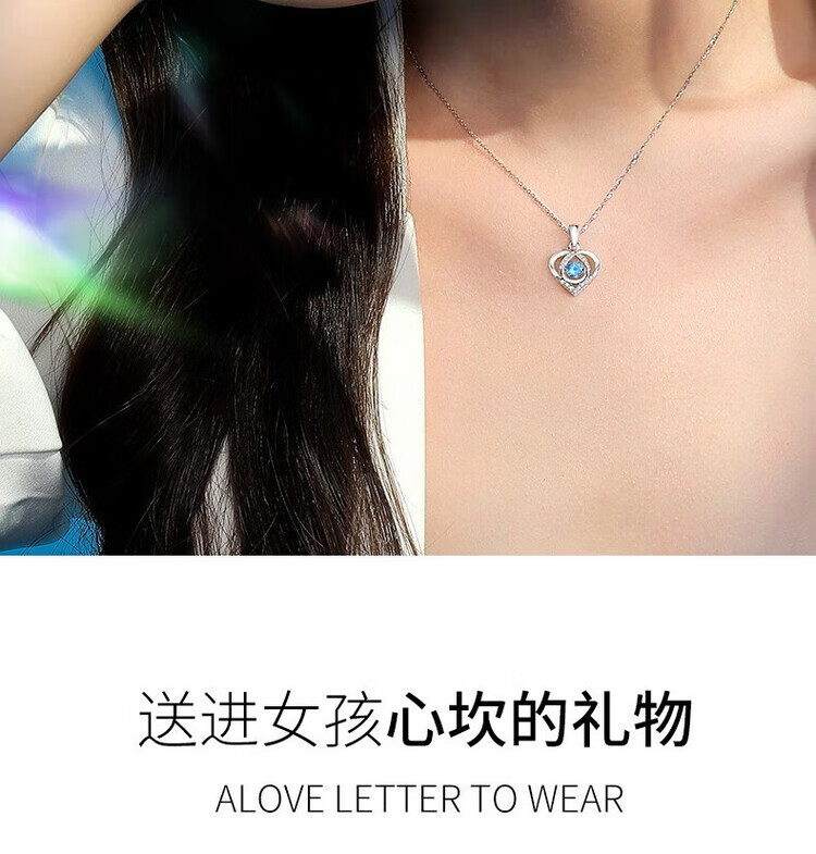 Beating Heart Platinum Necklace for Women PT950 Platinum with Moissanite Diamond 520 Valentine's Day Birthday Gift for Girlfriend Light Luxury Ocean Topaz
