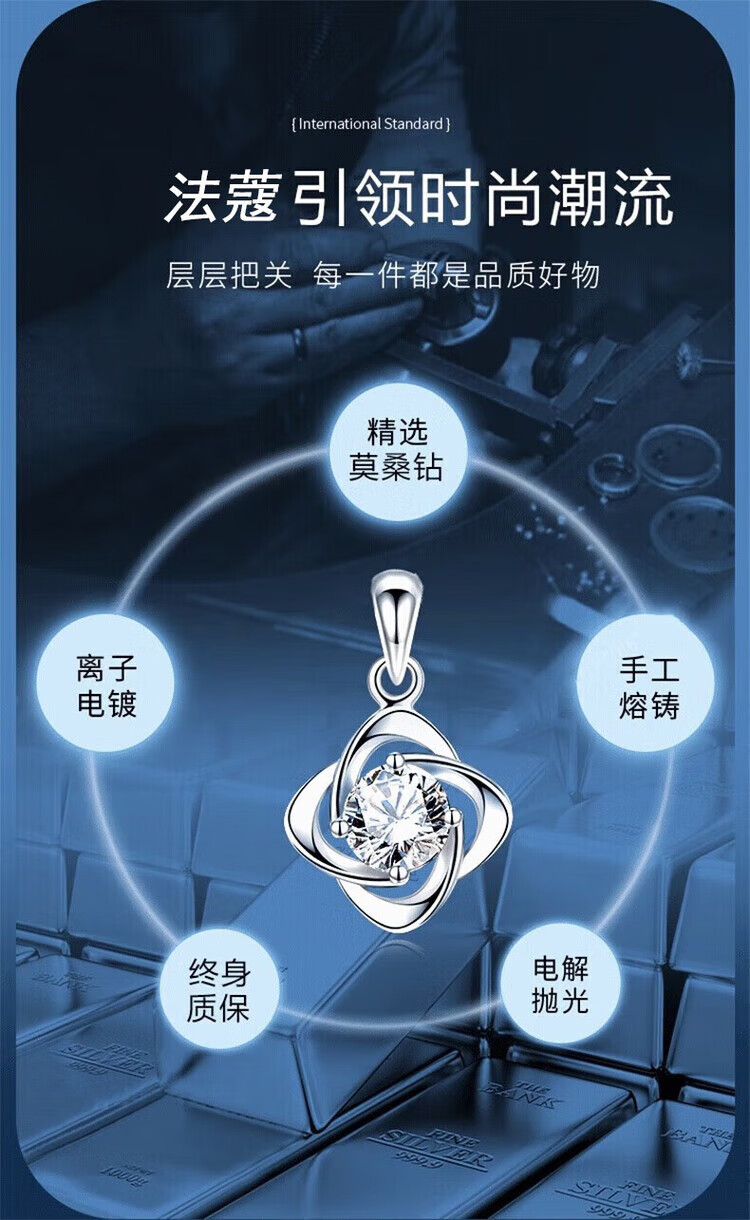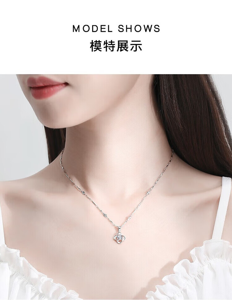 Platinum necklace, white gold four-leaf clover PT950 moissanite pendant, 520 Valentine's Day birthday gift for girlfriend and wife, light luxury model - set with D color flawless moissanite diamond