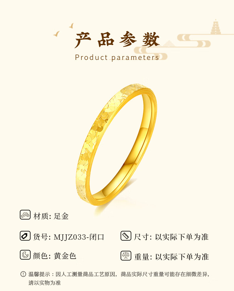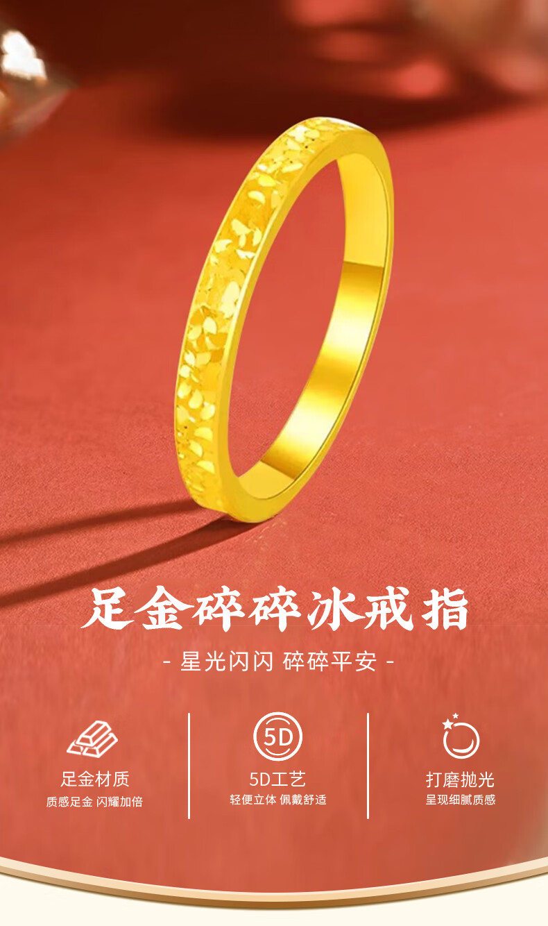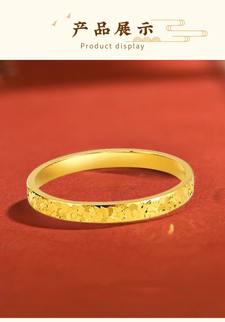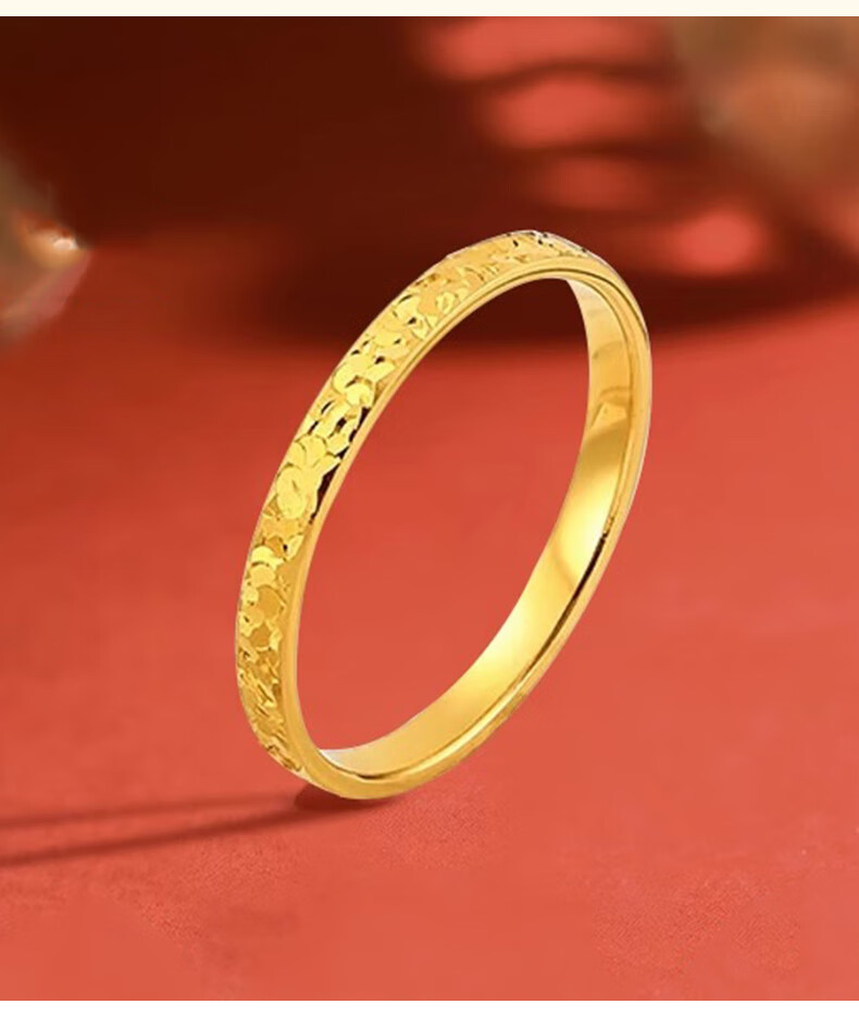CHINA GOLD Explosive Crushed Ice Gold Ring Women's Pure Gold Closed Ring Birthday Gift for Girlfriend and Wife Gold Weight About 0.7g Pure Gold Ring Ring 14#
