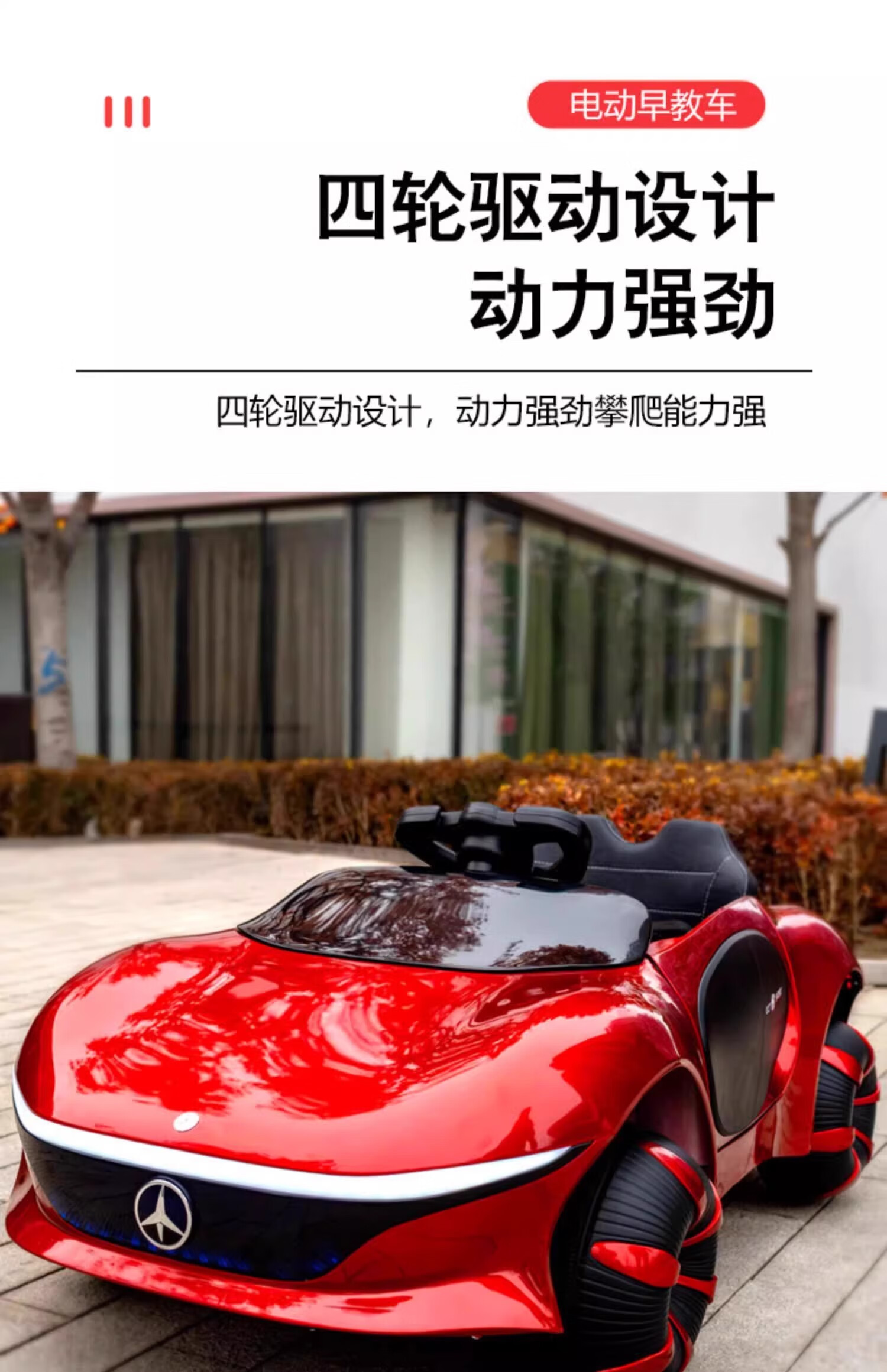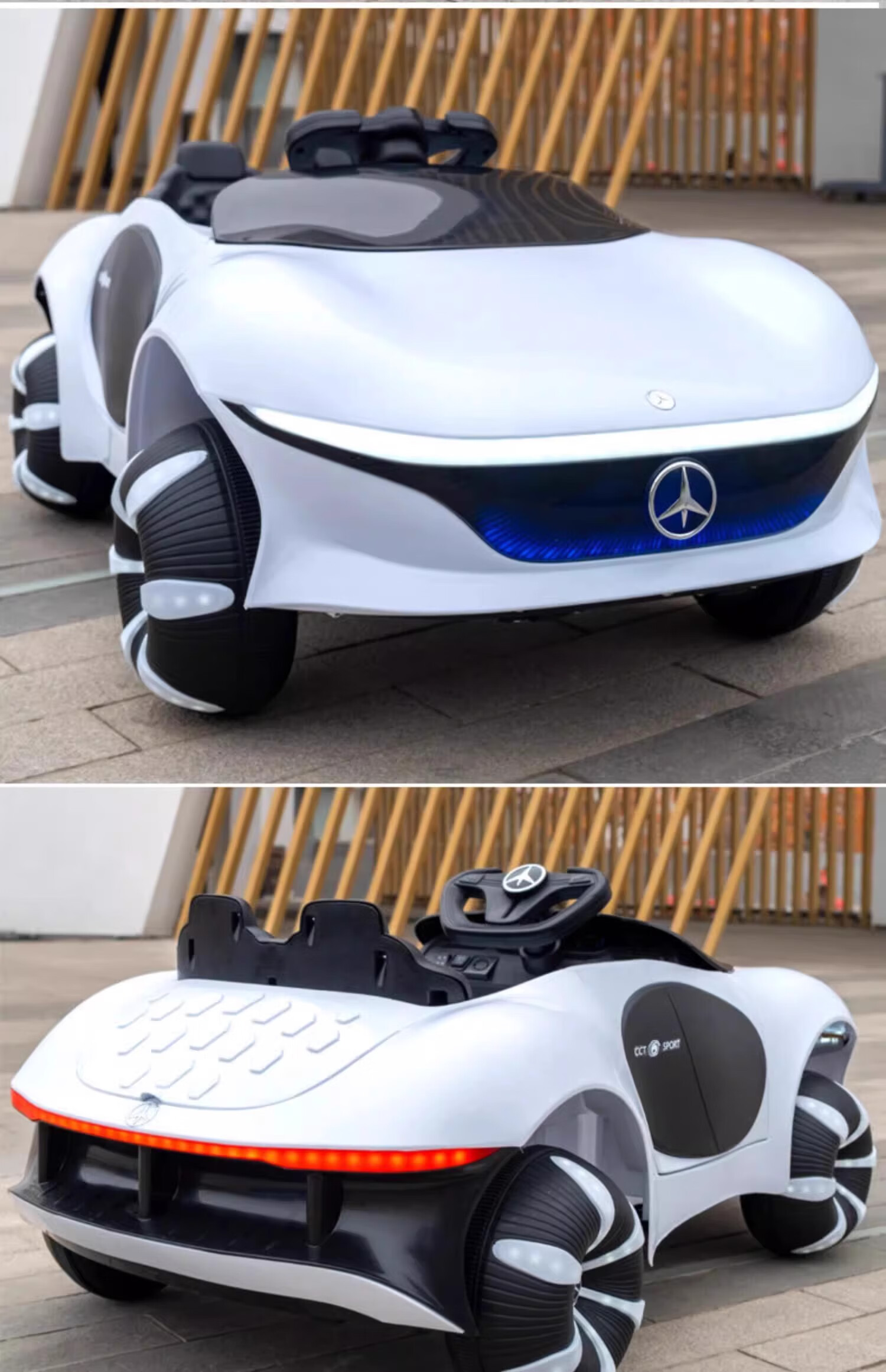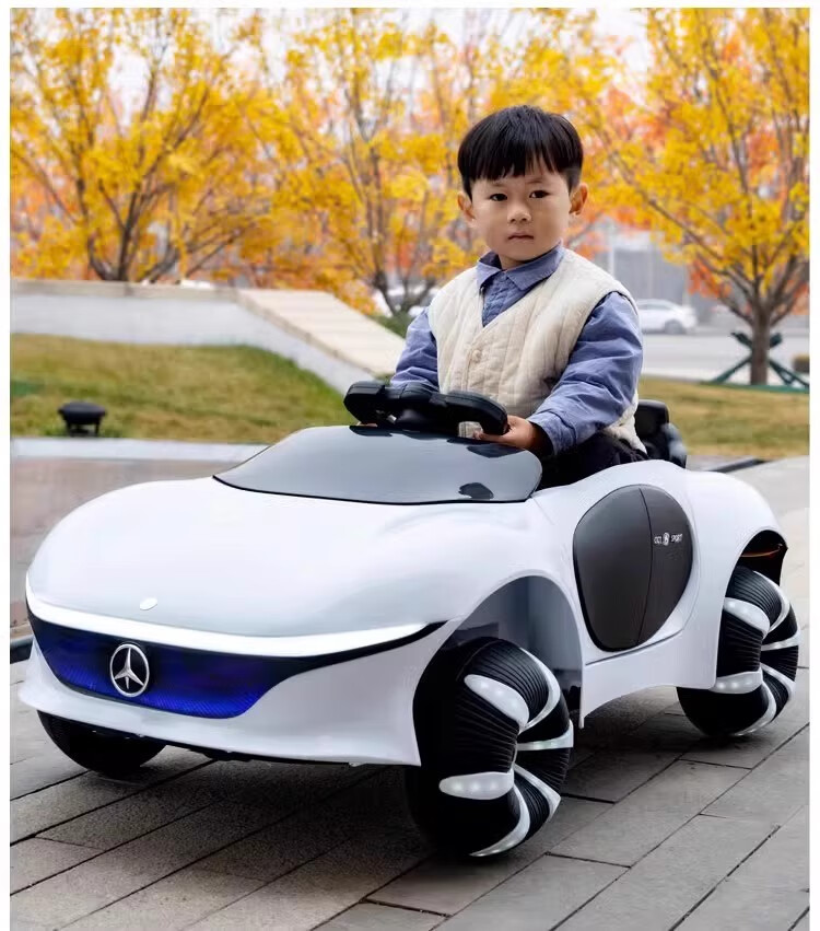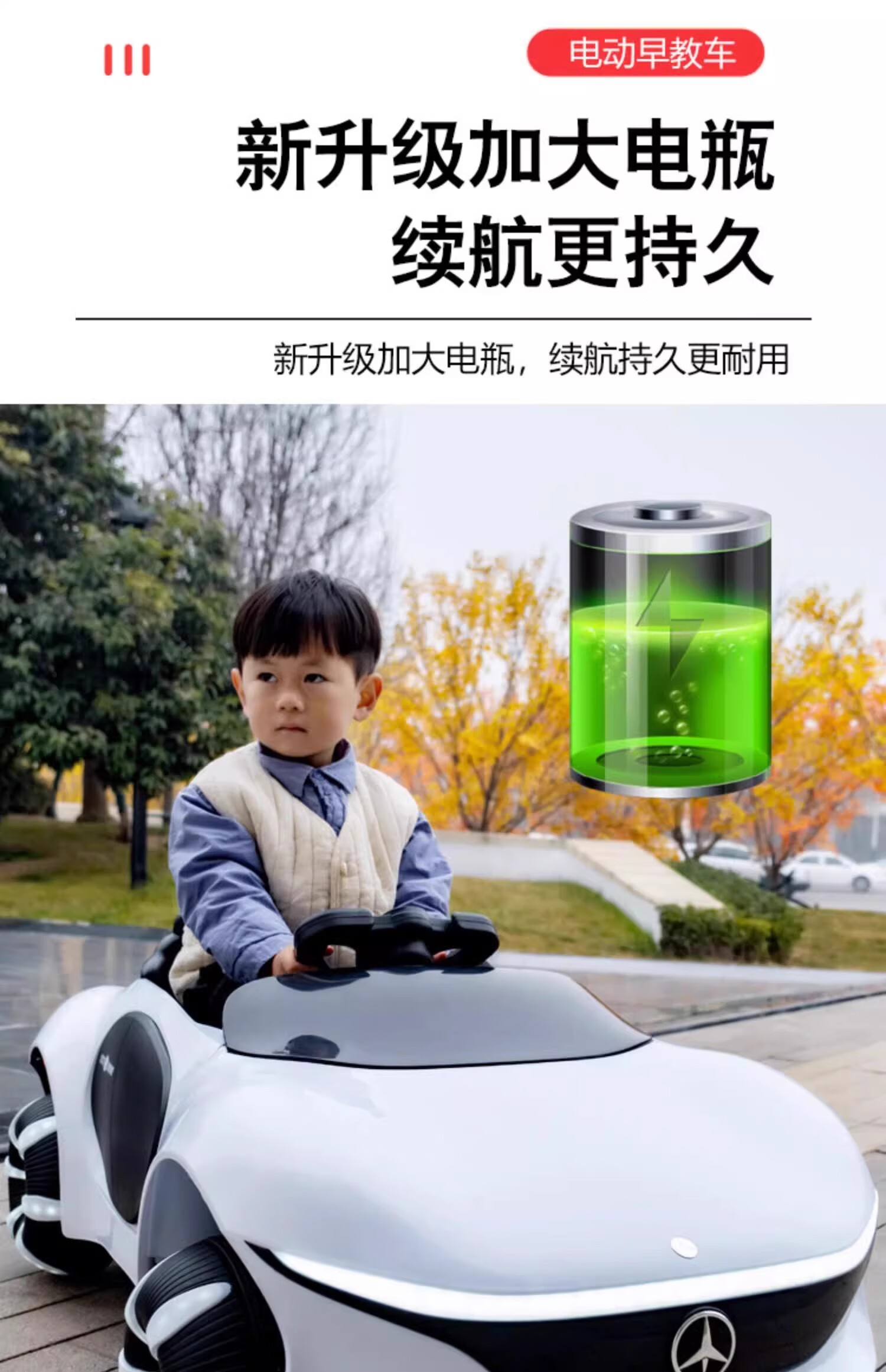 Chitongle German children's four-wheel electric car can sit in a child's toy car for 1 to 3-year-old babies remote control stroller, four-wheel drive white + leather seat