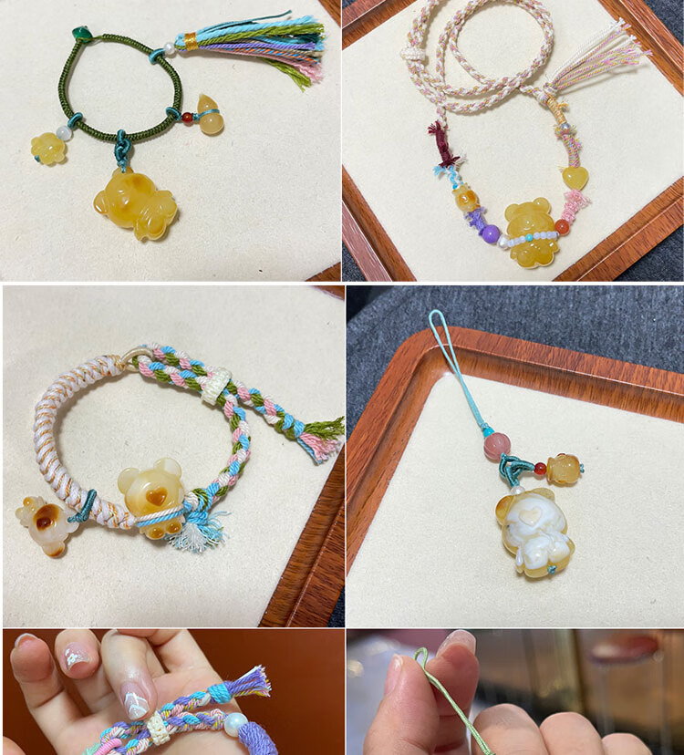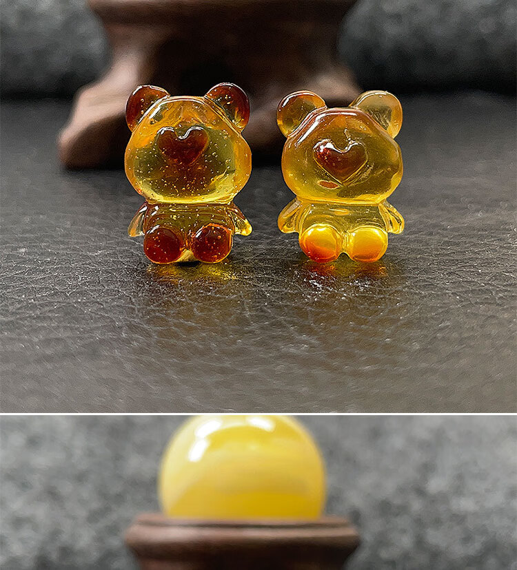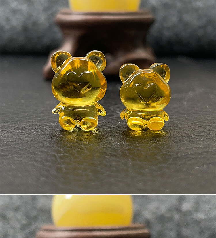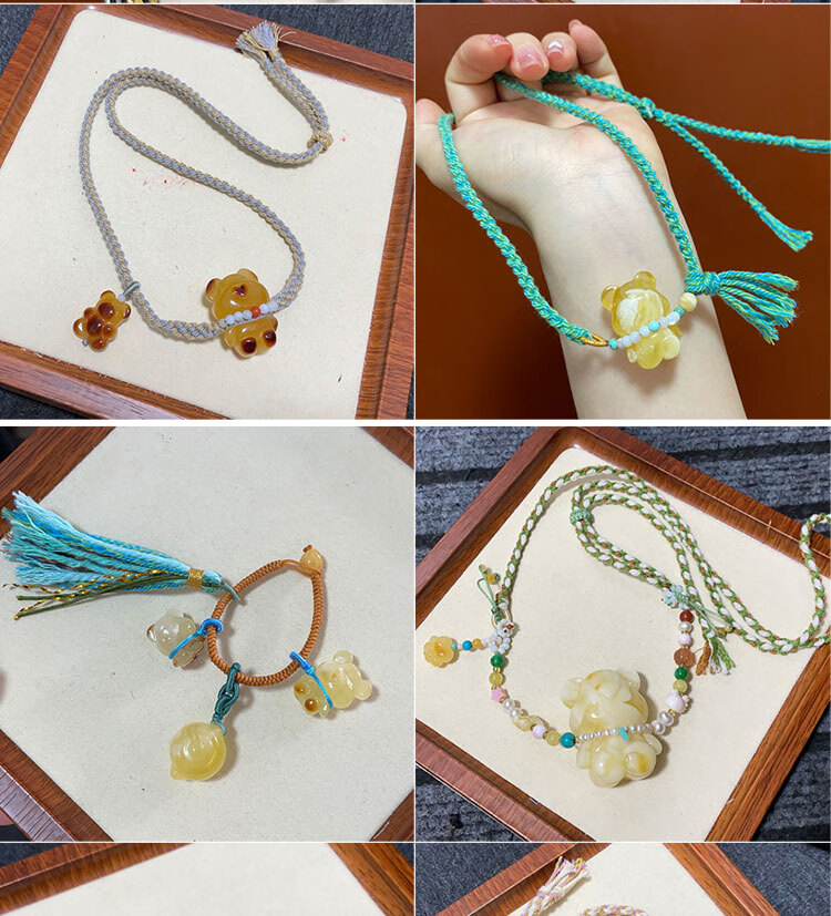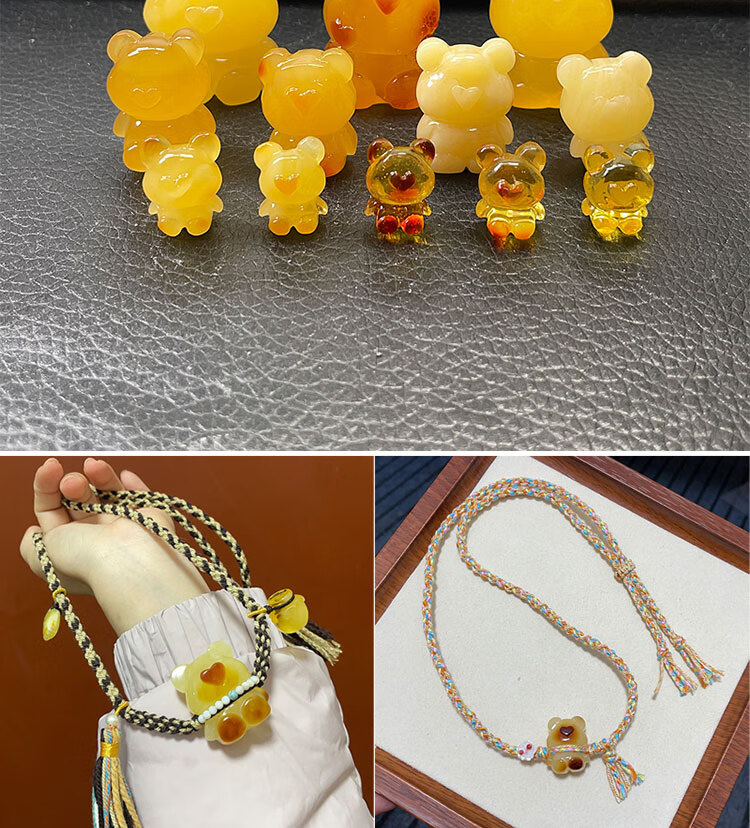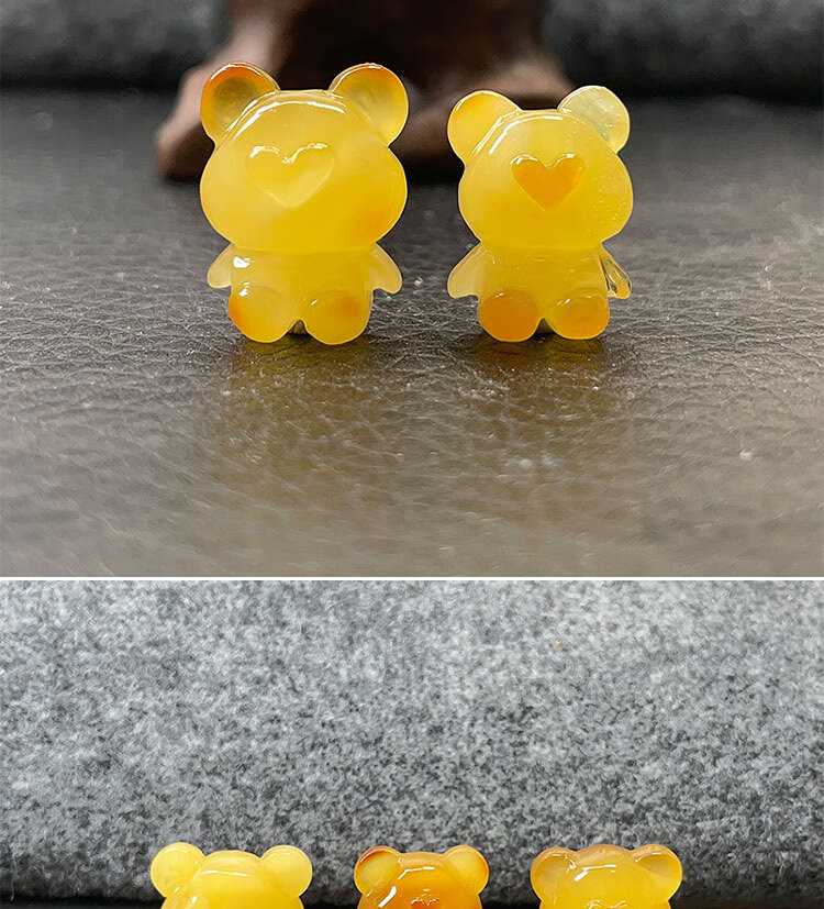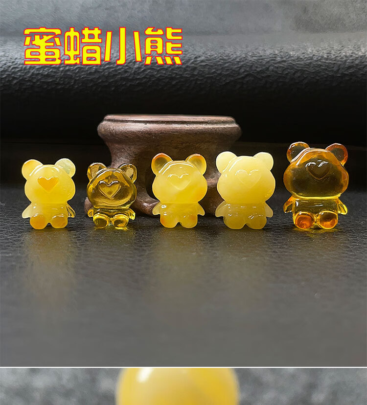 VZZS high-quality natural amber beeswax bear accessories braided rope pendant bracelet necklace pendant lift DIY squatting bear accessories beeswax bear (weighing less than 1.0g)