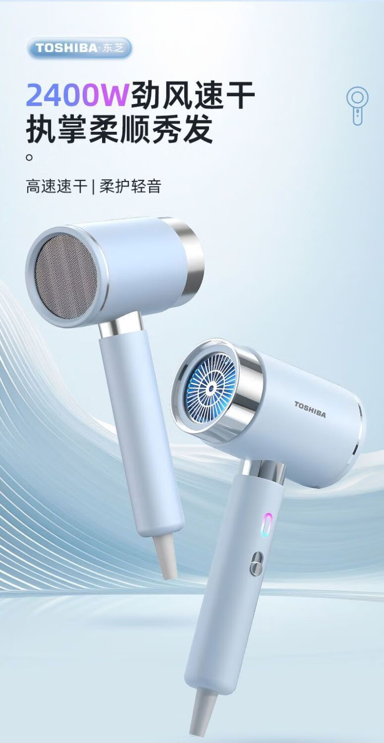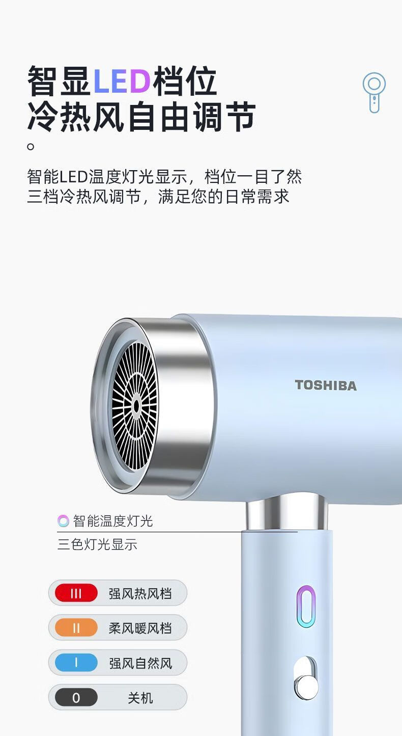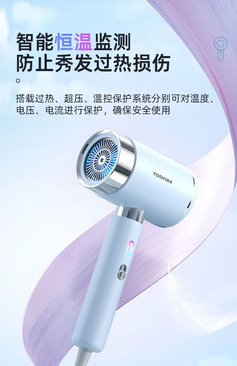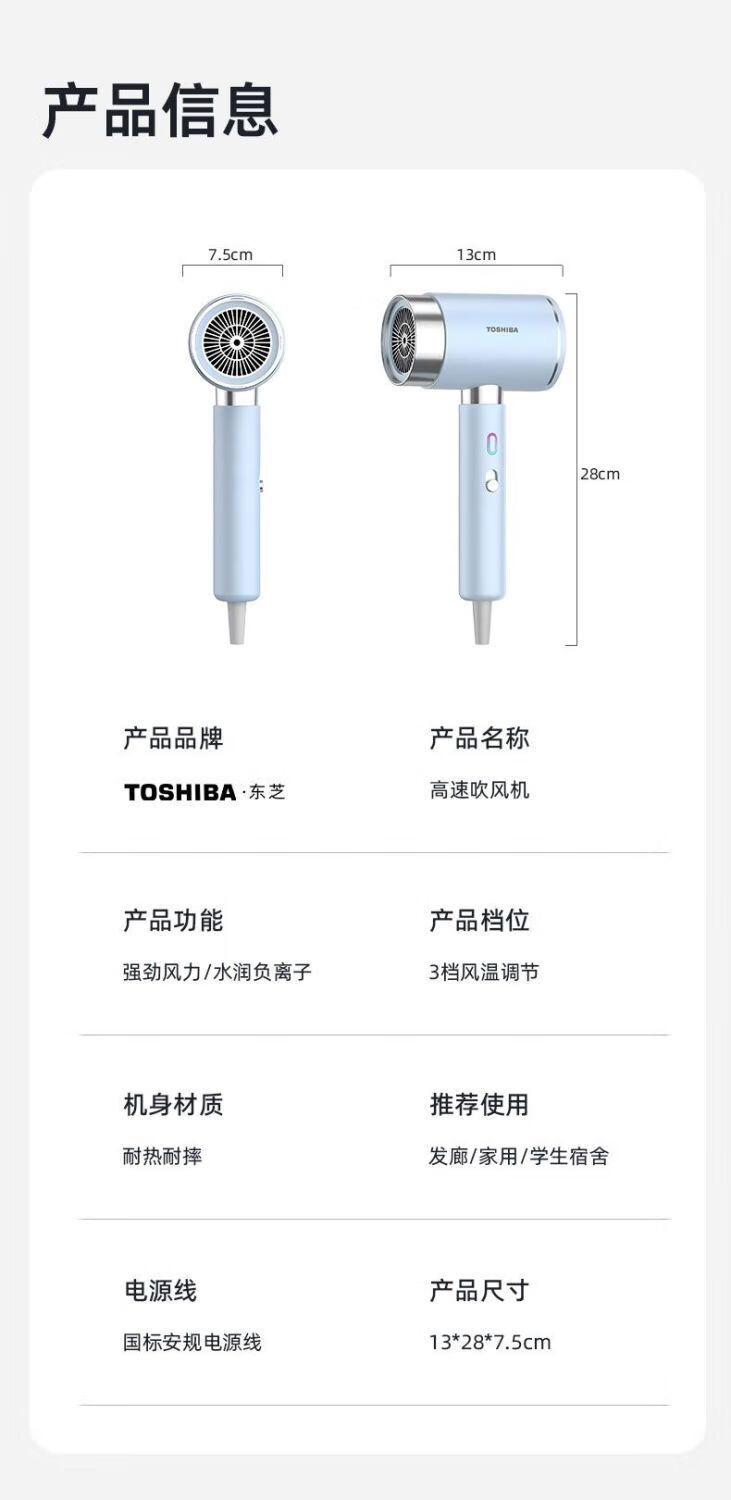 TOSHIBA Japanese high-speed hair dryer negative ion constant temperature silent quick-drying hair dryer dormitory household hair dryer sky blue magnetic suction hanger