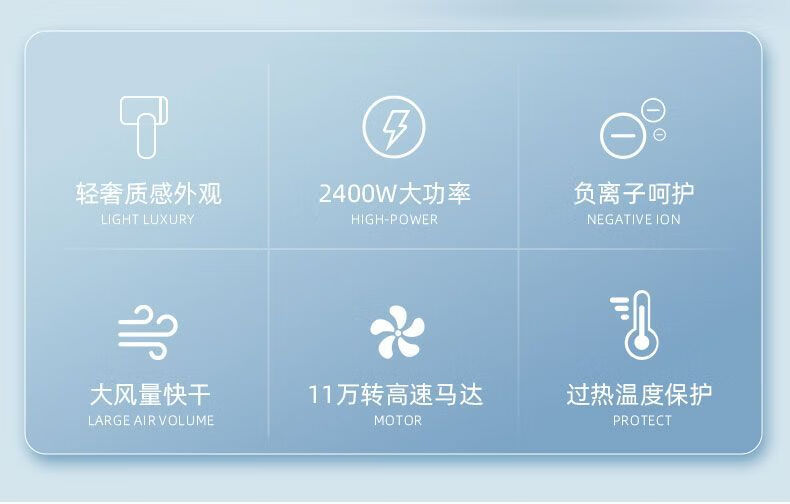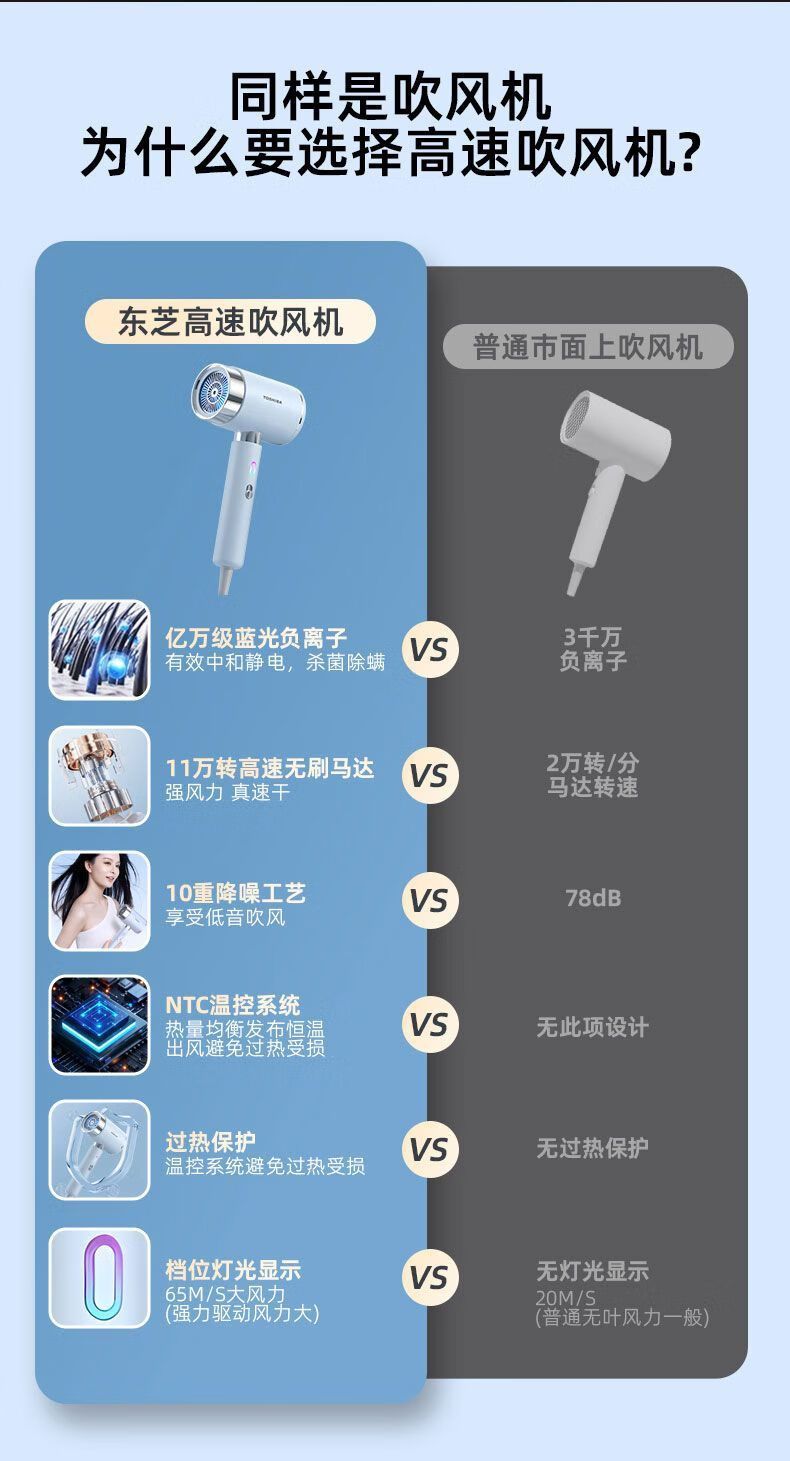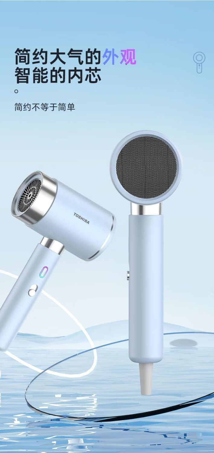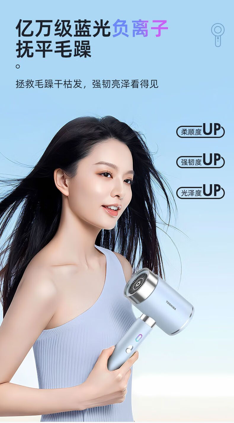 TOSHIBA Japanese high-speed hair dryer negative ion constant temperature silent quick-drying hair dryer dormitory household hair dryer sky blue magnetic suction hanger