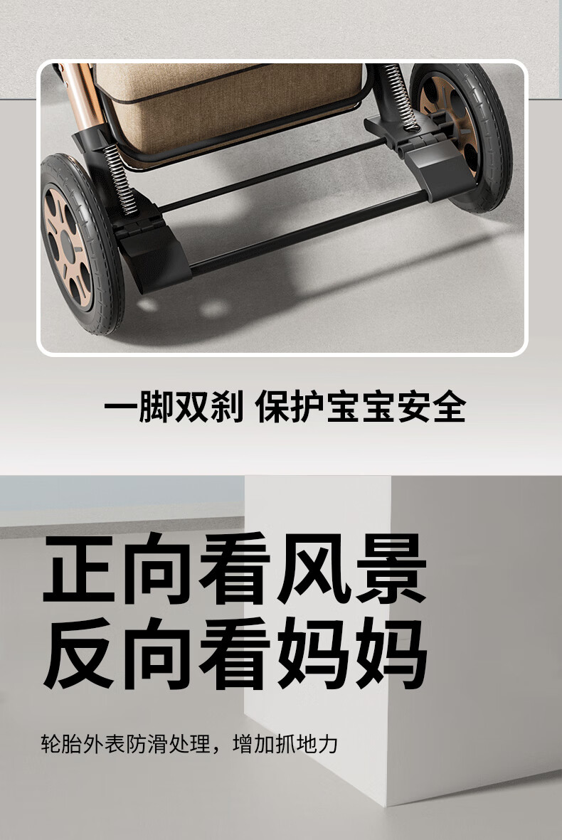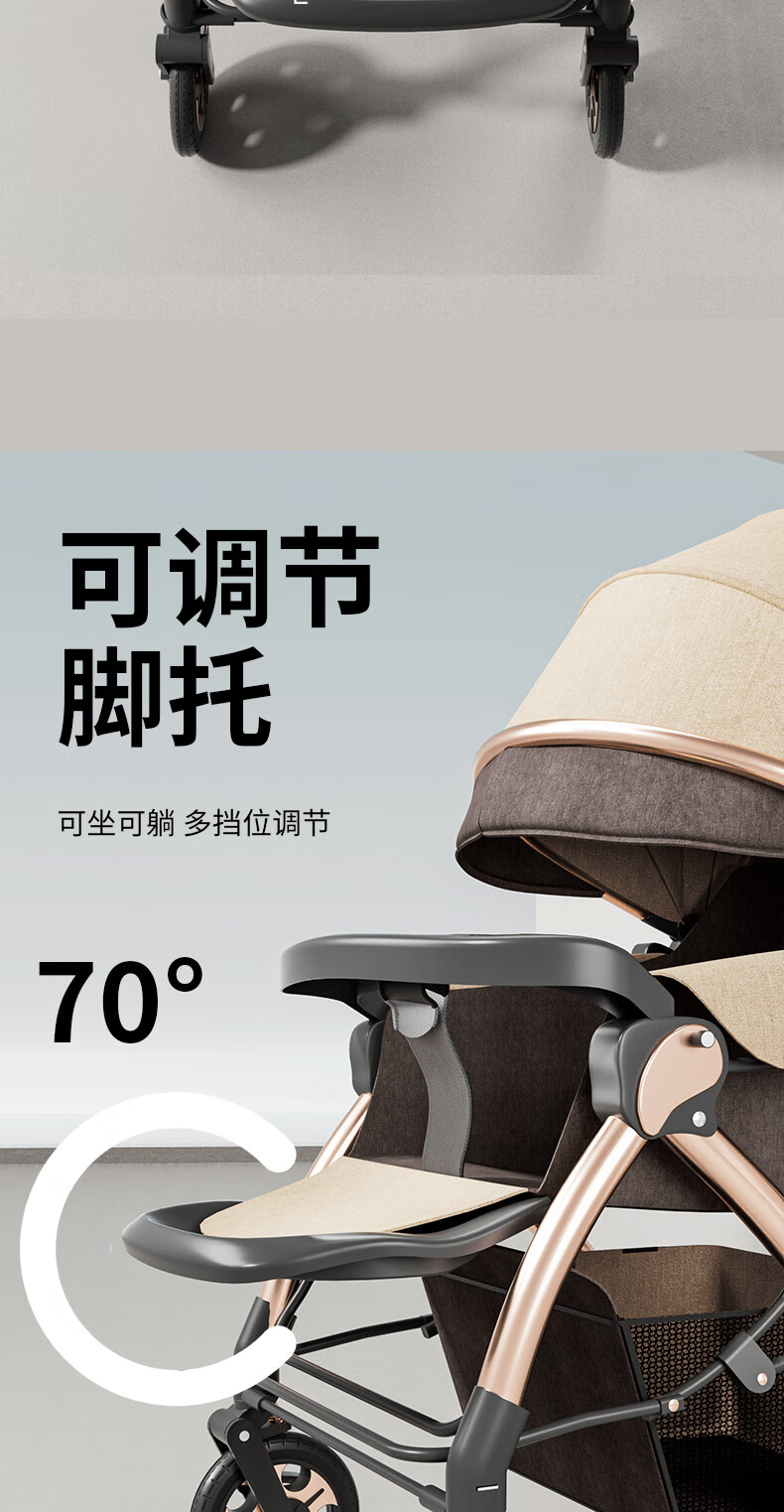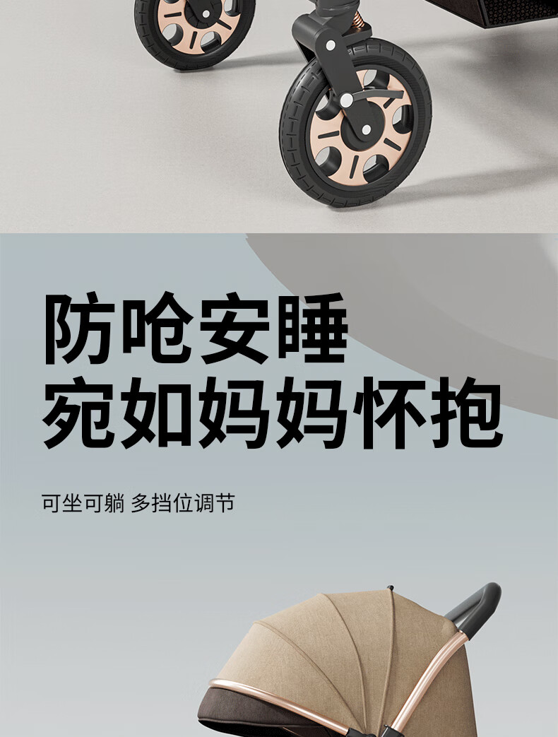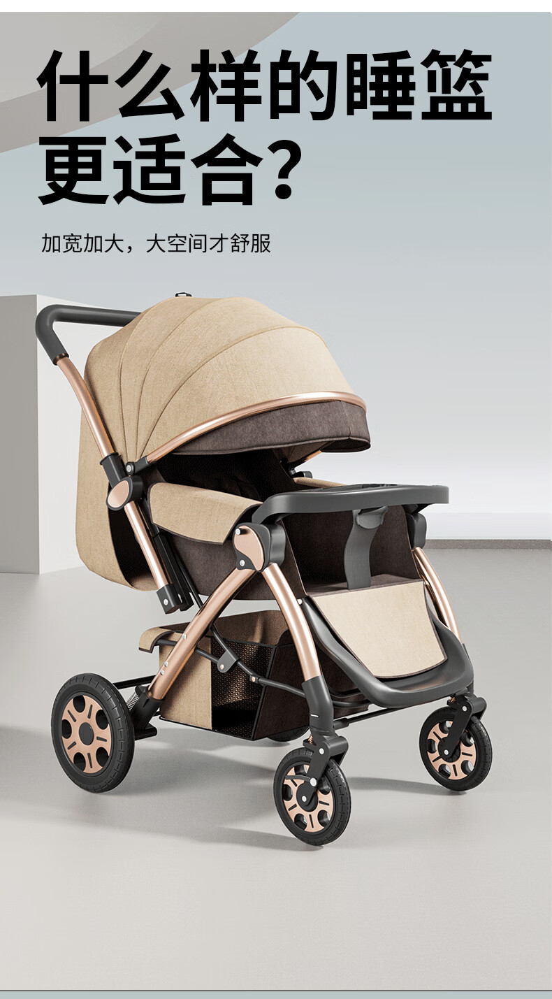 Jingyouyu German high-view two-way baby stroller bed dual-purpose multi-functional sit-down foldable baby stroller four-wheel version new khaki four-wheel rubber