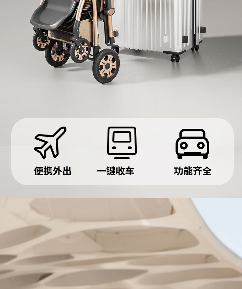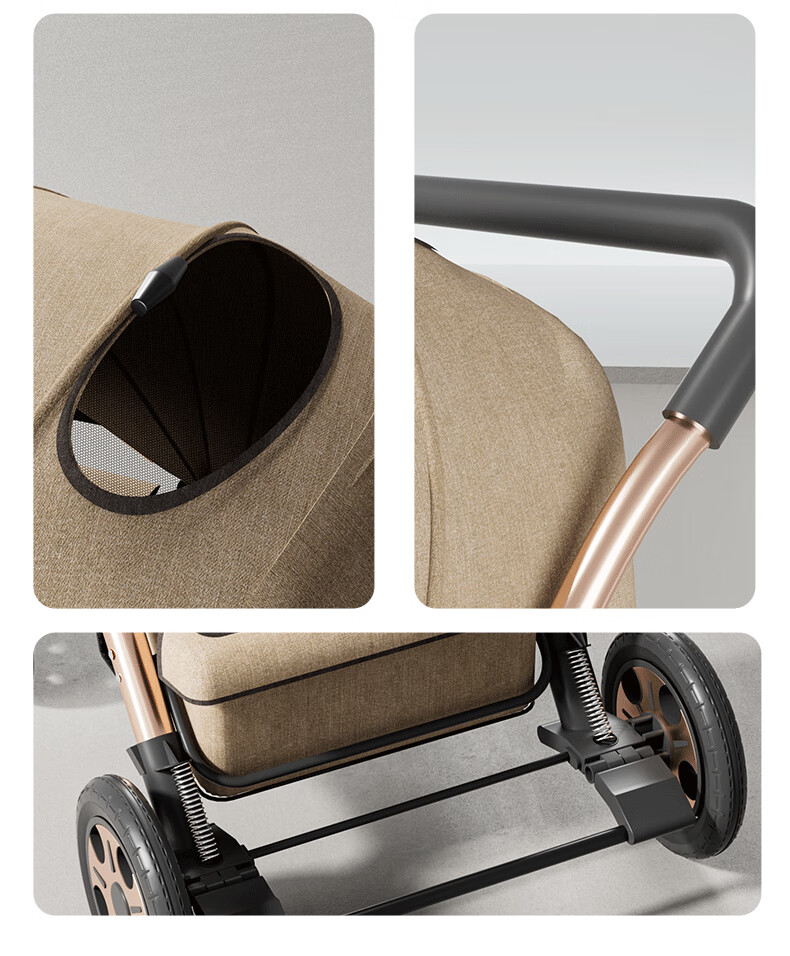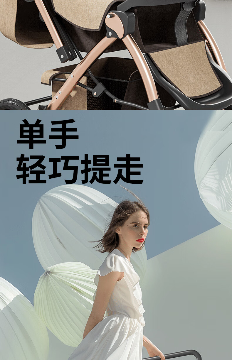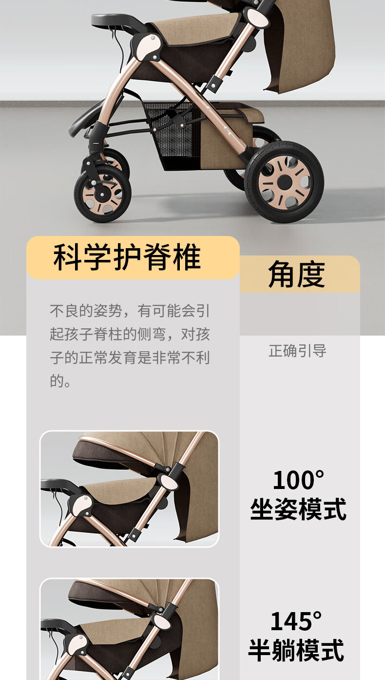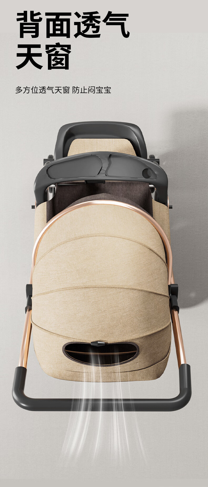 Jingyouyu German high-view two-way baby stroller bed dual-purpose multi-functional sit-down foldable baby stroller four-wheel version new khaki four-wheel rubber