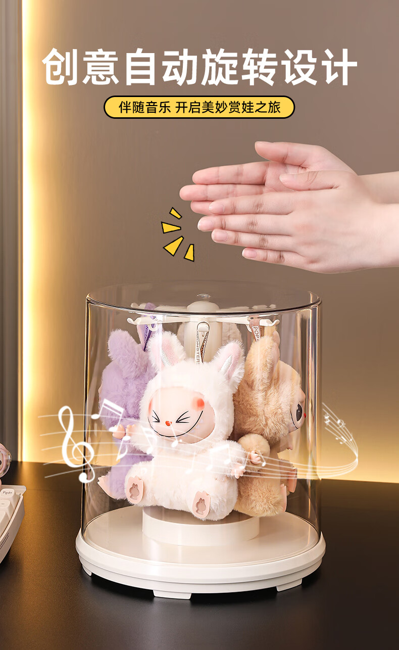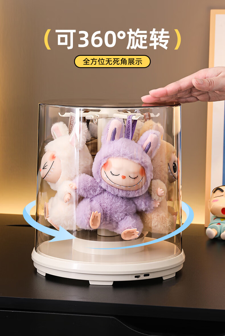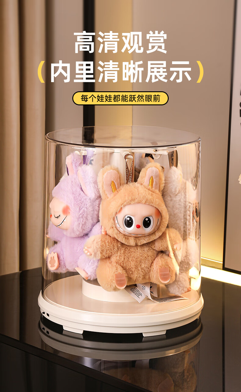 KAMAN labubu display box labubu storage box rotating dust cover vinyl doll plush doll figure display stand electric model rotating display box 1 piece