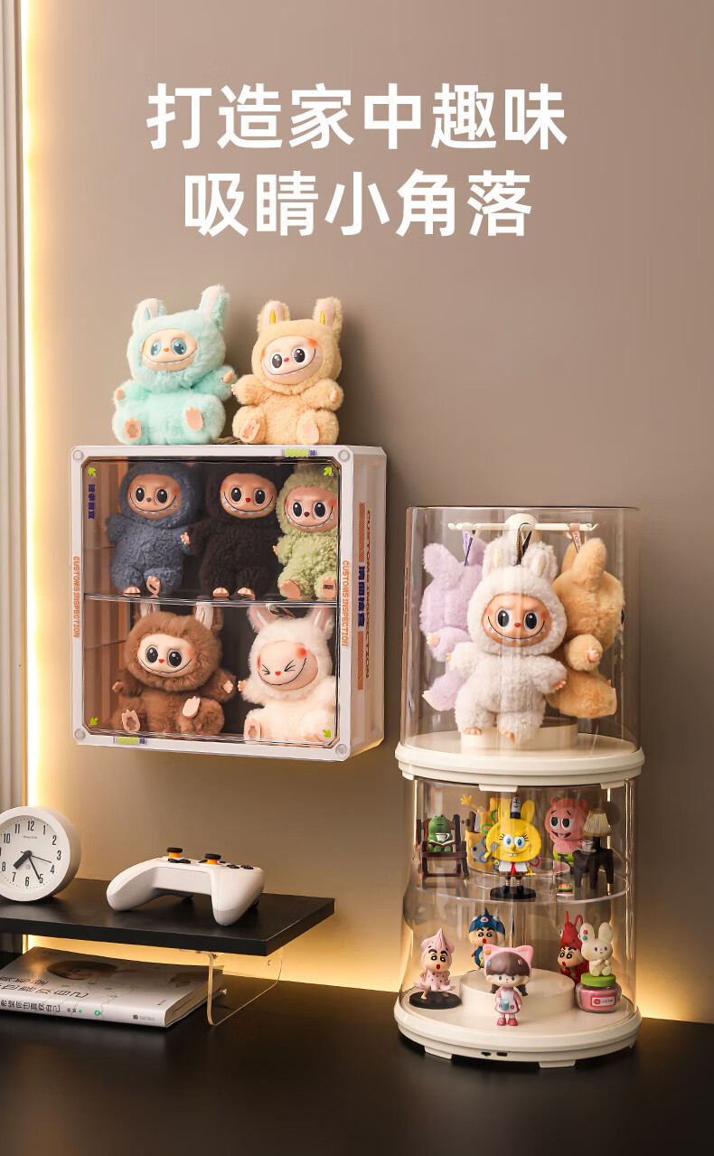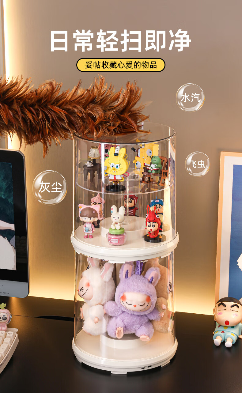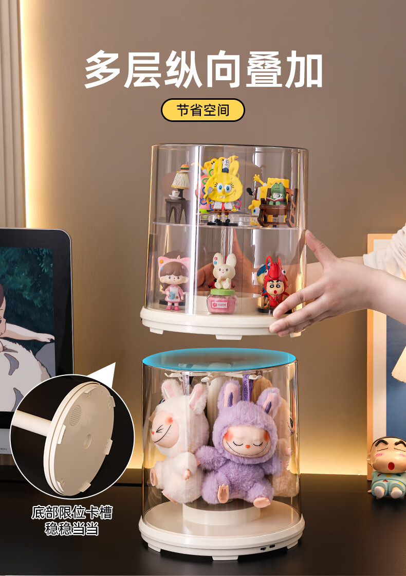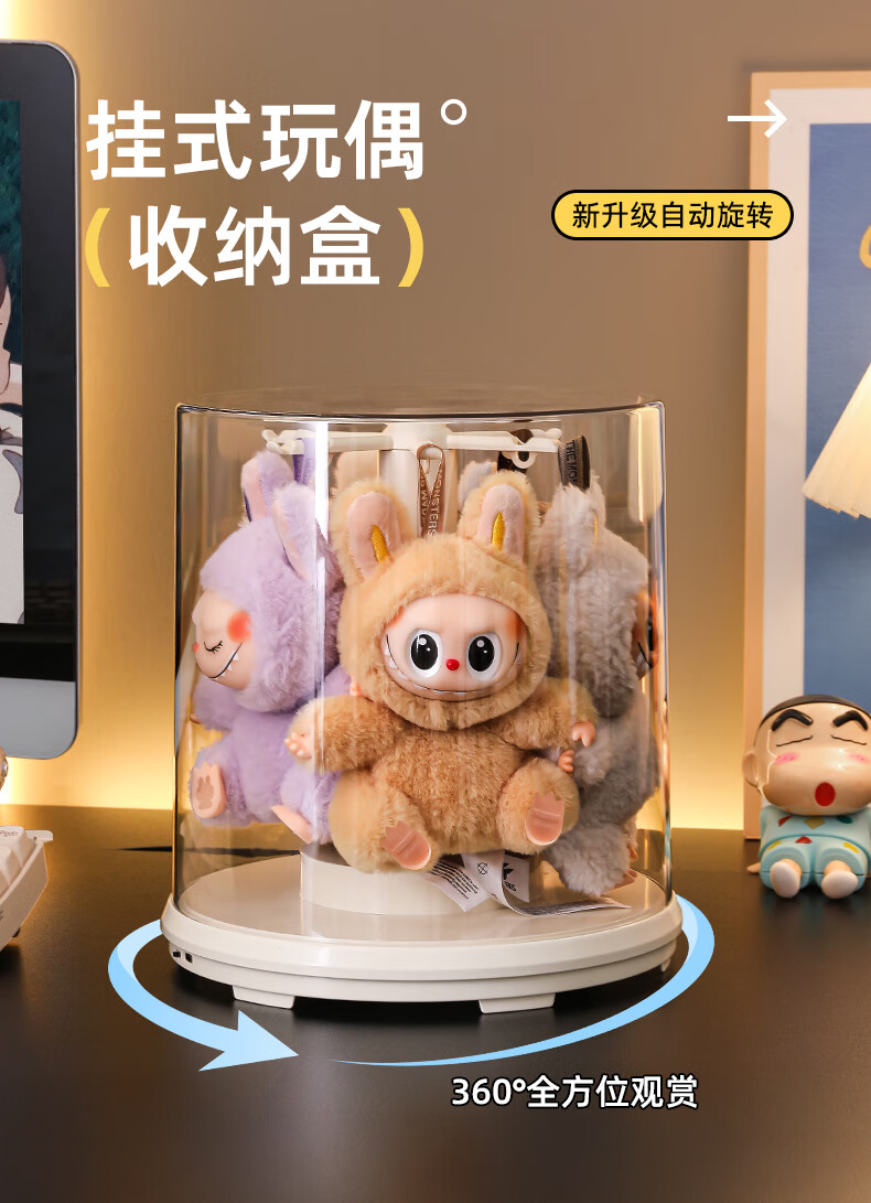 KAMAN labubu display box labubu storage box rotating dust cover vinyl doll plush doll figure display stand electric model rotating display box 1 piece
