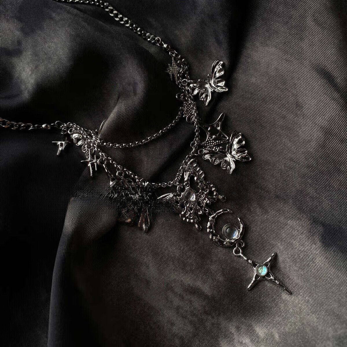 VZZS Chaifu Studio/niche sweet cool ins tassel star butterfly moonstone design necklace B style