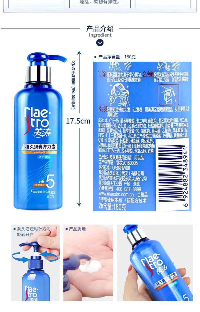 Maestro Maestro long-lasting curling elastin 180g women's curly hair perm conditioner moisturizing, styling, elastic, fluffy and anti-frizz 1 bottle of Maestro fluffy airy glossy elastin 180