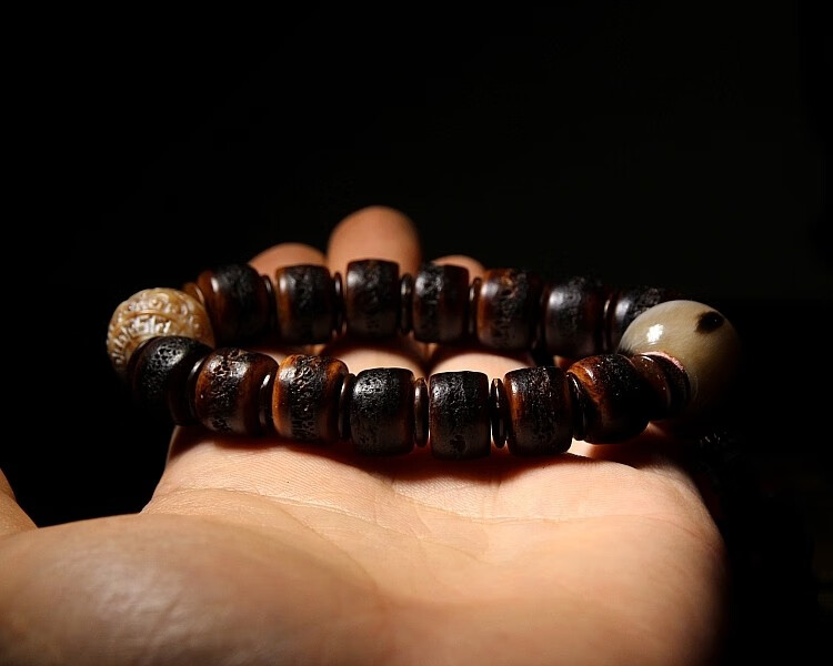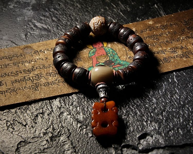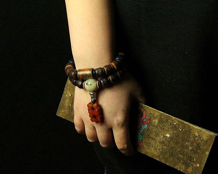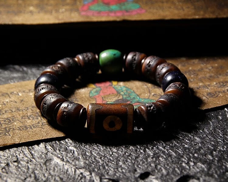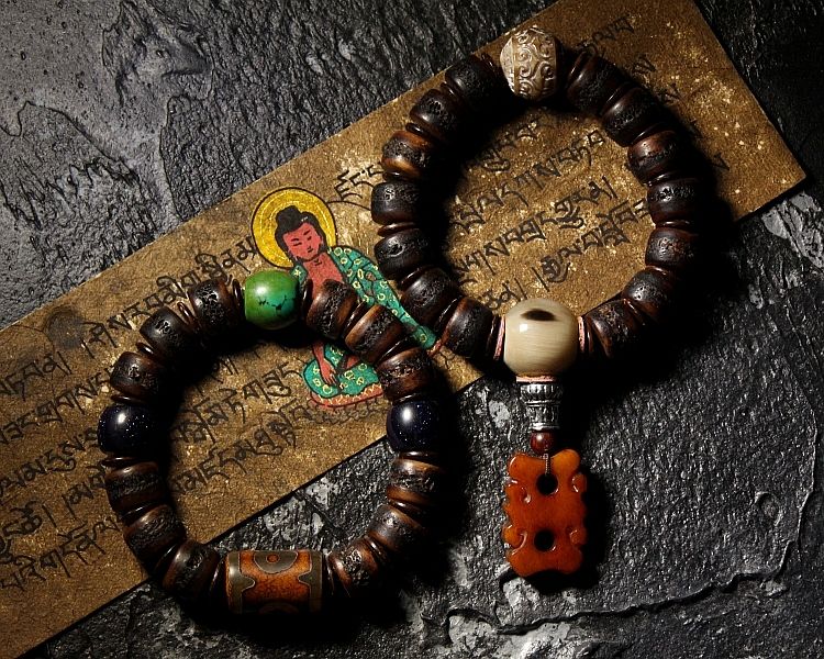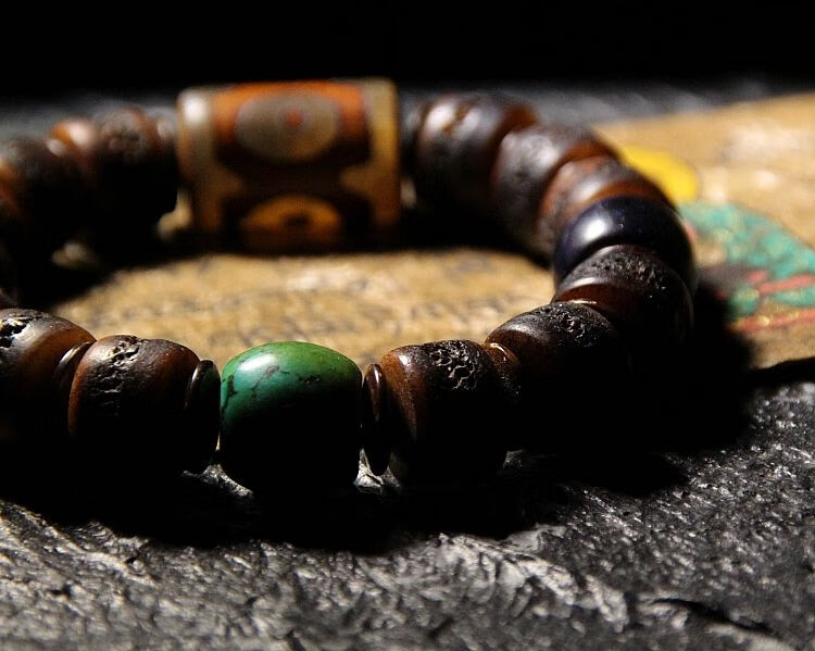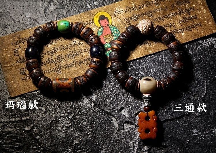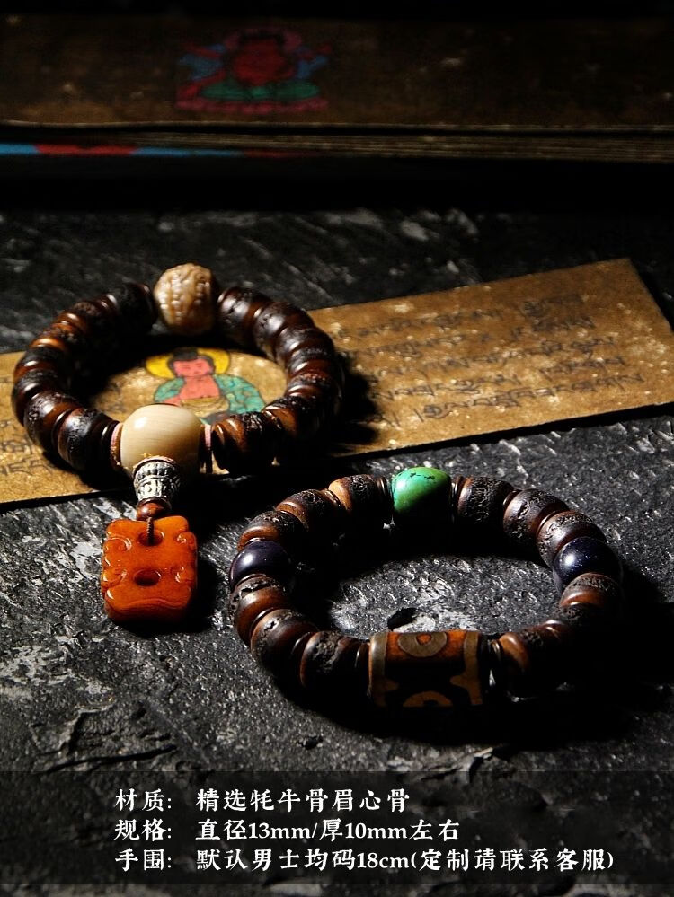 VZZS Tibetan Buddha beads bracelet for men old material yak bone agate horn turquoise spiritual bone inscription men's bracelet agate style 12mm