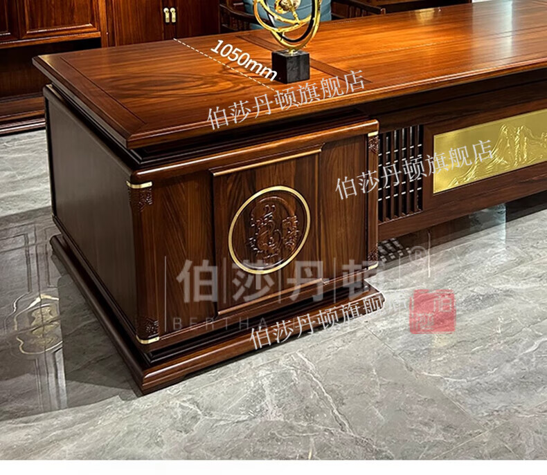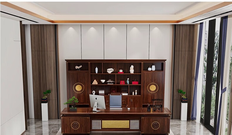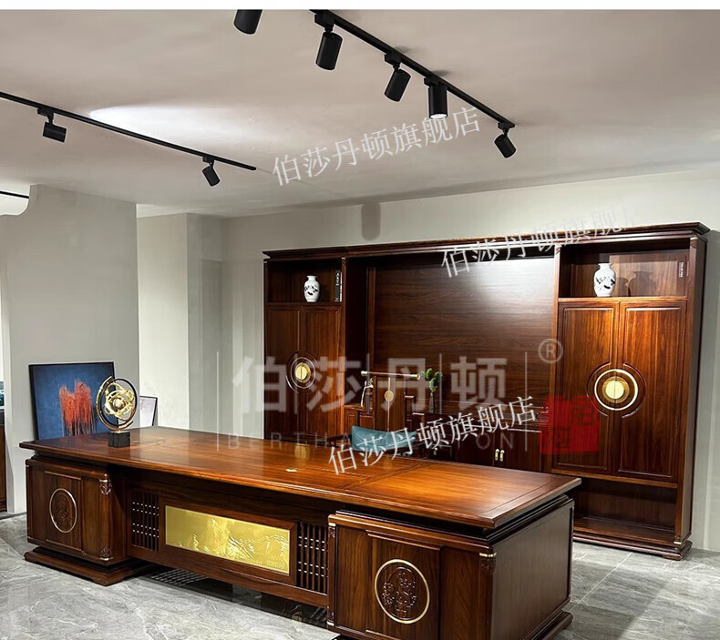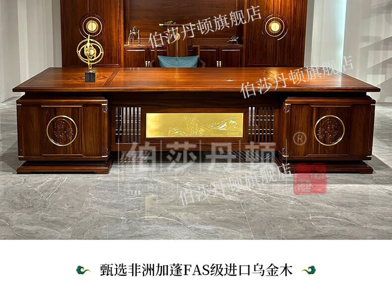 Bertha Denton solid wood boss desk general manager desk chairman room ebony wood executive desk new Chinese style desk 2.4 meters boss desk