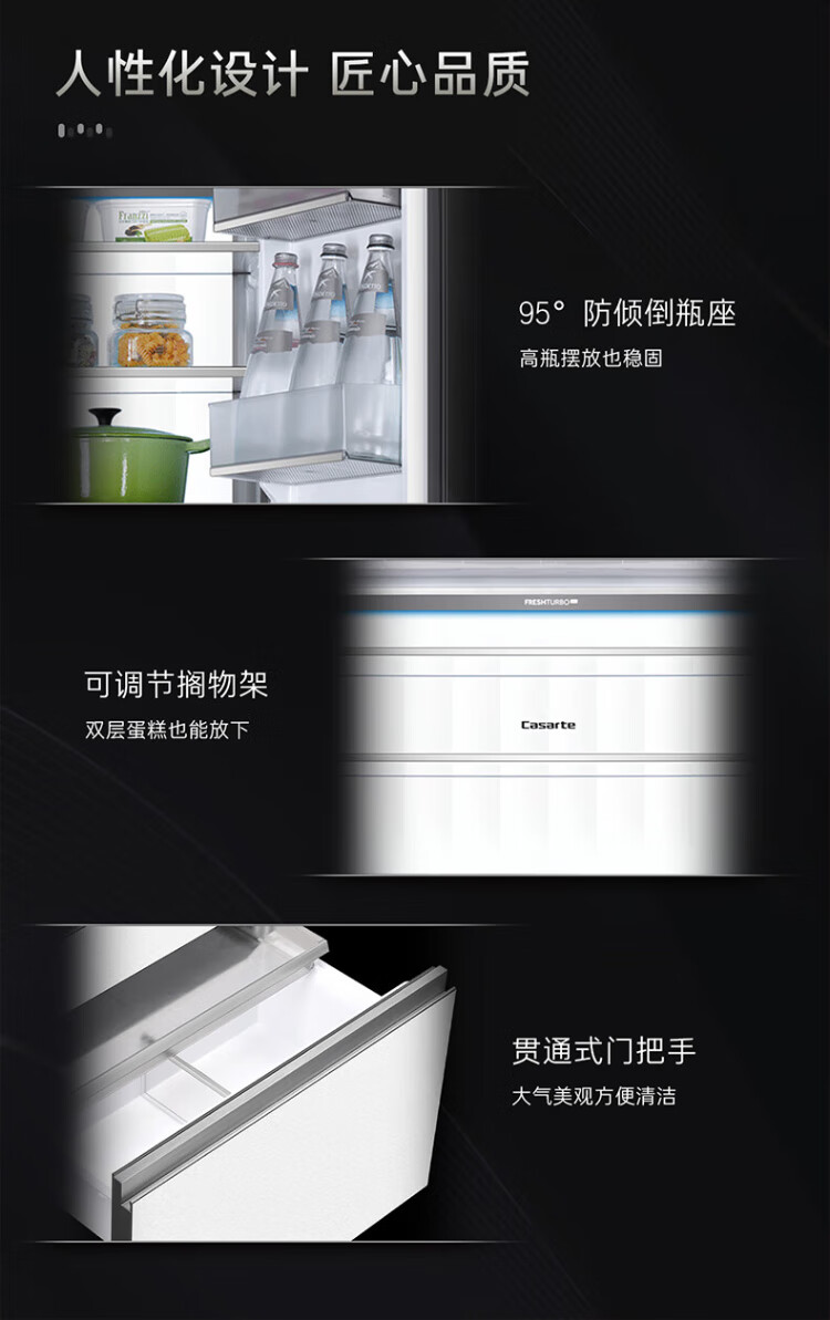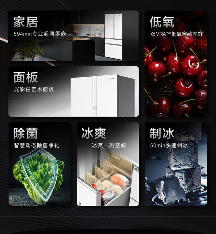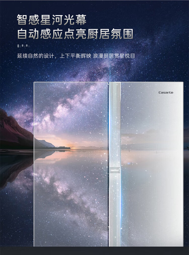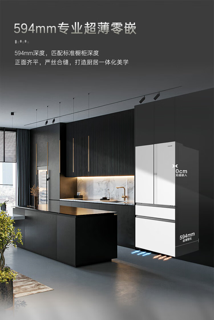 Casarte Languang Refrigerator 570 liters large capacity 594mm automatic ice making ultra-thin zero-embedded dual system French multi-door first-class energy-efficiency white refrigerator 570