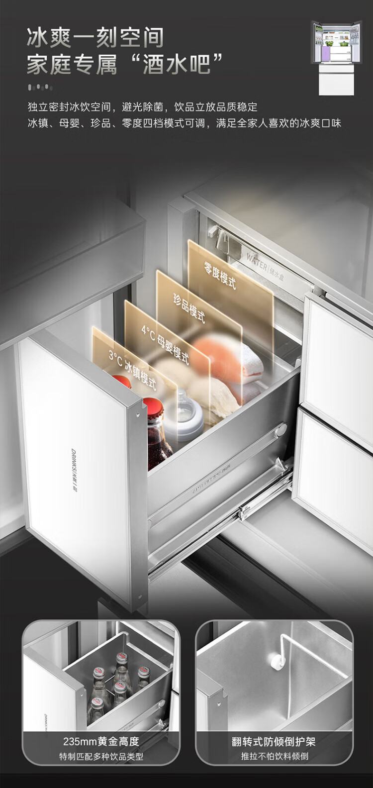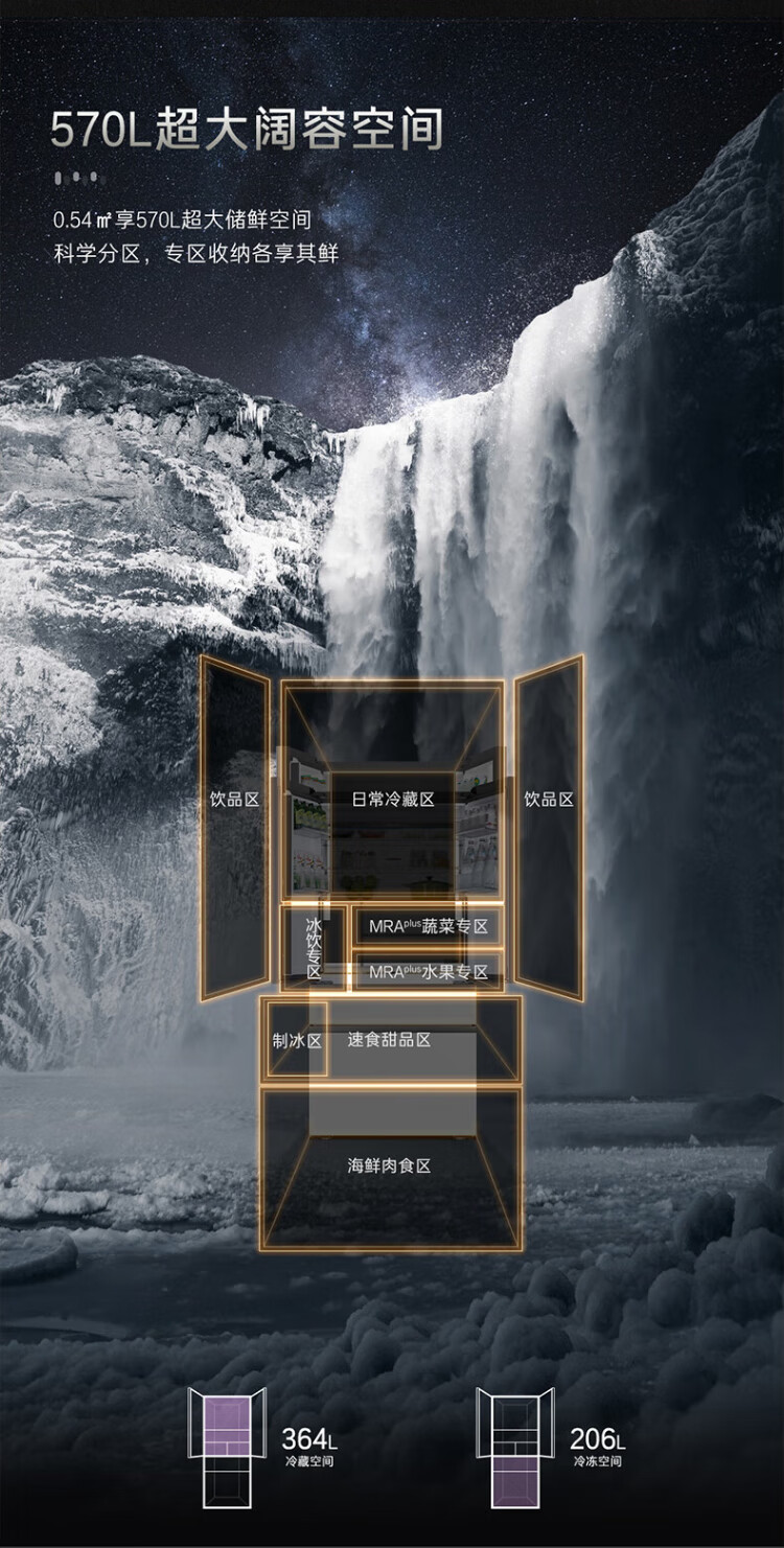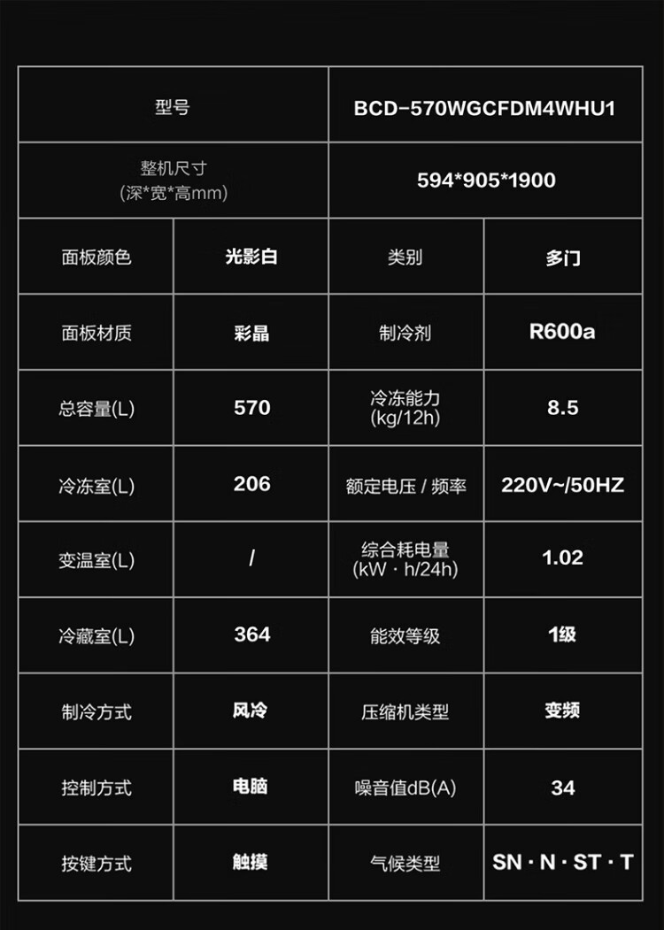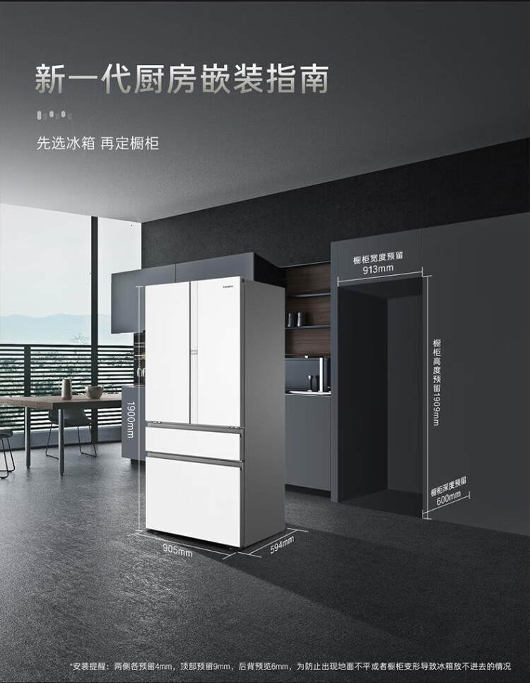 Casarte Languang Refrigerator 570 liters large capacity 594mm automatic ice making ultra-thin zero-embedded dual system French multi-door first-class energy-efficiency white refrigerator 570