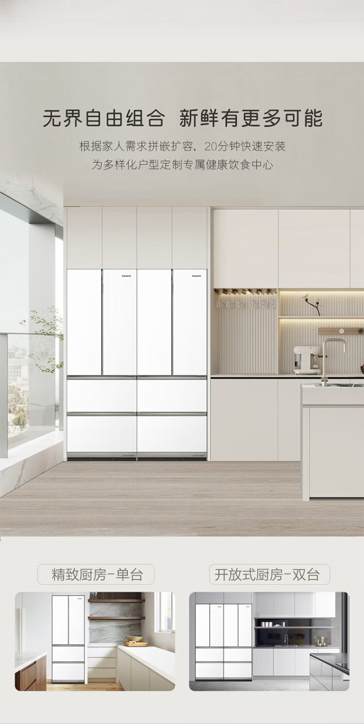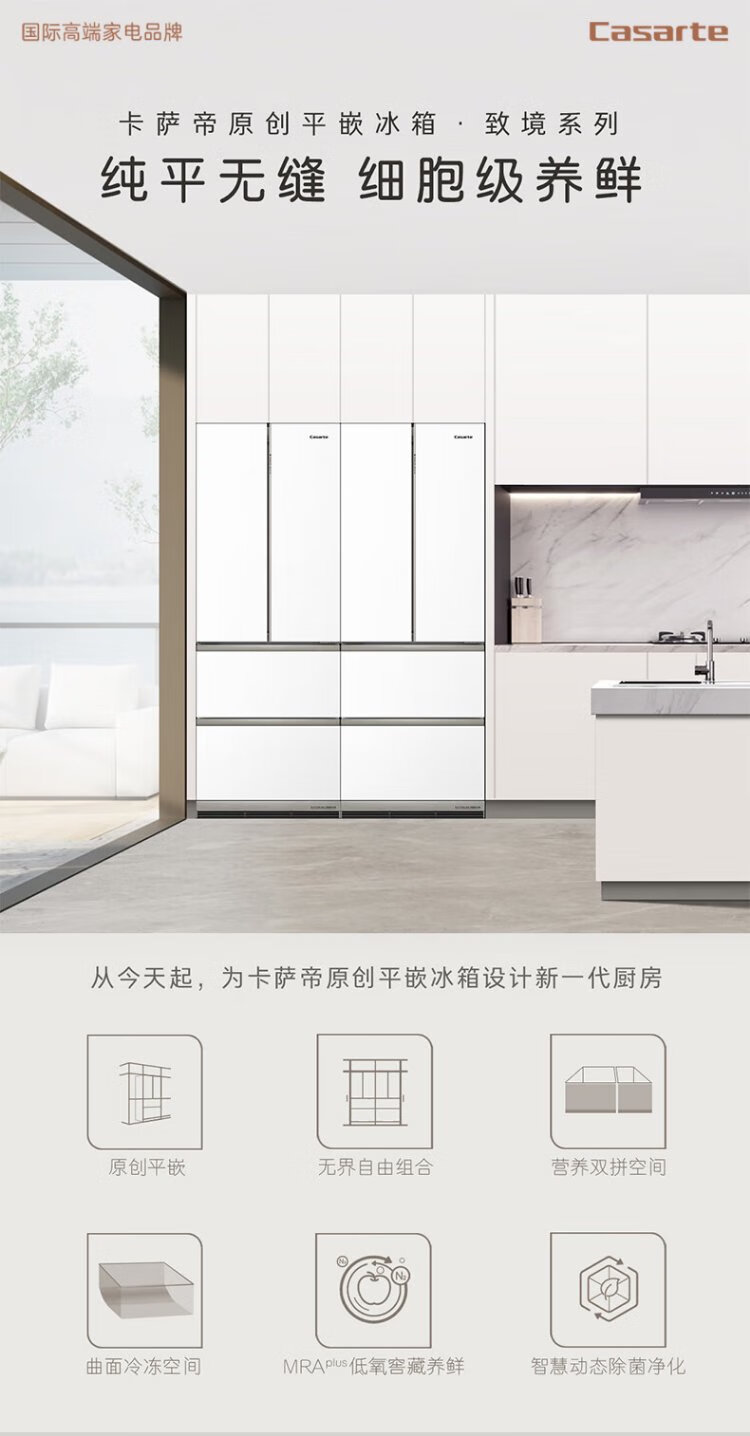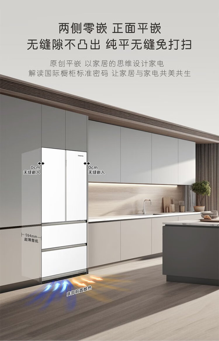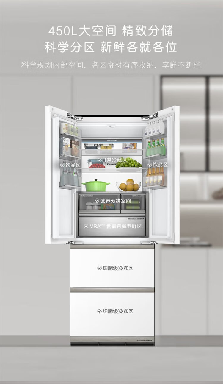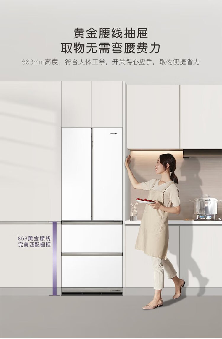 Casarte refrigerator 450 liters 594mm ultra-thin zero-embedded dual system French multi-door first-class energy-efficiency white refrigerator 450 white