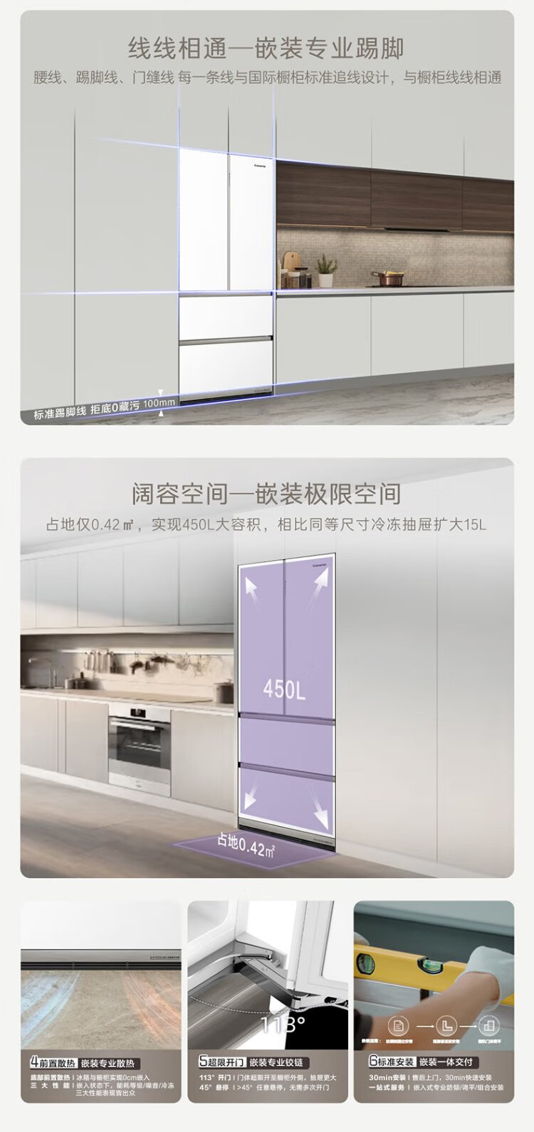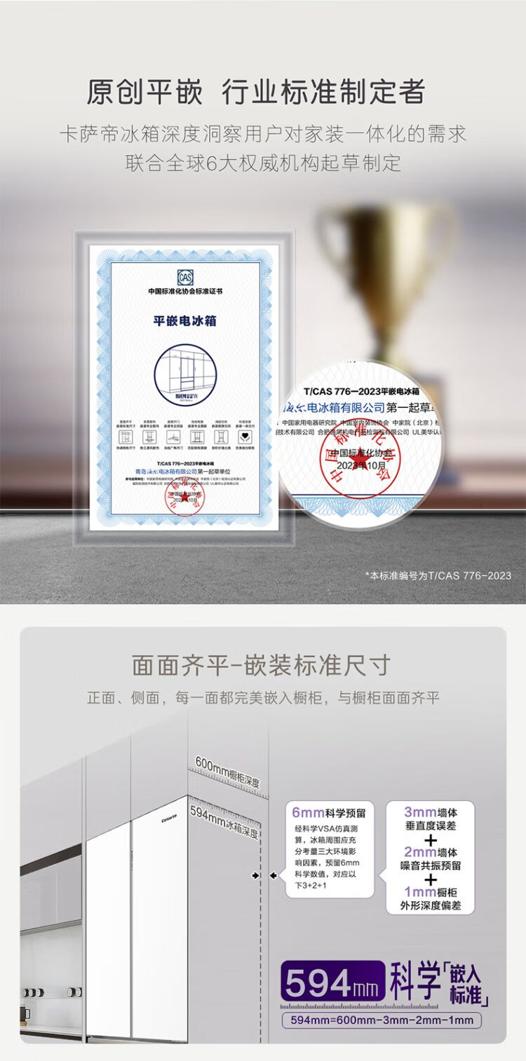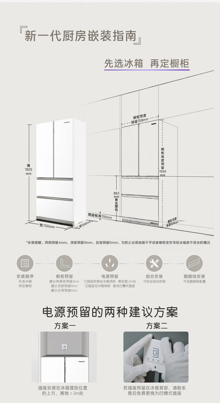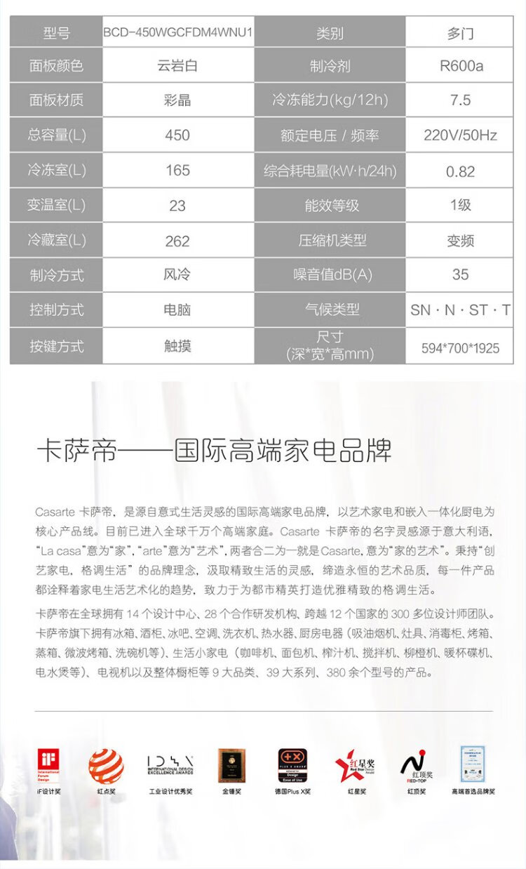 Casarte refrigerator 450 liters 594mm ultra-thin zero-embedded dual system French multi-door first-class energy-efficiency white refrigerator 450 white
