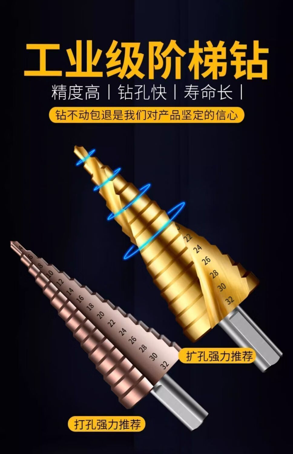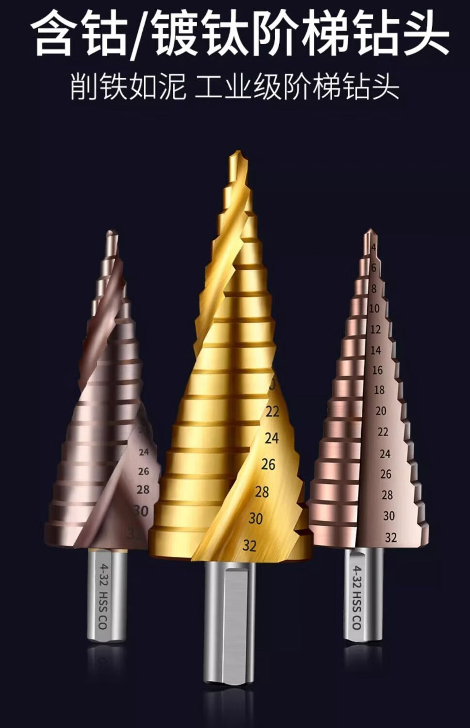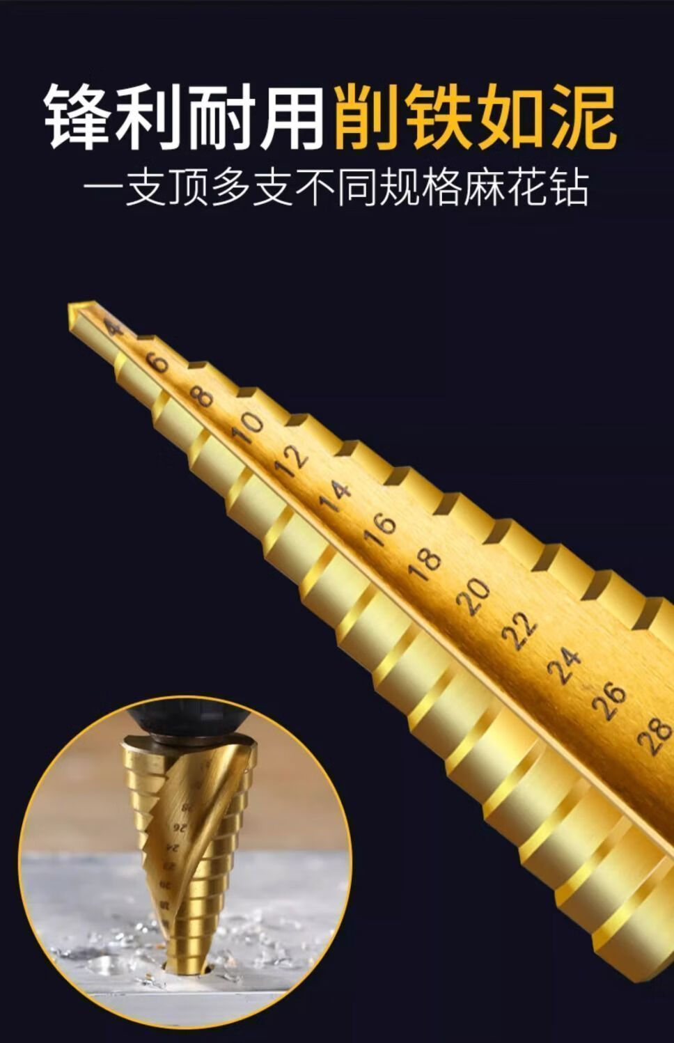 Vinoa pagoda drill bit reaming hole opener multi-functional stainless steel high hardness metal special punch imported from Germany super hard 4-32 straight groove sharp