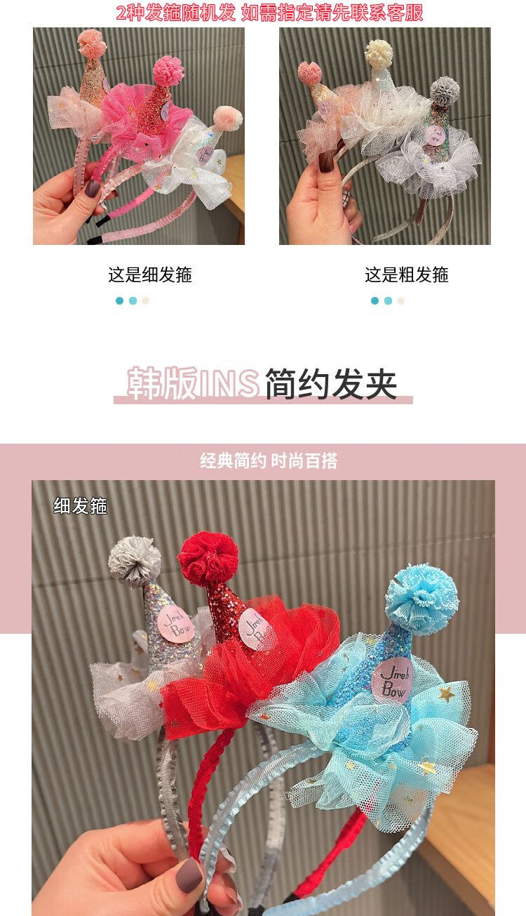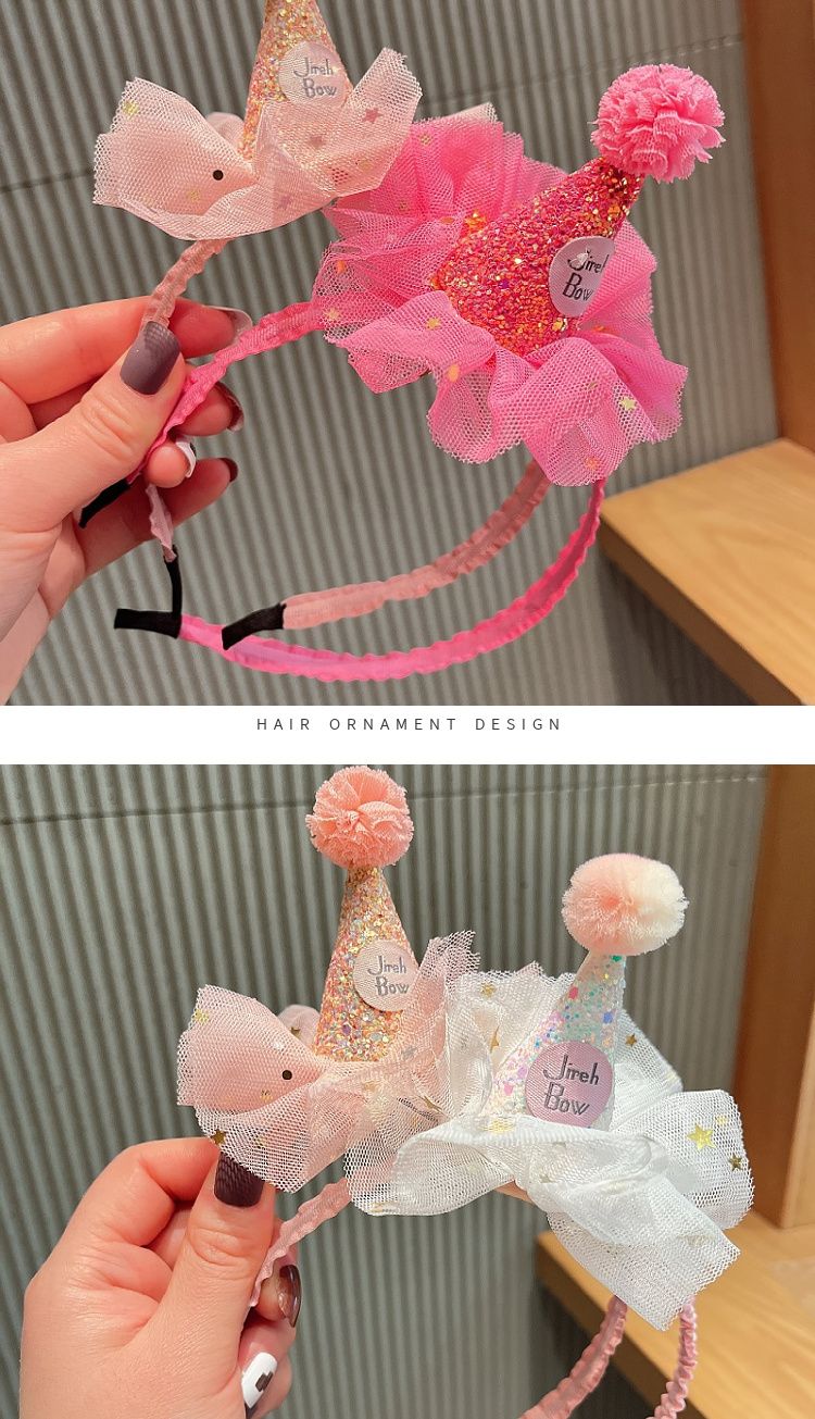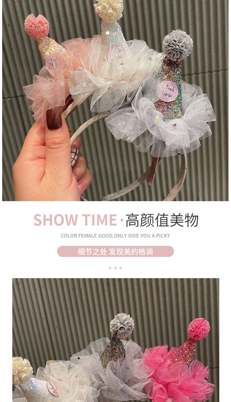 Korean children's lace birthday headband hair accessories sweet temperament girls one-year-old hairpin headband children's hat hairband 07 Korean pink hairpin