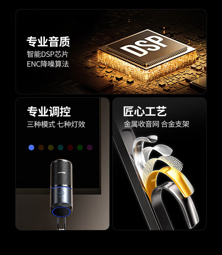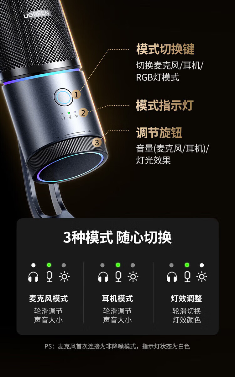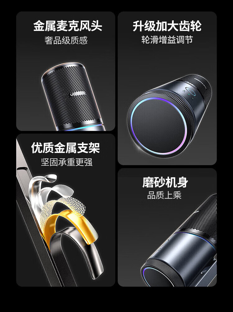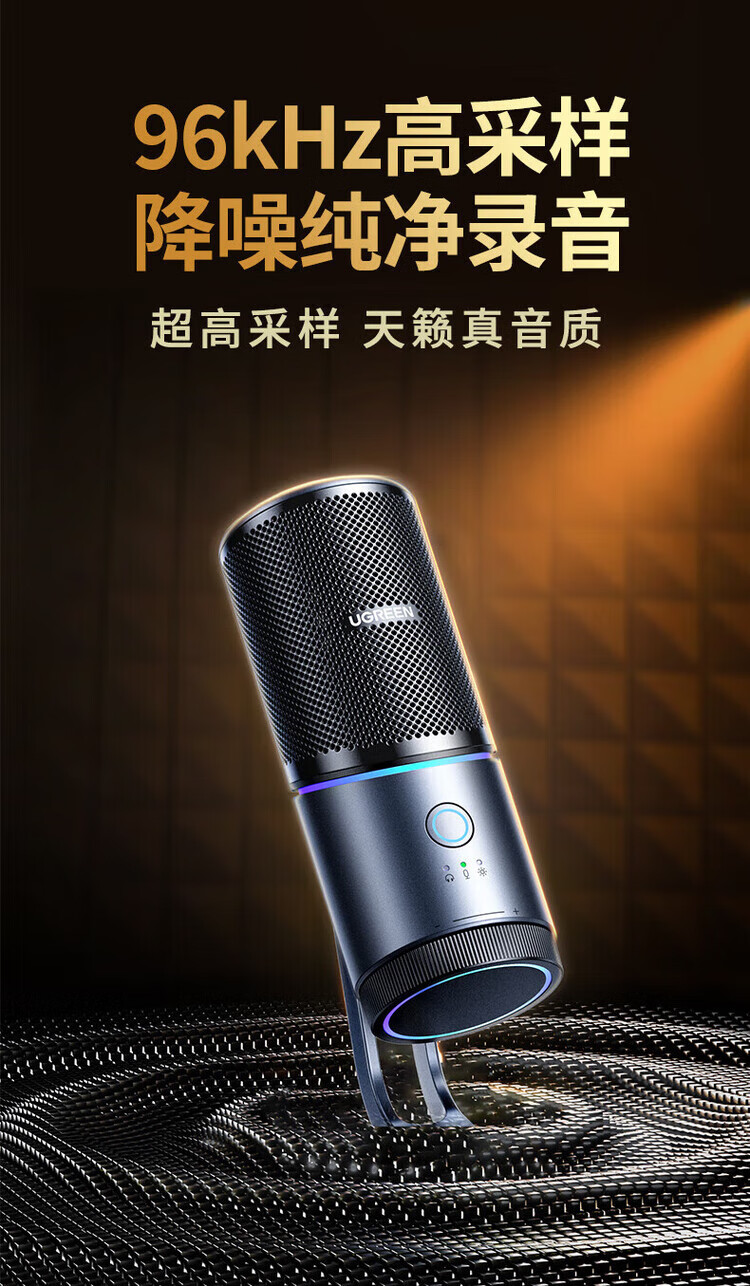 UGREEN Desktop Microphone Cantilever Stand Model USB Desktop Microphone E-Sports Game Live Broadcast Noise Reduction Condenser Microphone Built-in Sound Card Microphone Pointing Recording Radio Microphone CM769 Cantilever Stand Model 55729