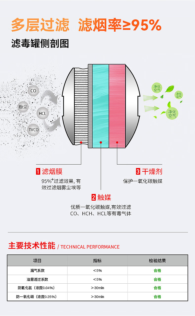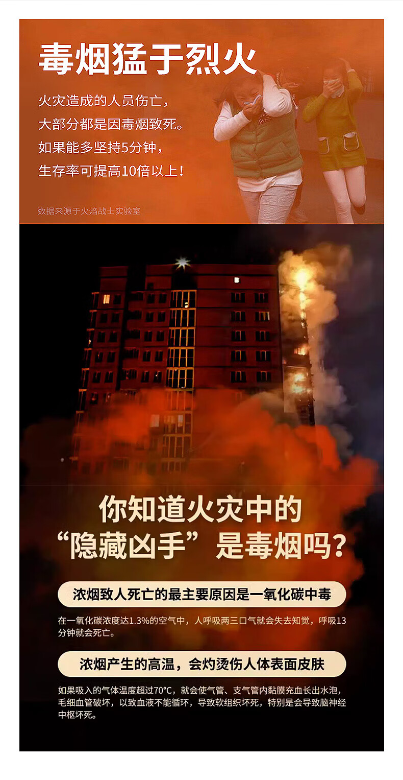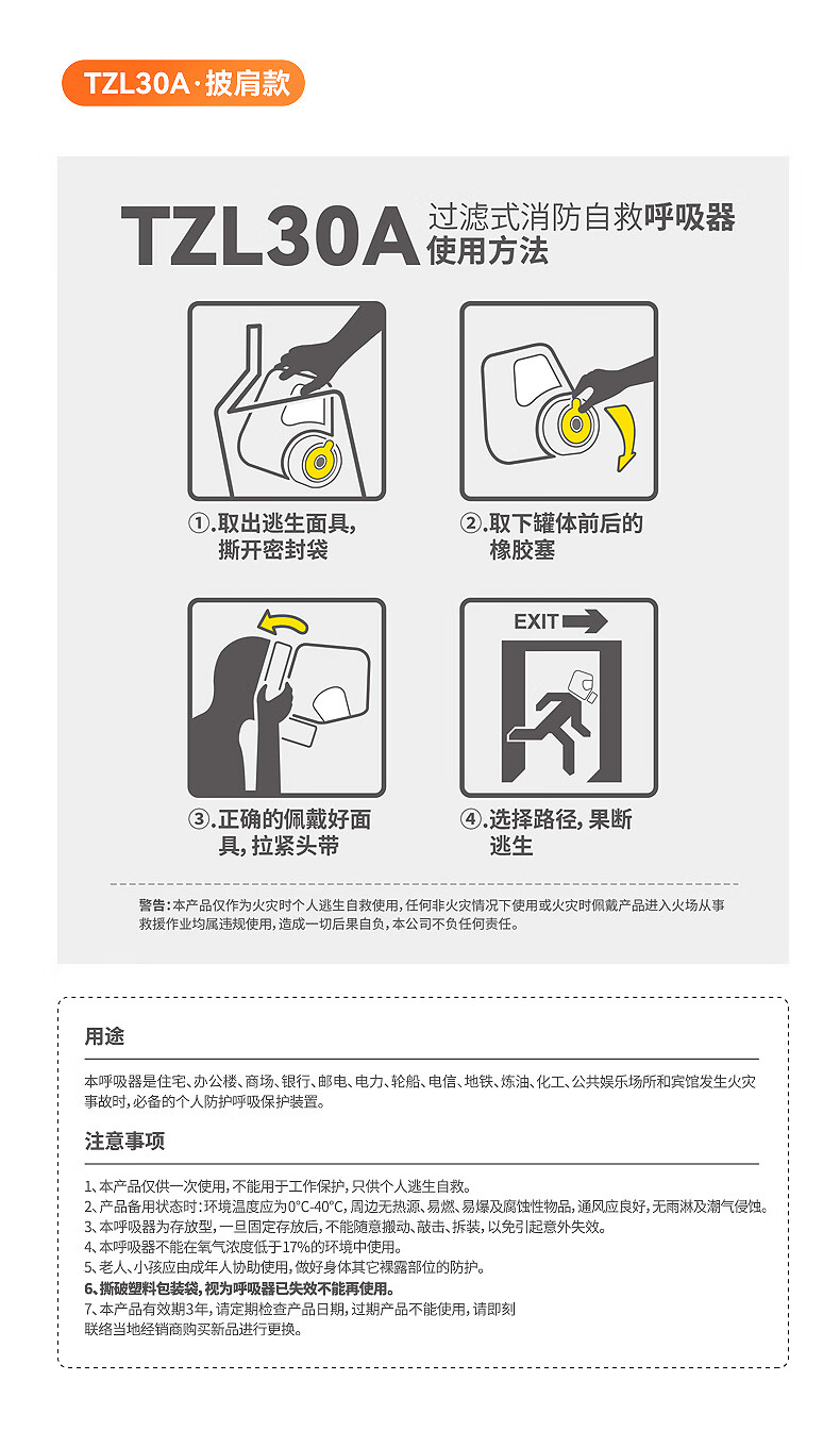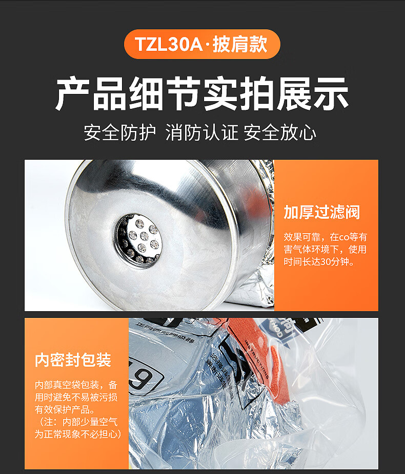 Flame Warrior fire escape mask TZL30A fire protection mask self-rescue respirator national standard 3C certified anti-virus upgraded filter fire self-rescue respirator