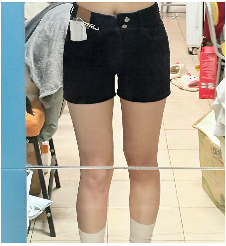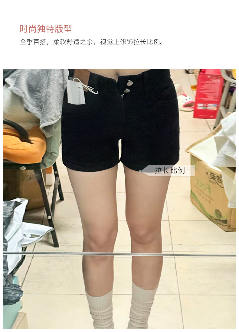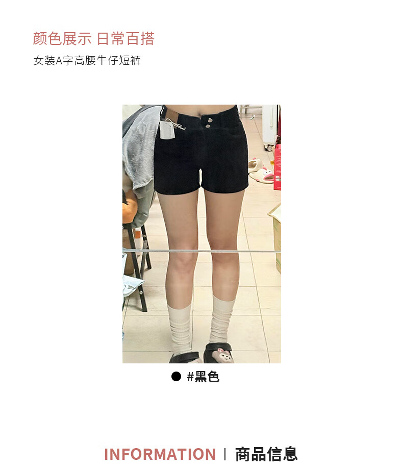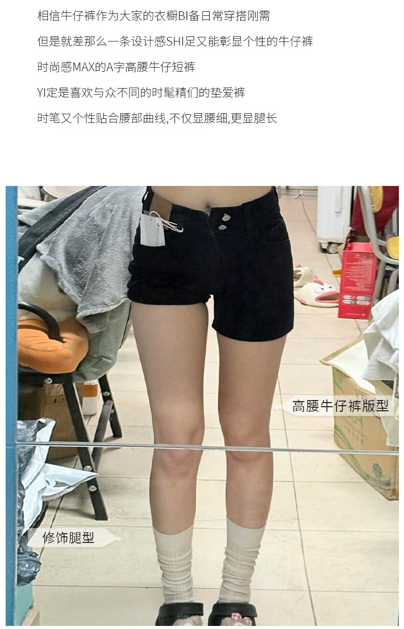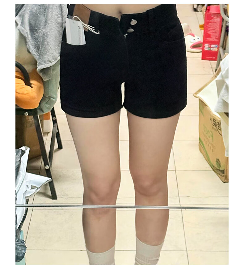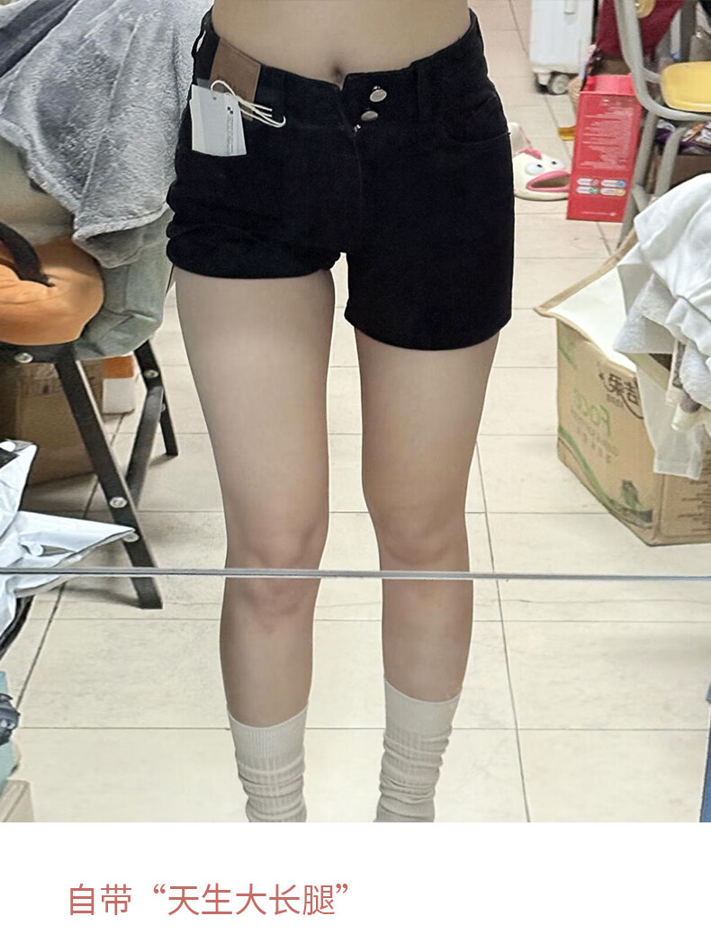 Qumile black denim hot girl shorts women's summer high waist fat mm large size slim little sports ultra short a-line hot pants black XL recommended 115-130 Jin Jin equals 0.5 kg