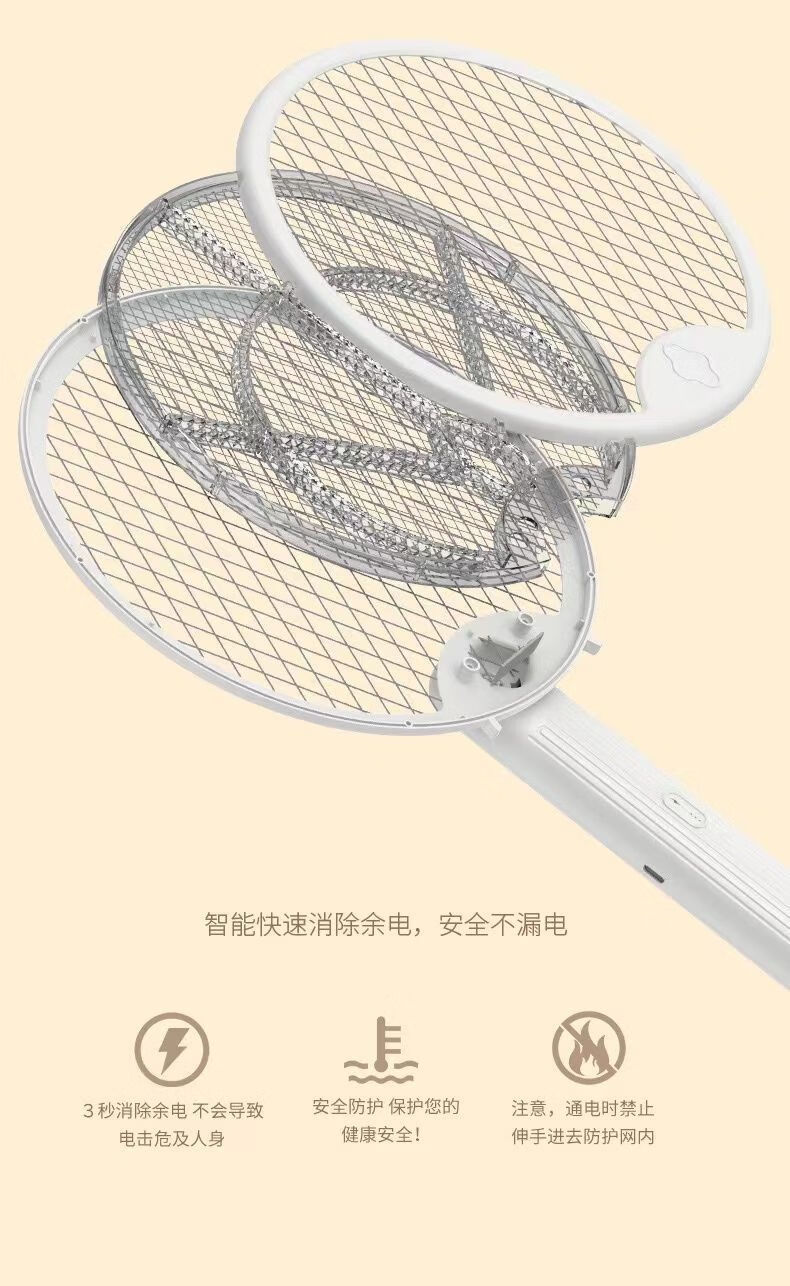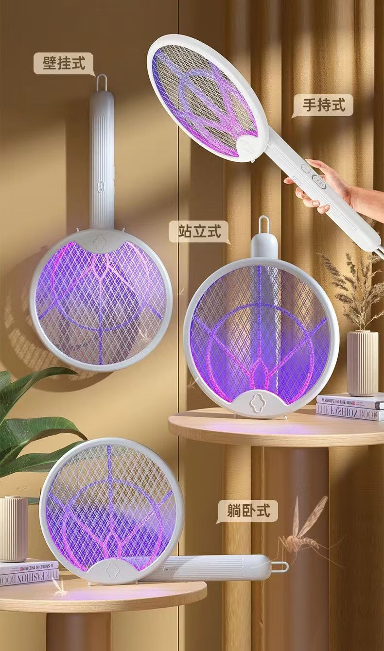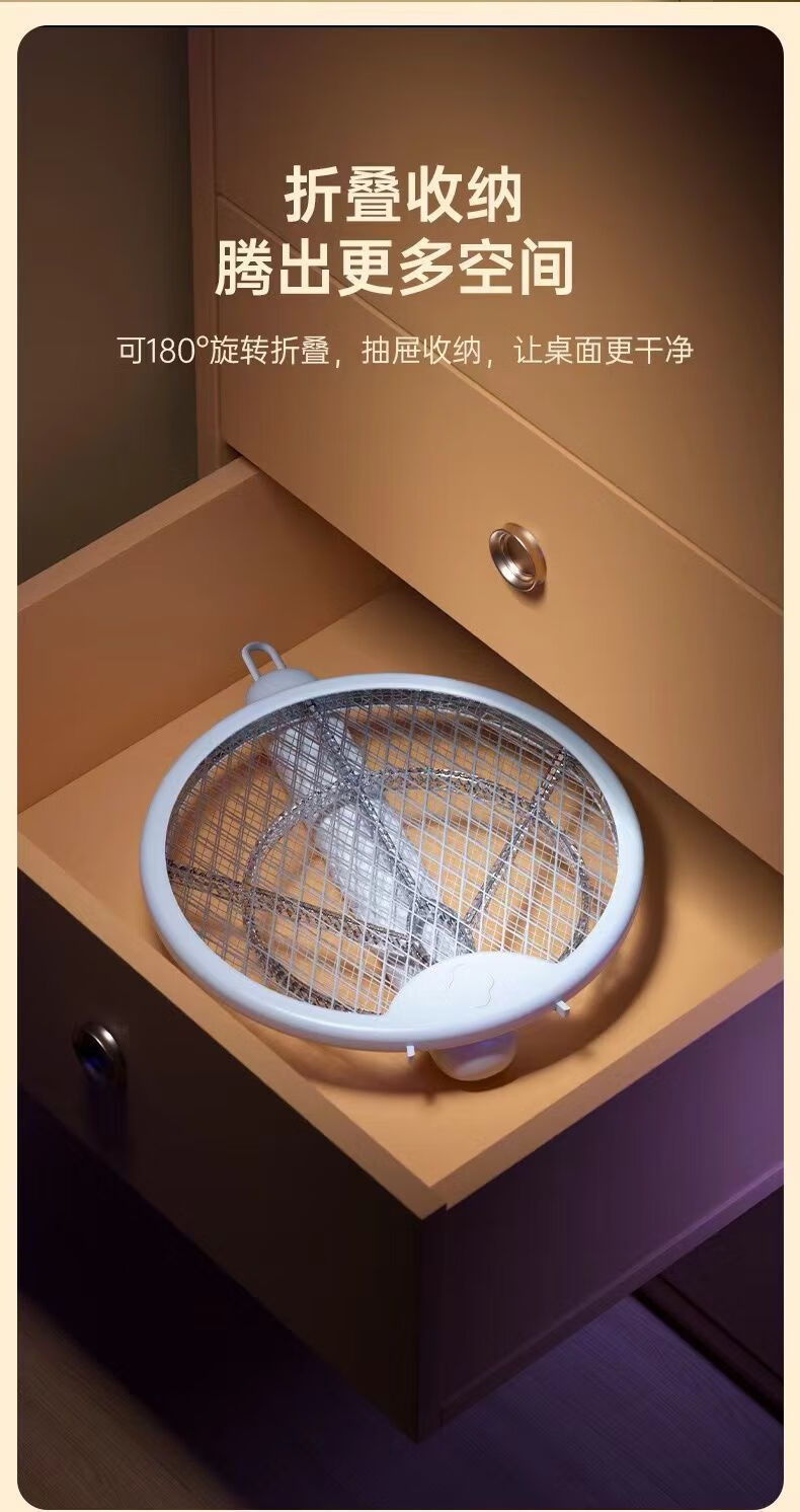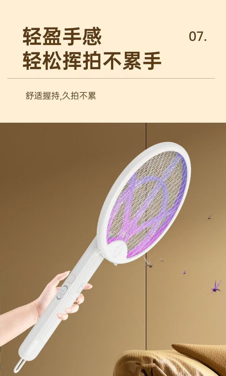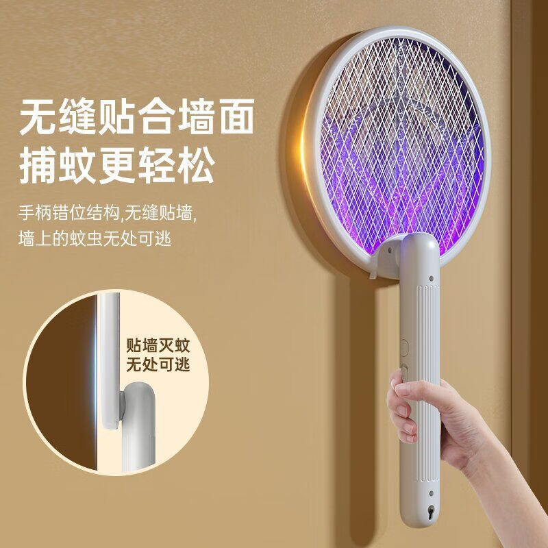 Midea's high-efficiency folding electric mosquito swatter, household handheld rechargeable mosquito killer and adsorption, three-in-one rechargeable mosquito killer lamp, lithium battery, white, large mesh surface with built-in mosquito trap lamp, three-type mosquito killer, general model 600M, foldable model, extra large mesh surface, handheld