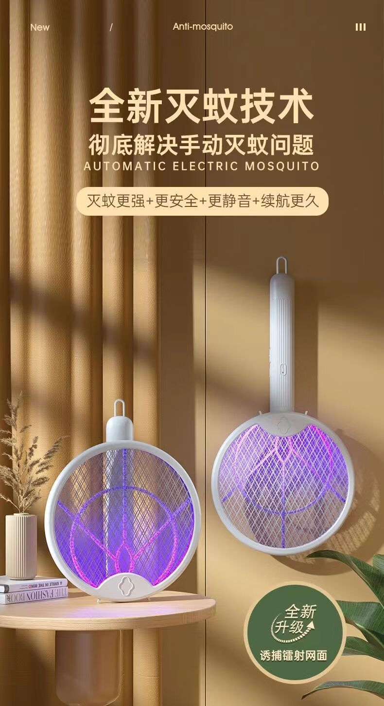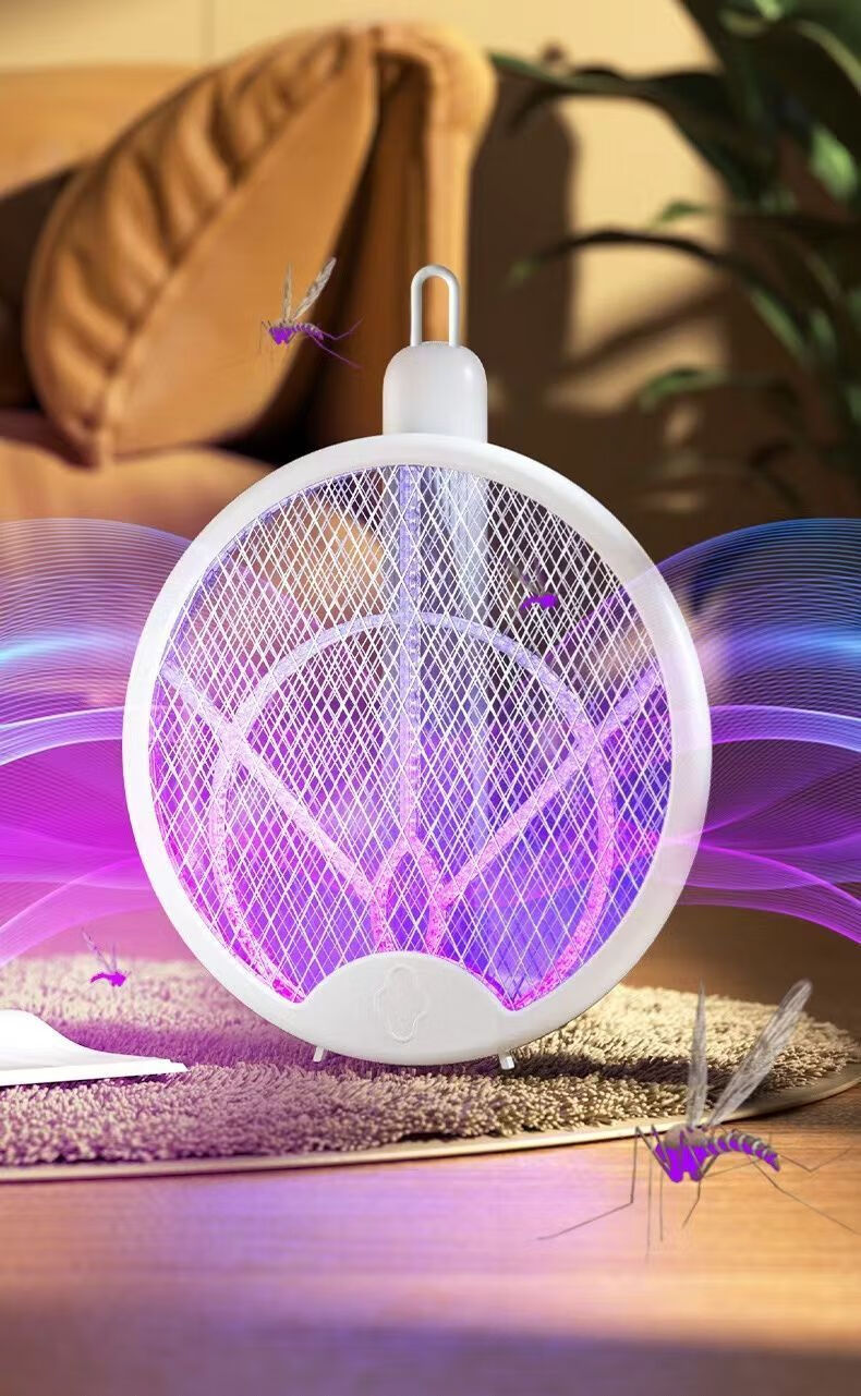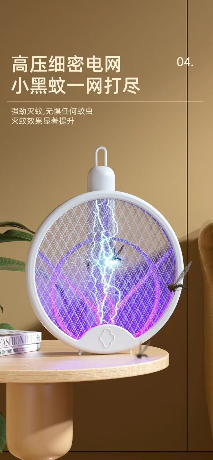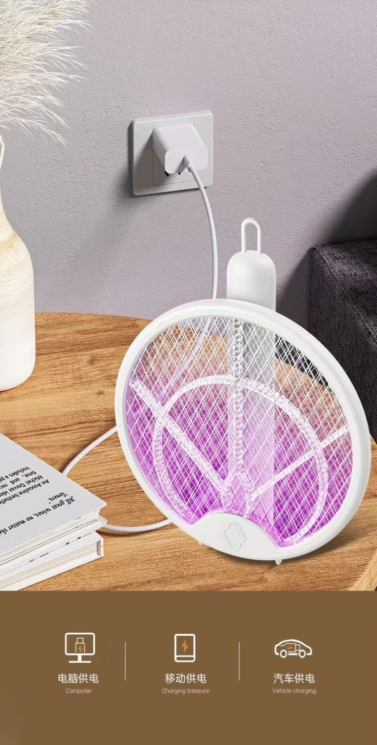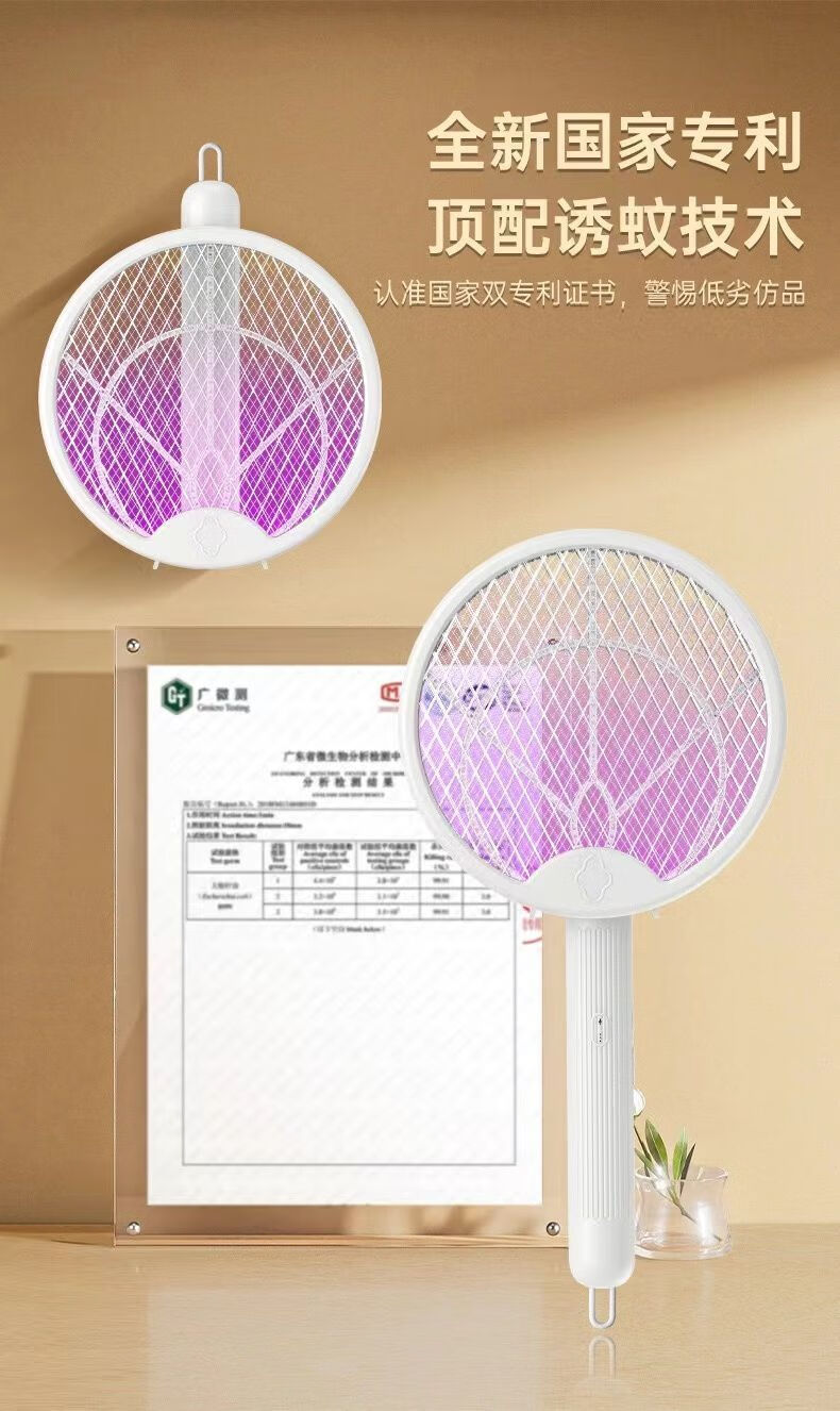 Midea's high-efficiency folding electric mosquito swatter, household handheld rechargeable mosquito killer and adsorption, three-in-one rechargeable mosquito killer lamp, lithium battery, white, large mesh surface with built-in mosquito trap lamp, three-type mosquito killer, general model 600M, foldable model, extra large mesh surface, handheld