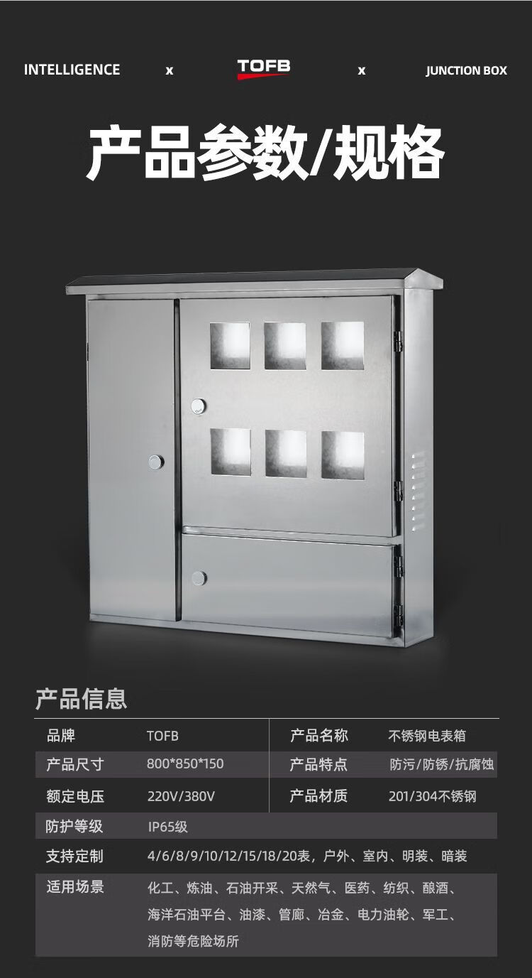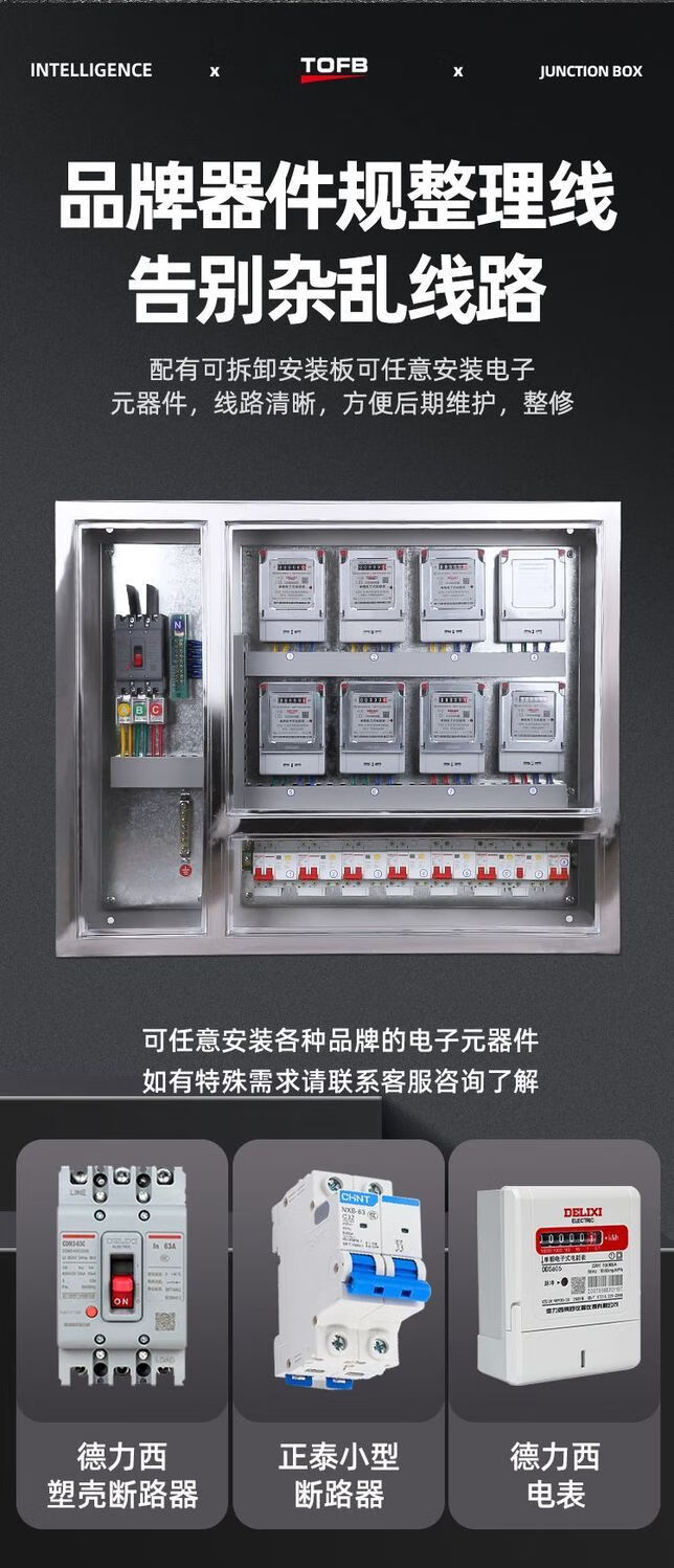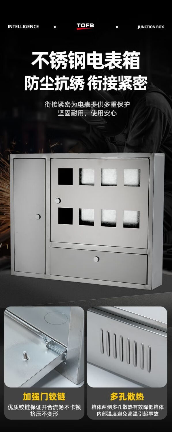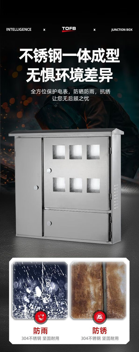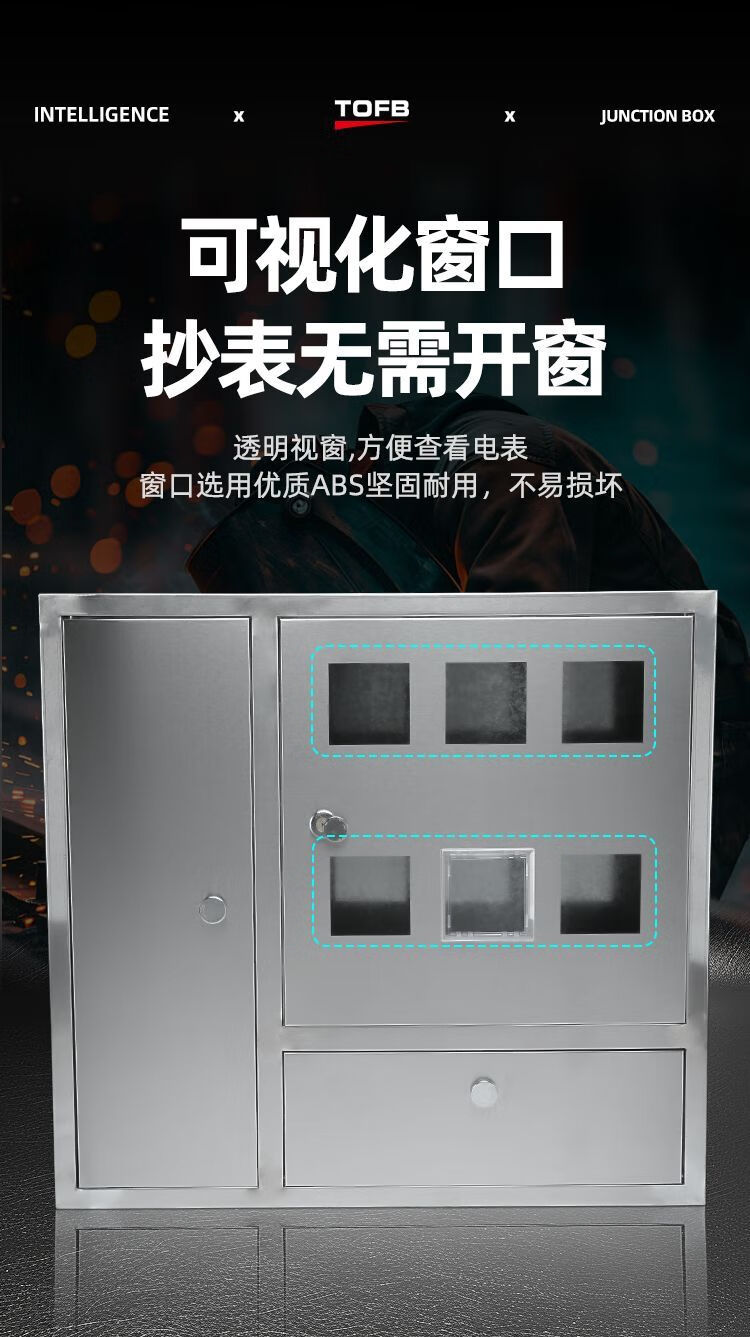 Open switch main meter box complete set 304 stainless steel single three-phase light and dark assembly electric box plug-in card rental house multi-family meter box customization 4-position light/concealed (iron) meter box