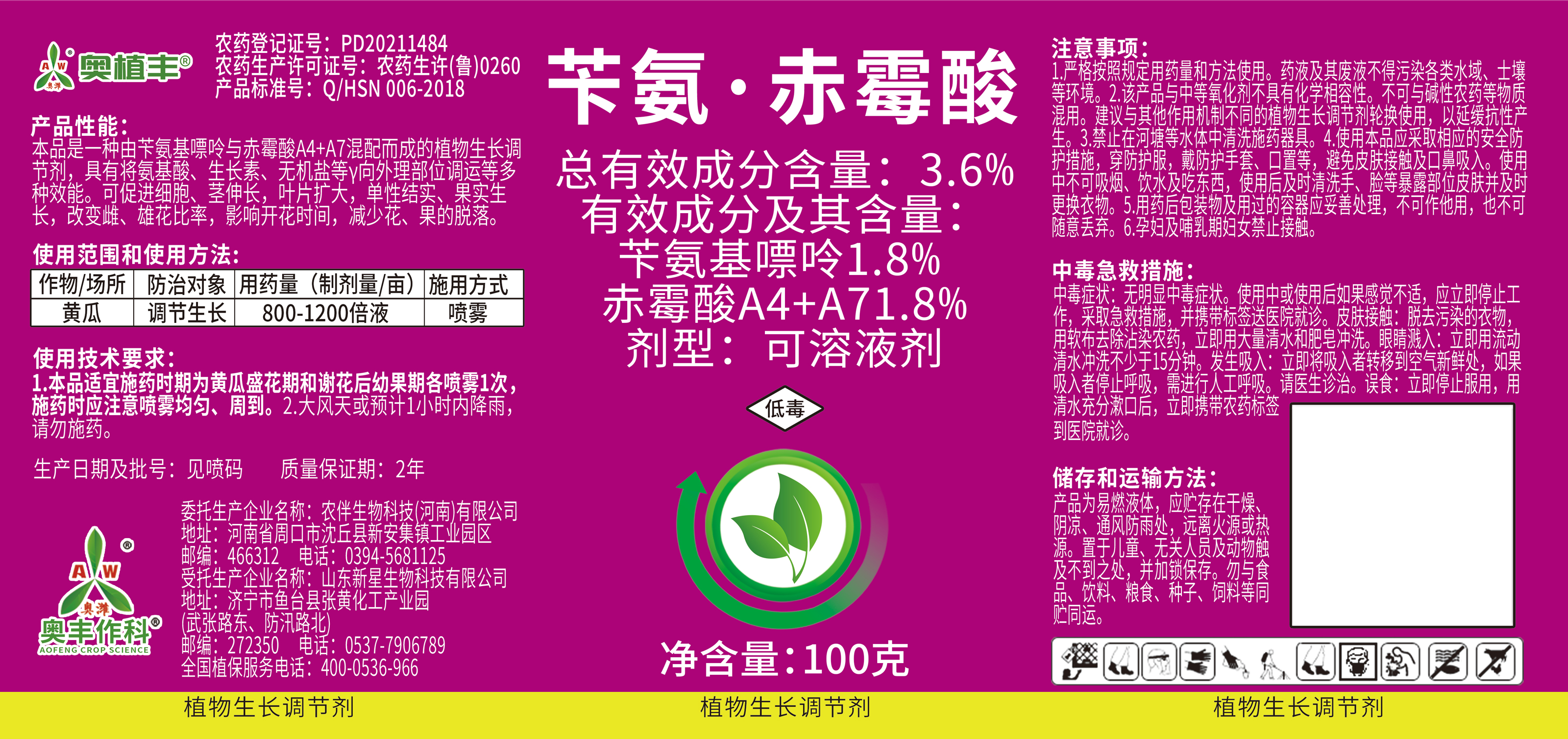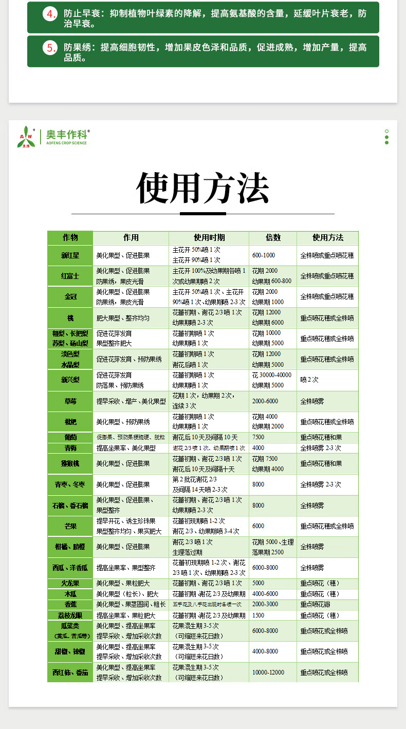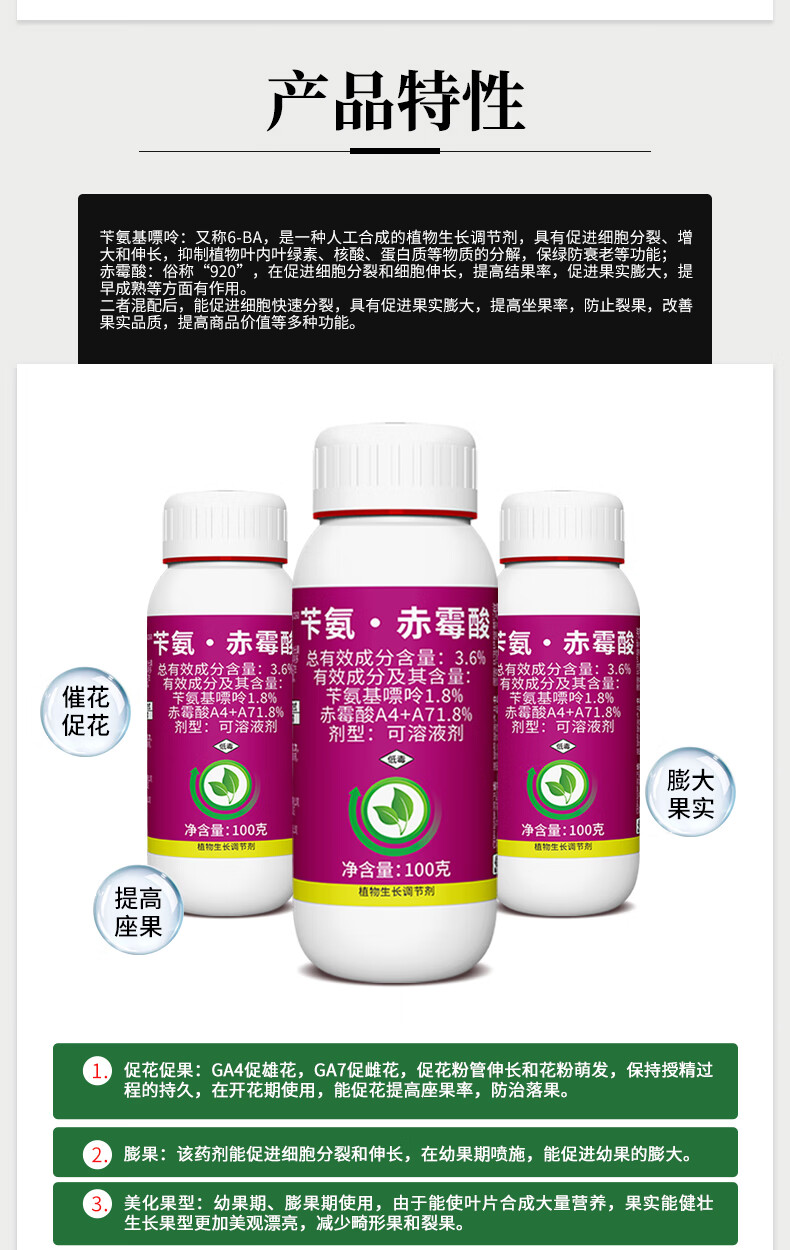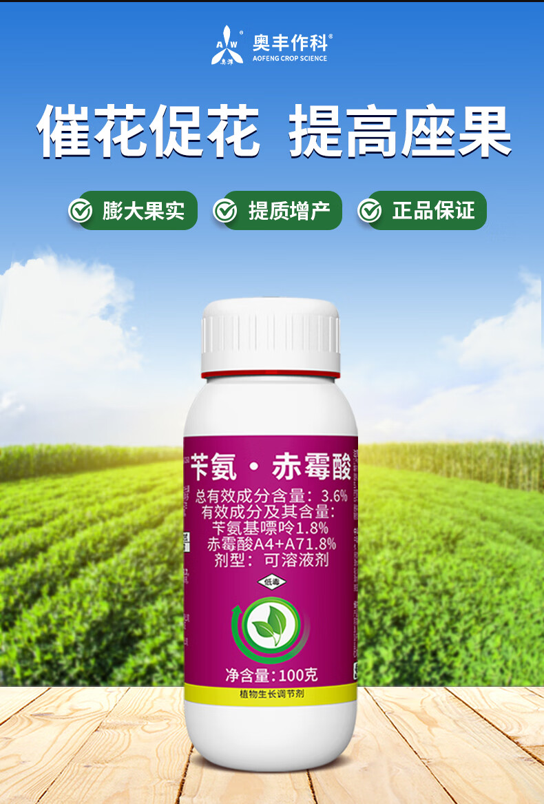 Aowei Aofeng 3.6% benzyl gibberellic acid promotes flowering, promotes flower expansion and fruit expansion, genuine agricultural plant growth regulator pesticide 100g*1 bottle