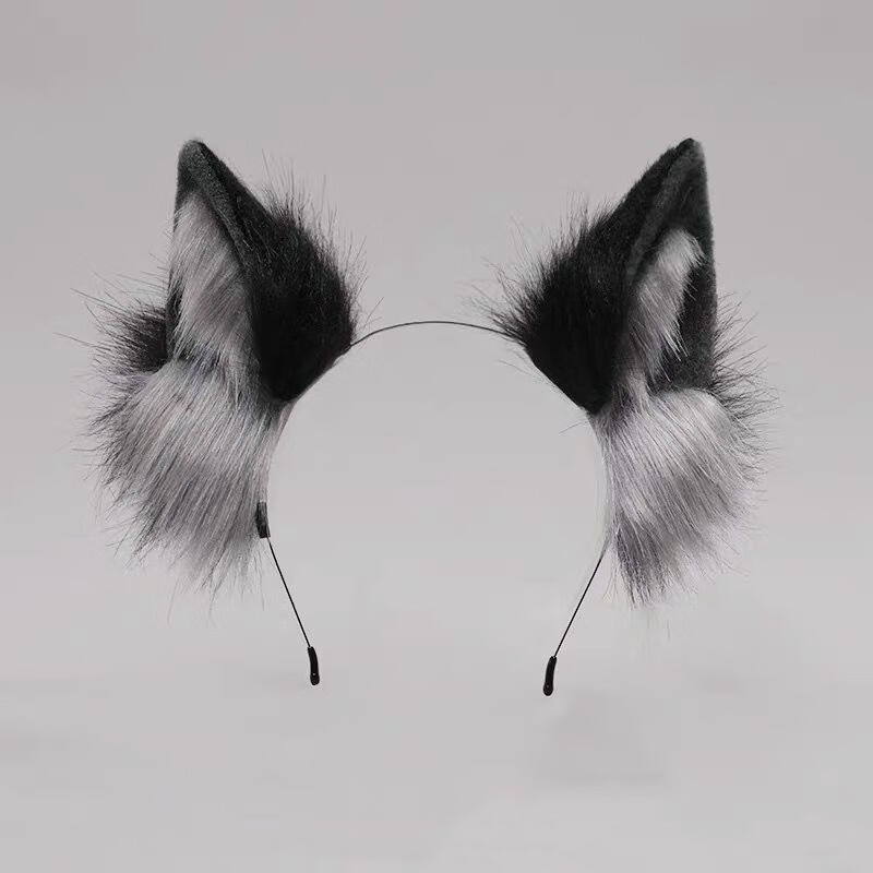 Peerless Love Wolf Ear Headband Female Animal Ear Fox Plush Cat Ear Headband Handmade Christmas Headdress Black Gray A27-305