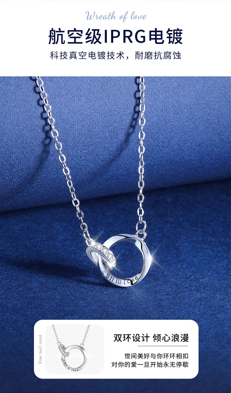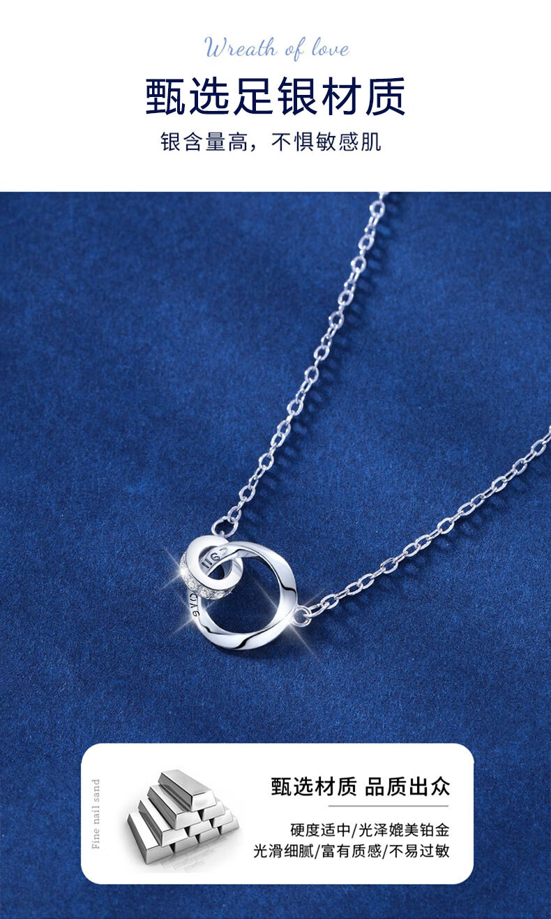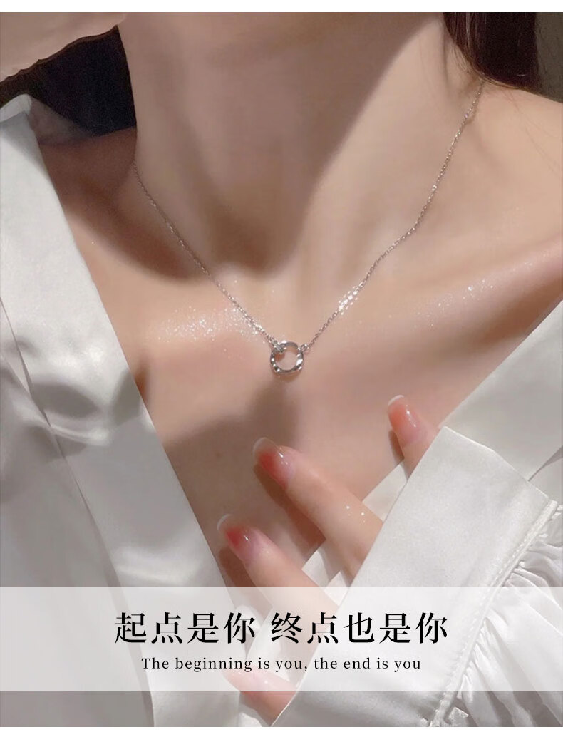 CHINA GOLD Pure Silver Necklace for Women Versatile Möbius Double Ring Pendant Jewelry Valentine's Day Birthday Gift for Girlfriend and Lover Today/Next Day Delivery Möbius Double Ring Necklace
