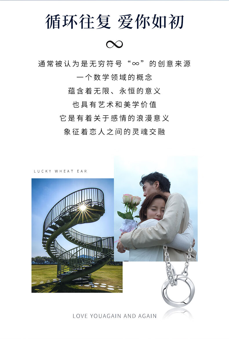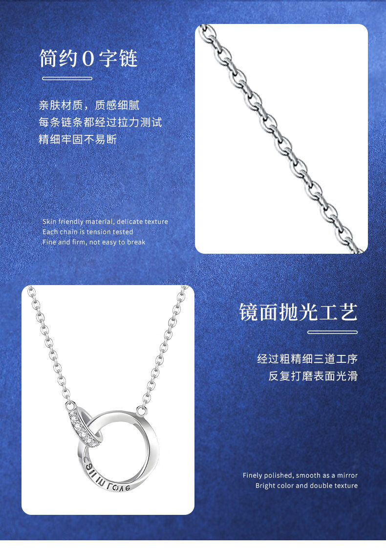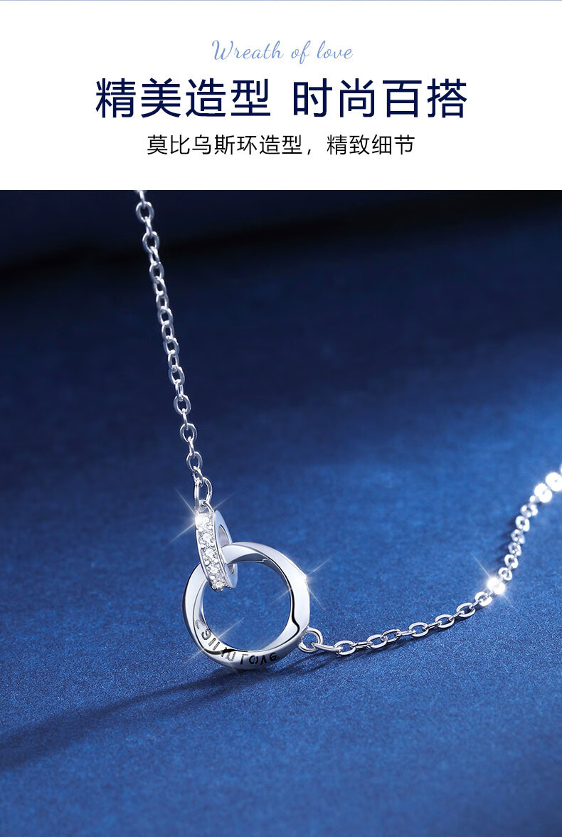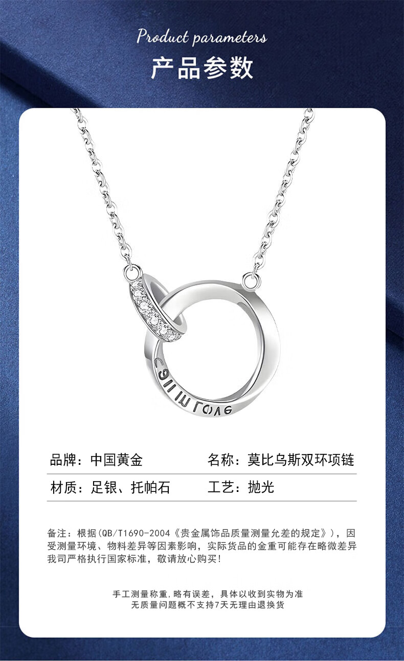 CHINA GOLD Pure Silver Necklace for Women Versatile Möbius Double Ring Pendant Jewelry Valentine's Day Birthday Gift for Girlfriend and Lover Today/Next Day Delivery Möbius Double Ring Necklace