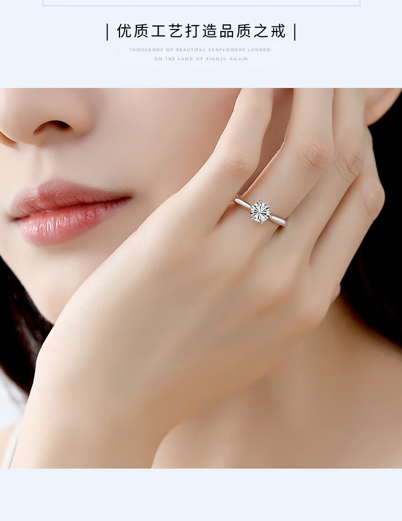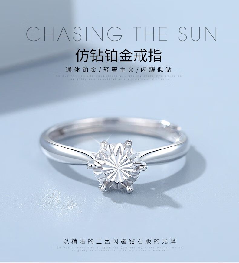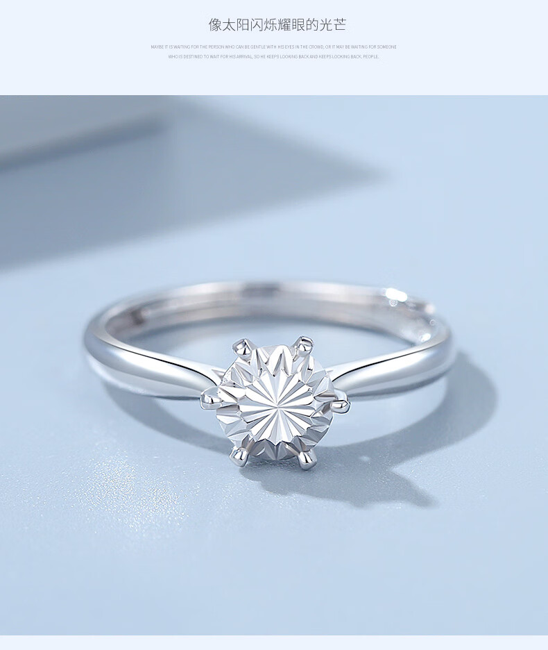 Misu PT950 platinum ring for women with six prongs, imitation diamond ring, platinum engagement wedding ring, birthday gift, weight 3.7-3.9 grams (adjustable range 12-16#)