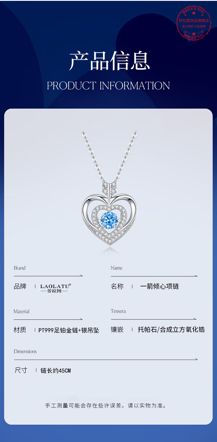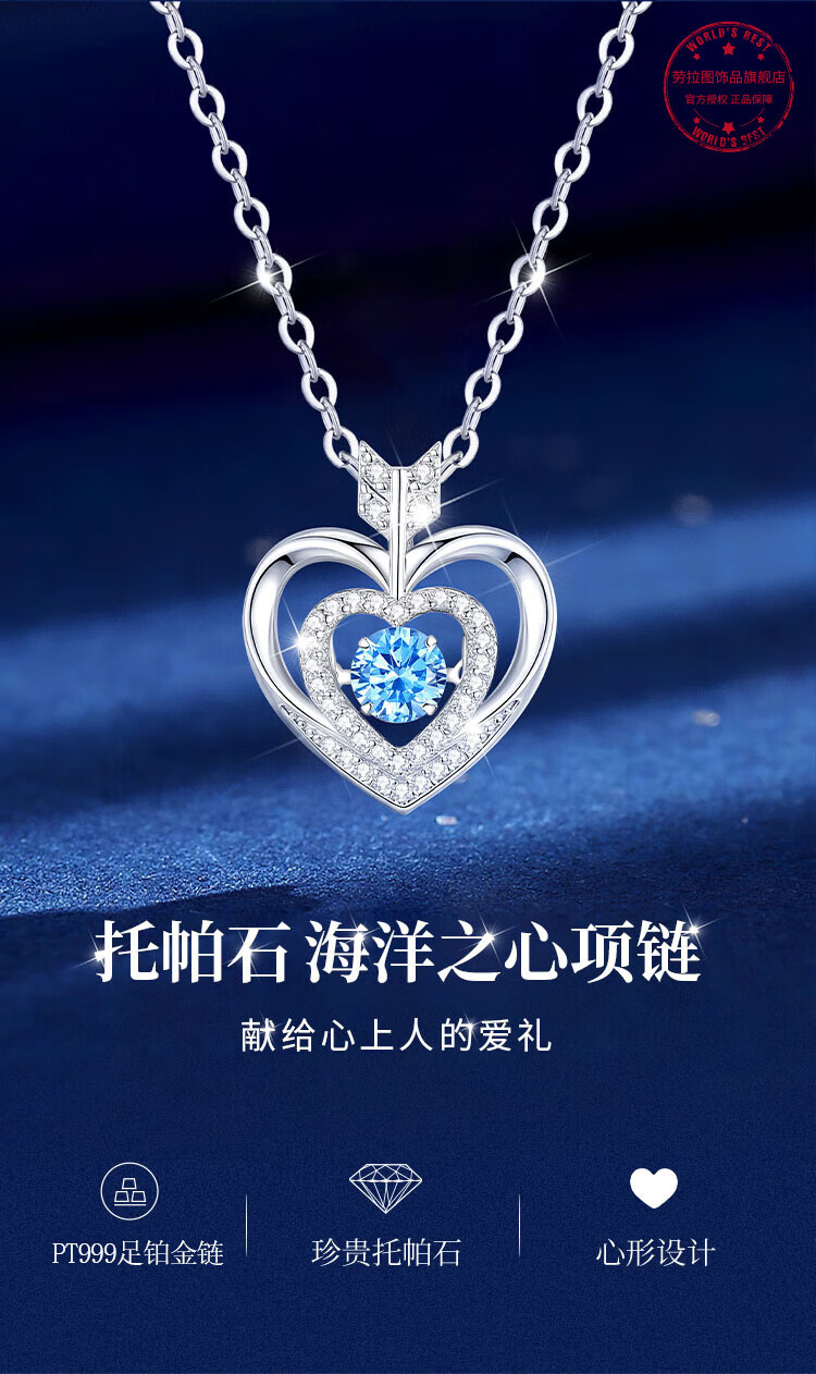 LAOLATU PT999 platinum beating heart necklace for women, platinum clavicle chain, Chinese Valentine's Day gift for girlfriend, free engraving/writing of greeting cards/timely delivery