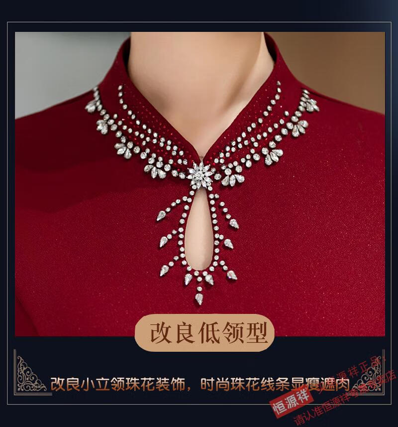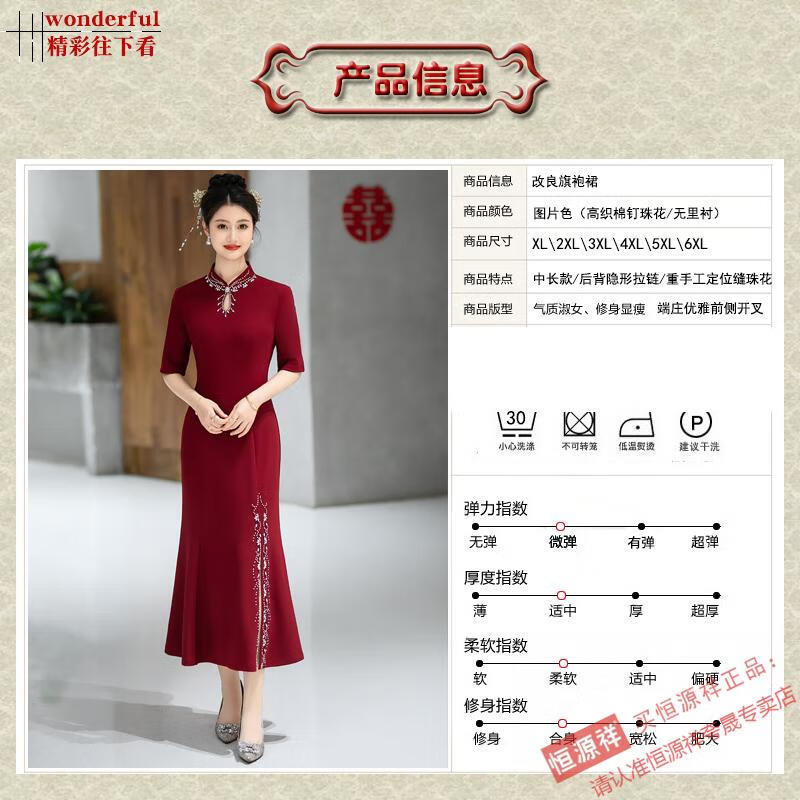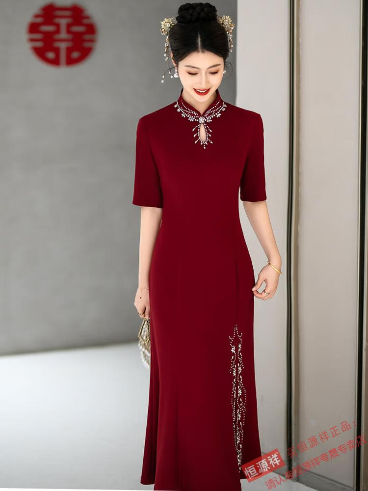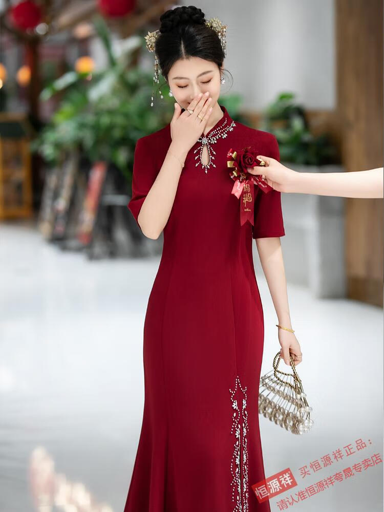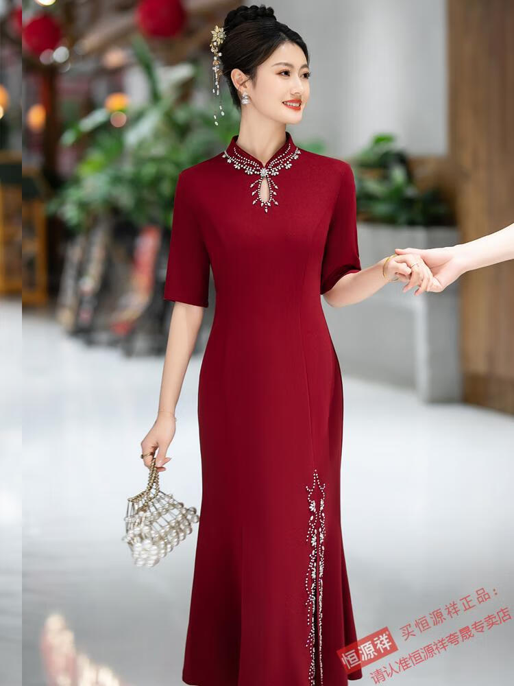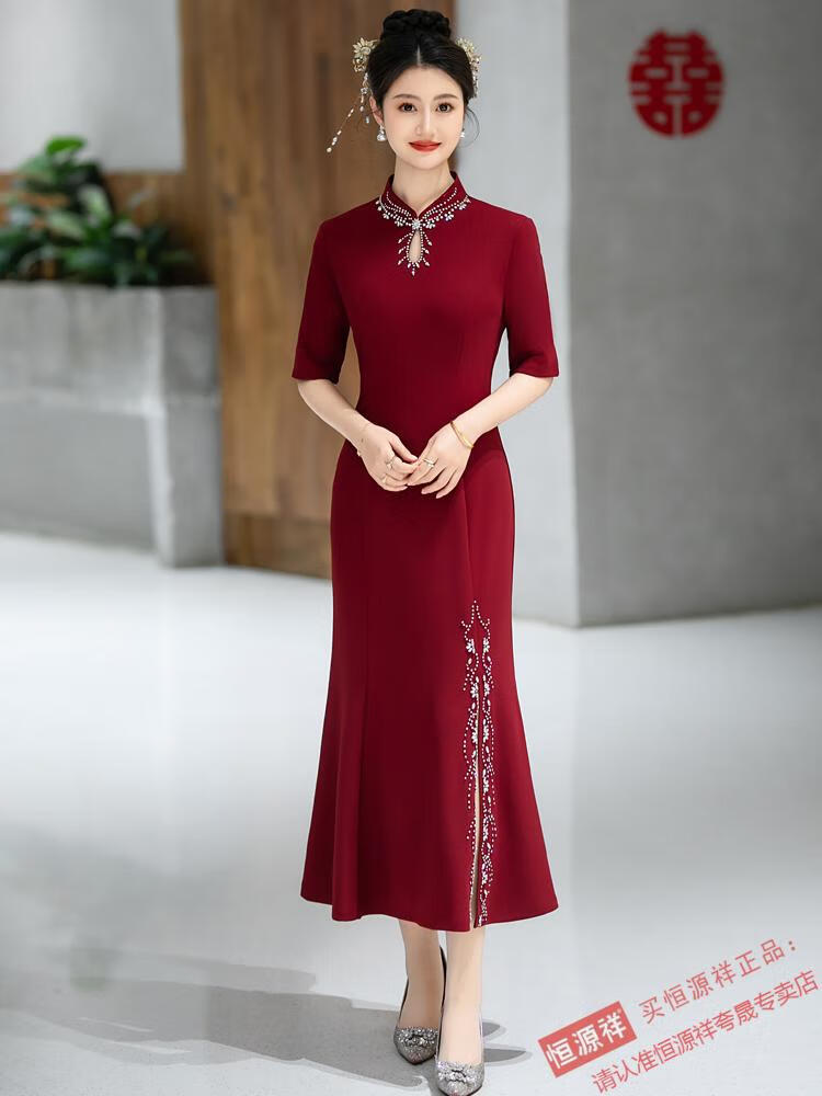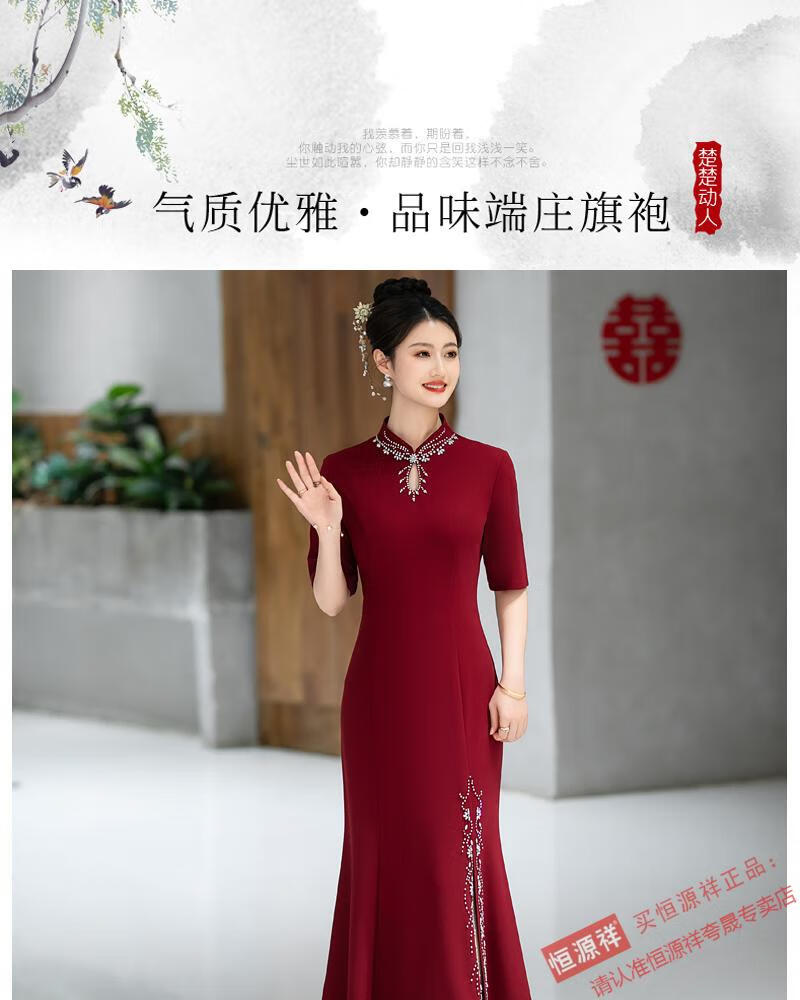 Hengyuan Xiangxi mother-in-law dress wedding banquet mother's wear new Chinese style cheongsam May wedding toast feeling fishtail long large size 1052 purple XL