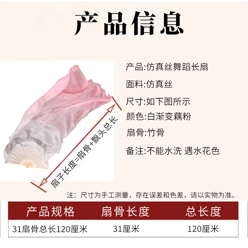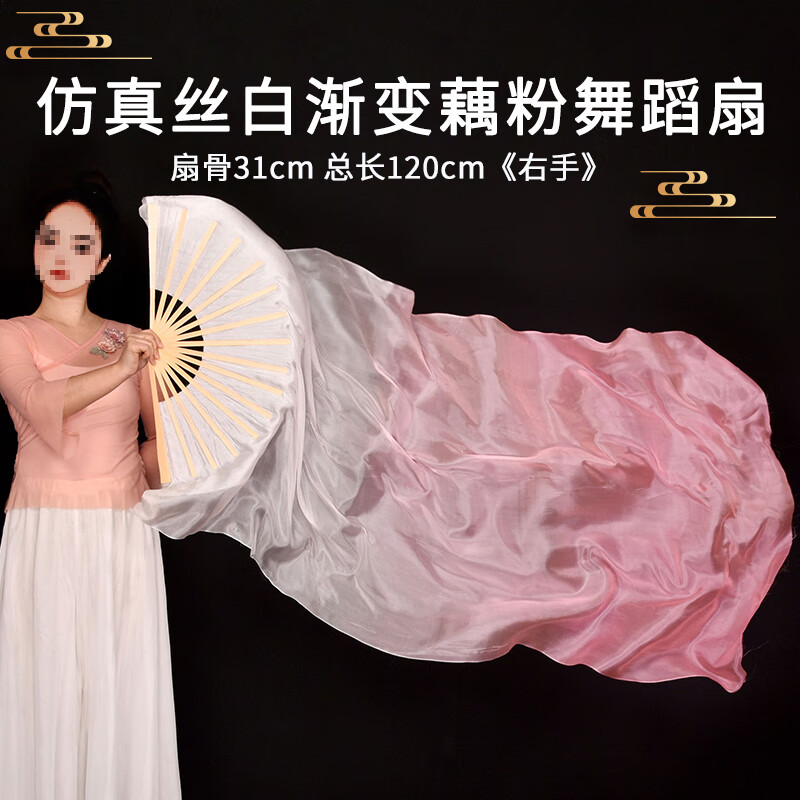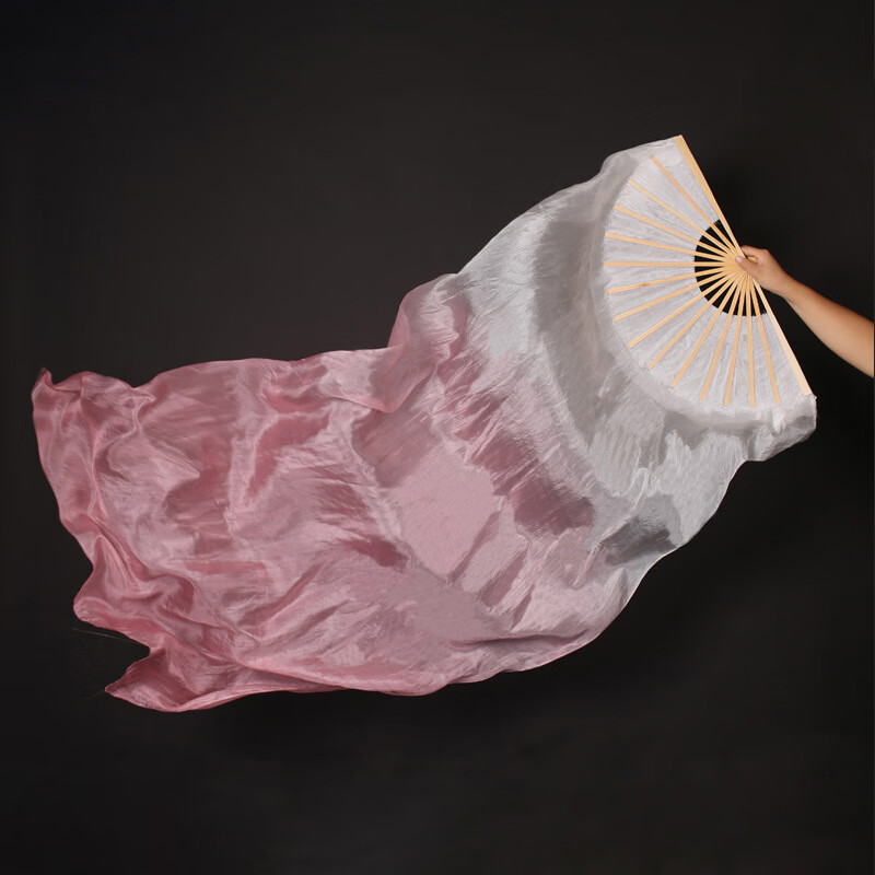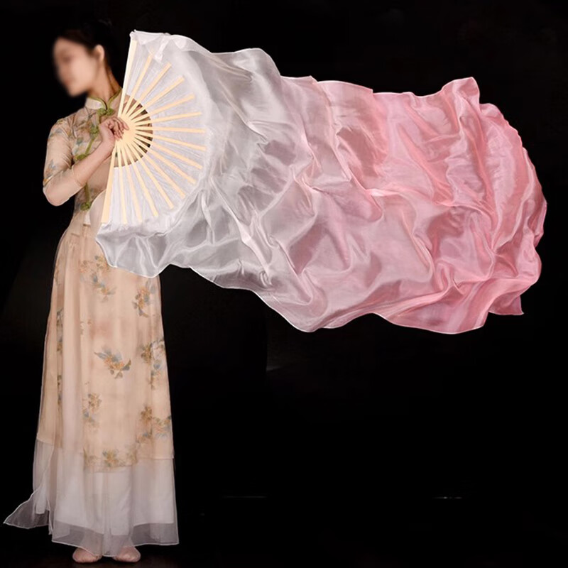 Suican imitation silk long dance fan transformed into a whale on an isolated island classical dance ethnic dance cos light pink gradient long silk fan 1 31cm fan bone total length 1.5 meters right hand fan