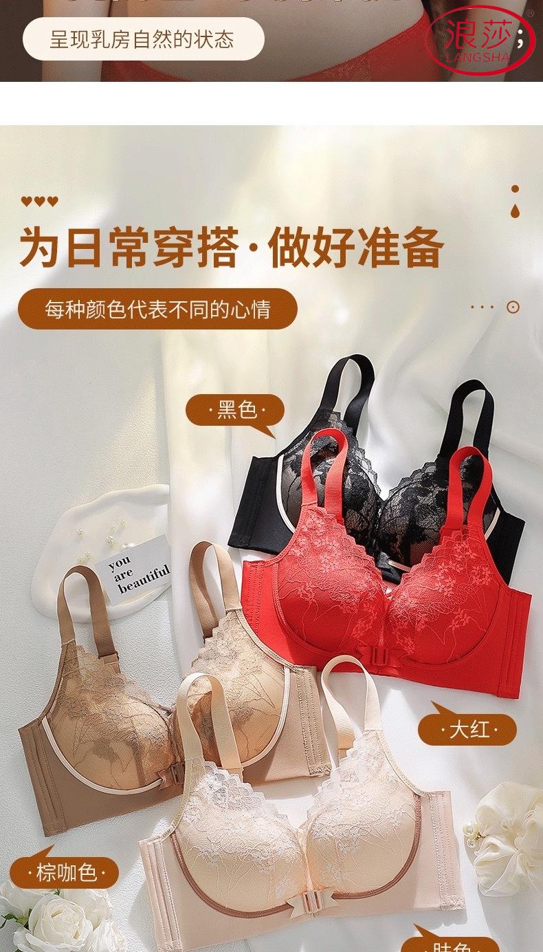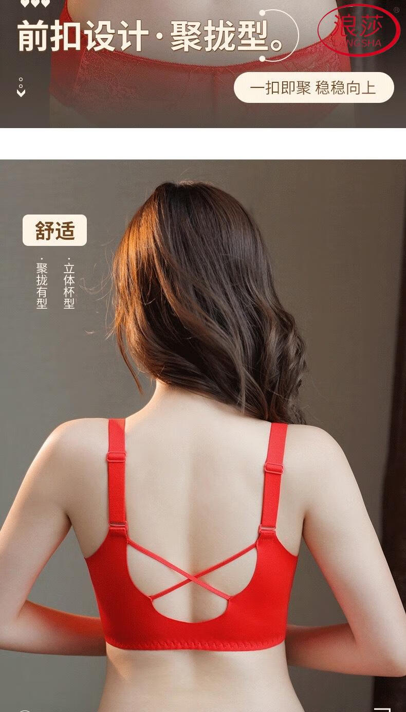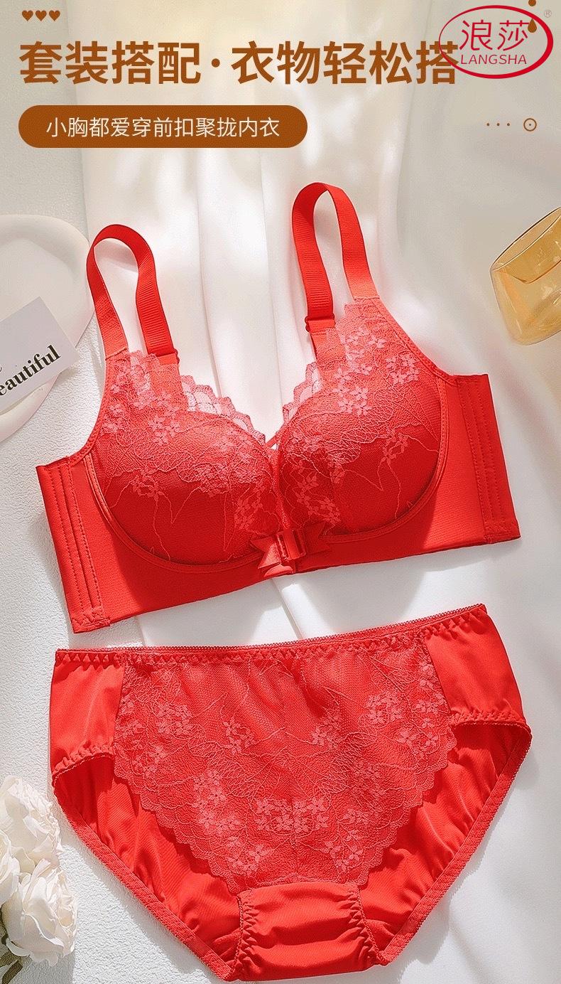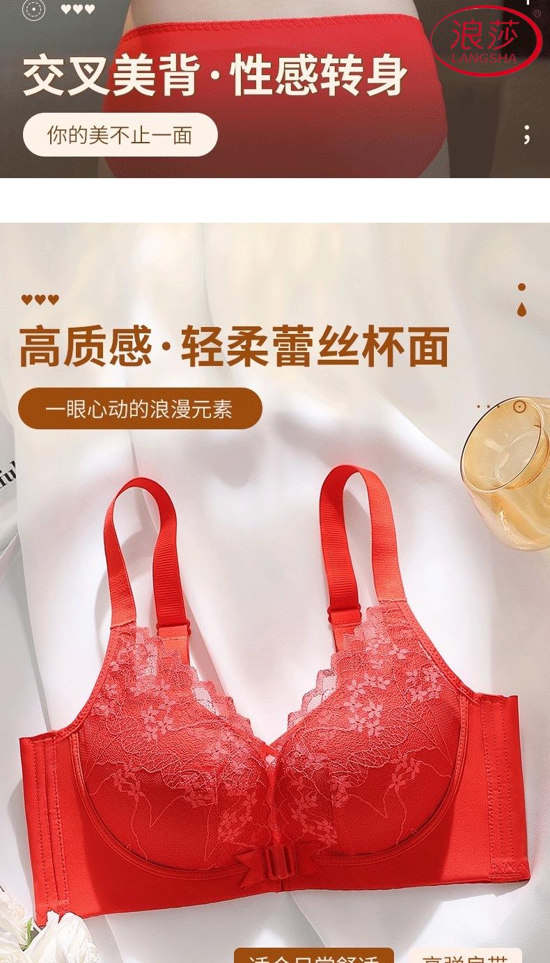 LangSha natal year buckle red bra set gathers pure lust style beautiful back anti-sag lace ladies underwear big red set 95C 42