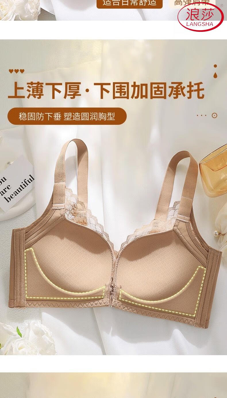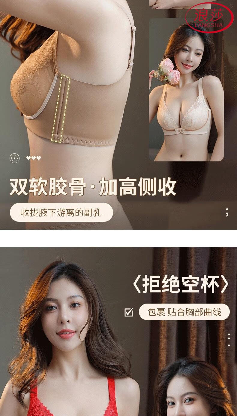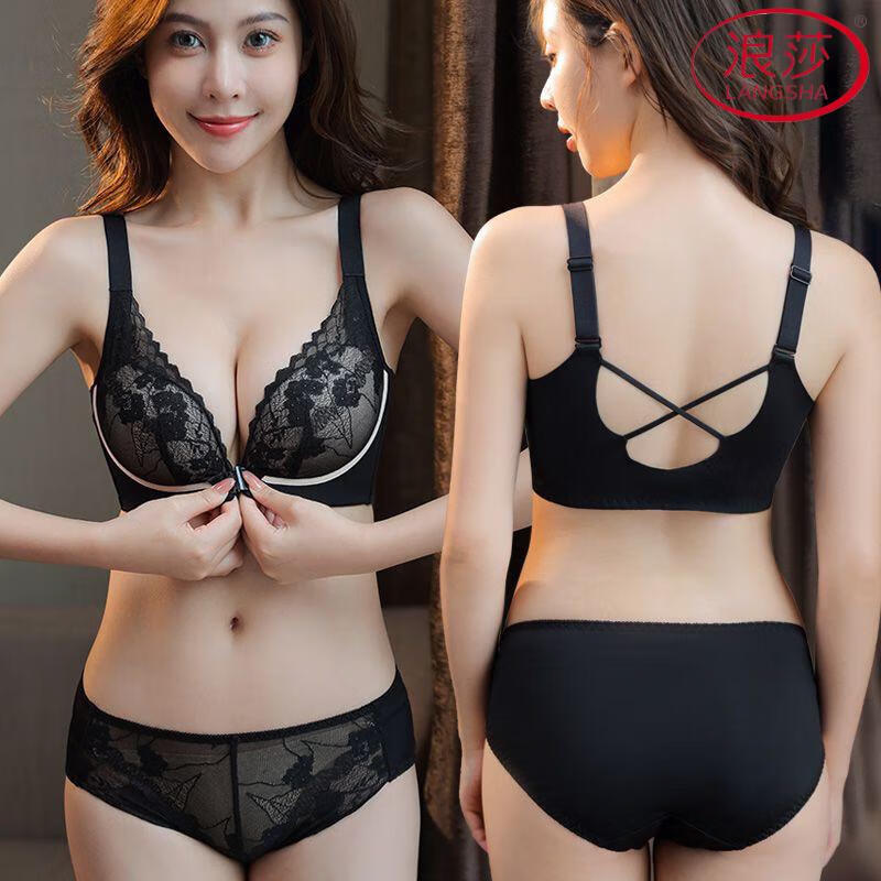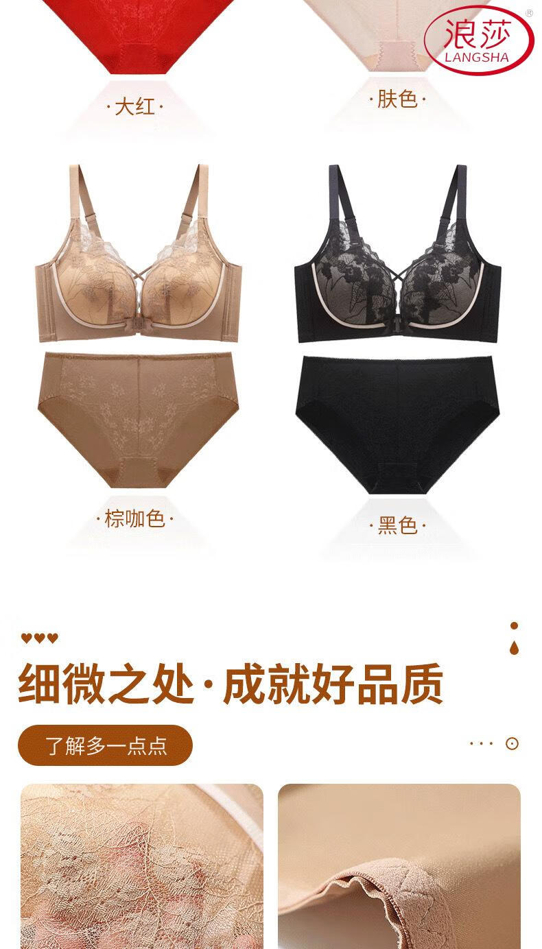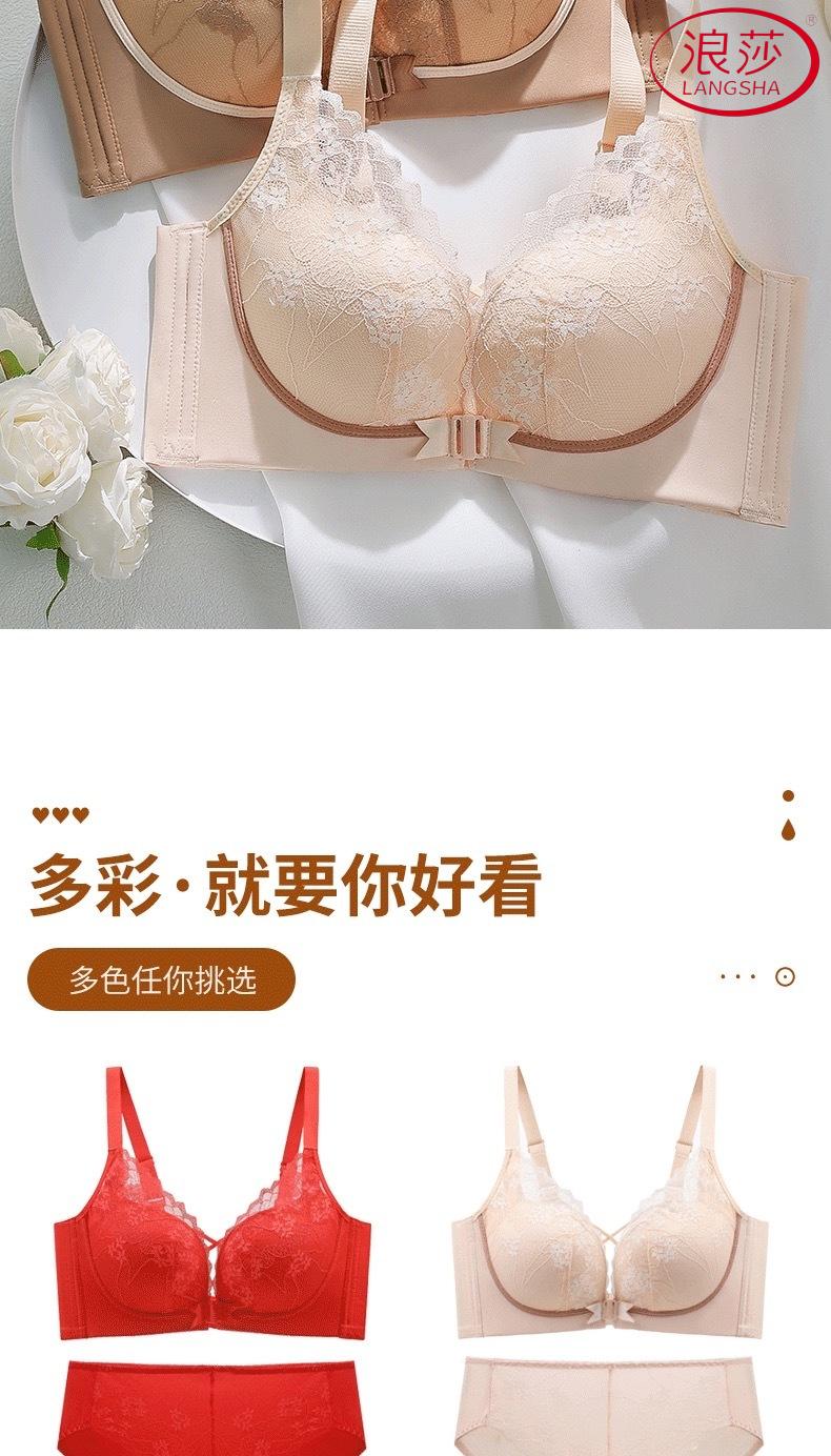 LangSha natal year buckle red bra set gathers pure lust style beautiful back anti-sag lace ladies underwear big red set 95C 42