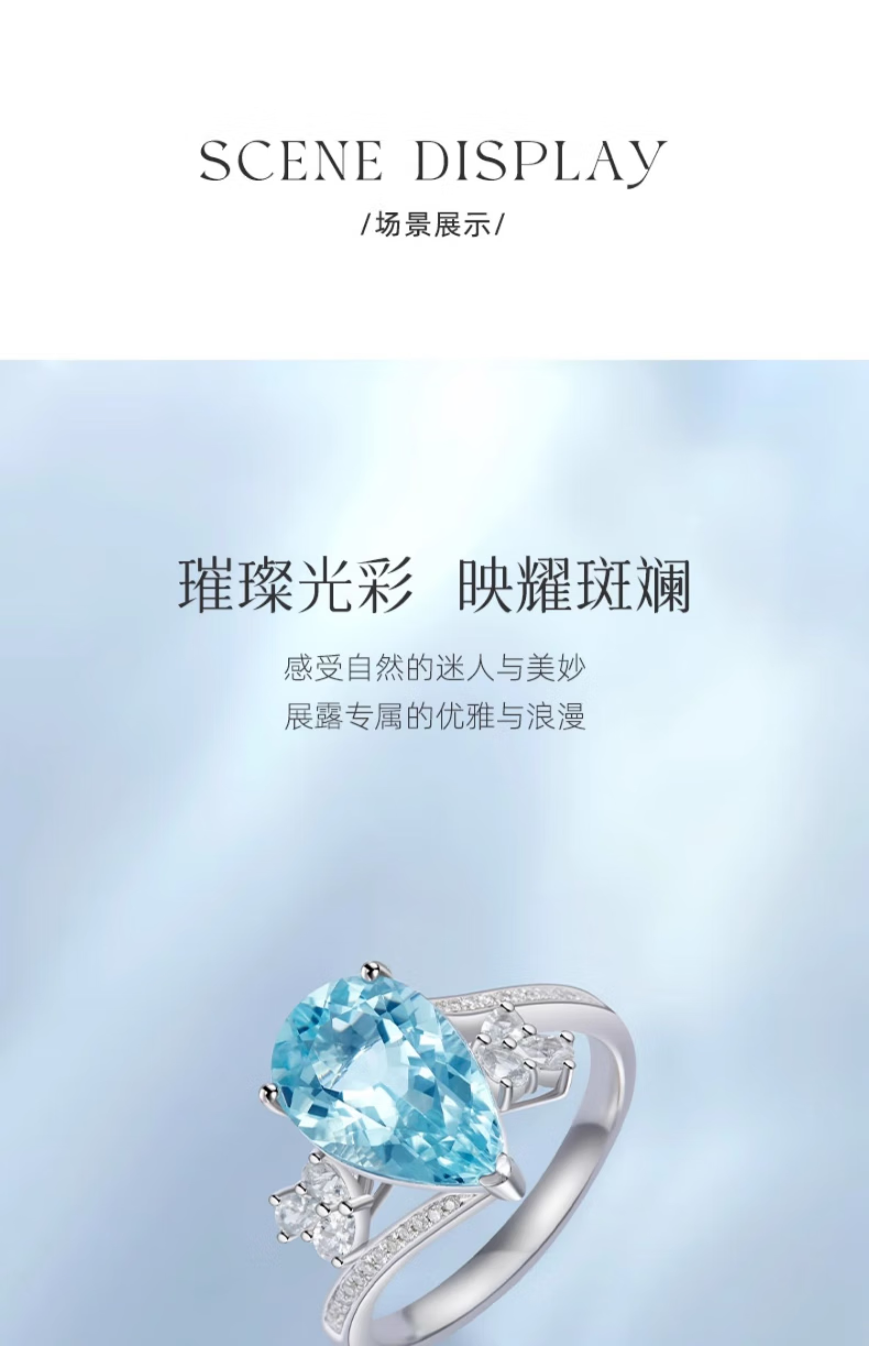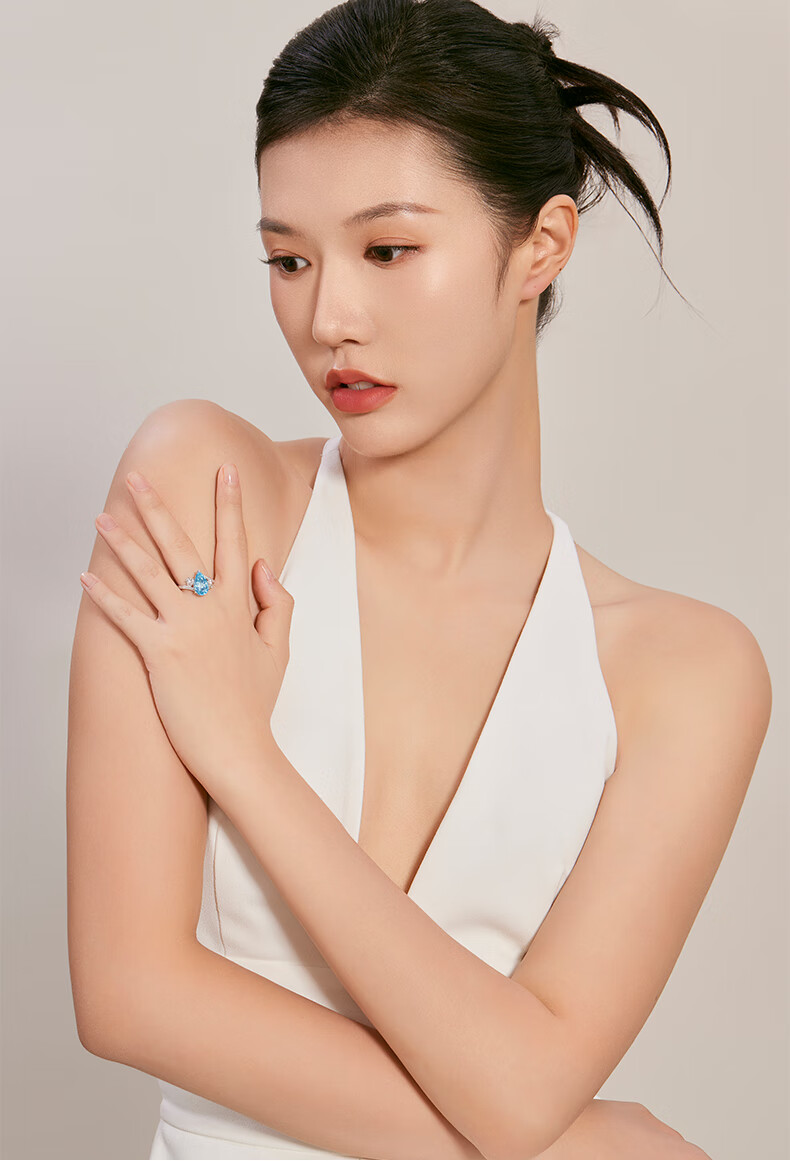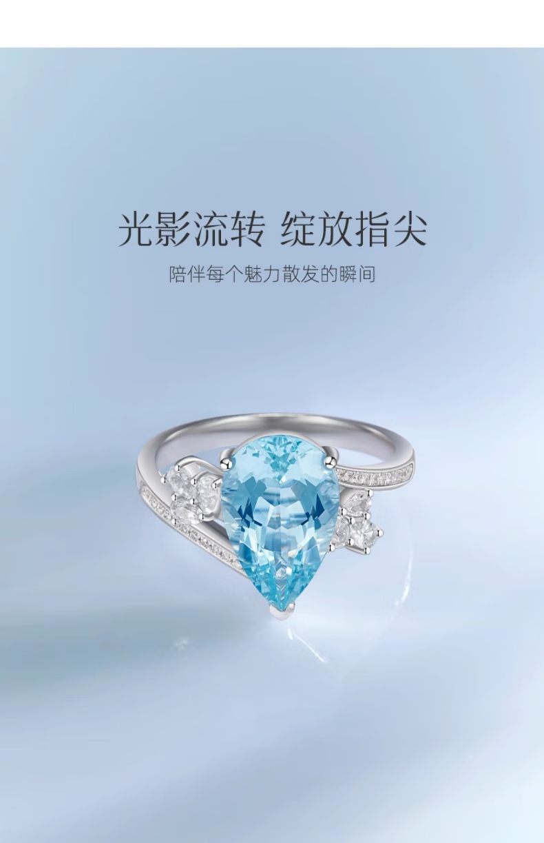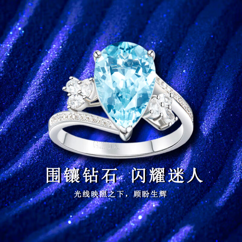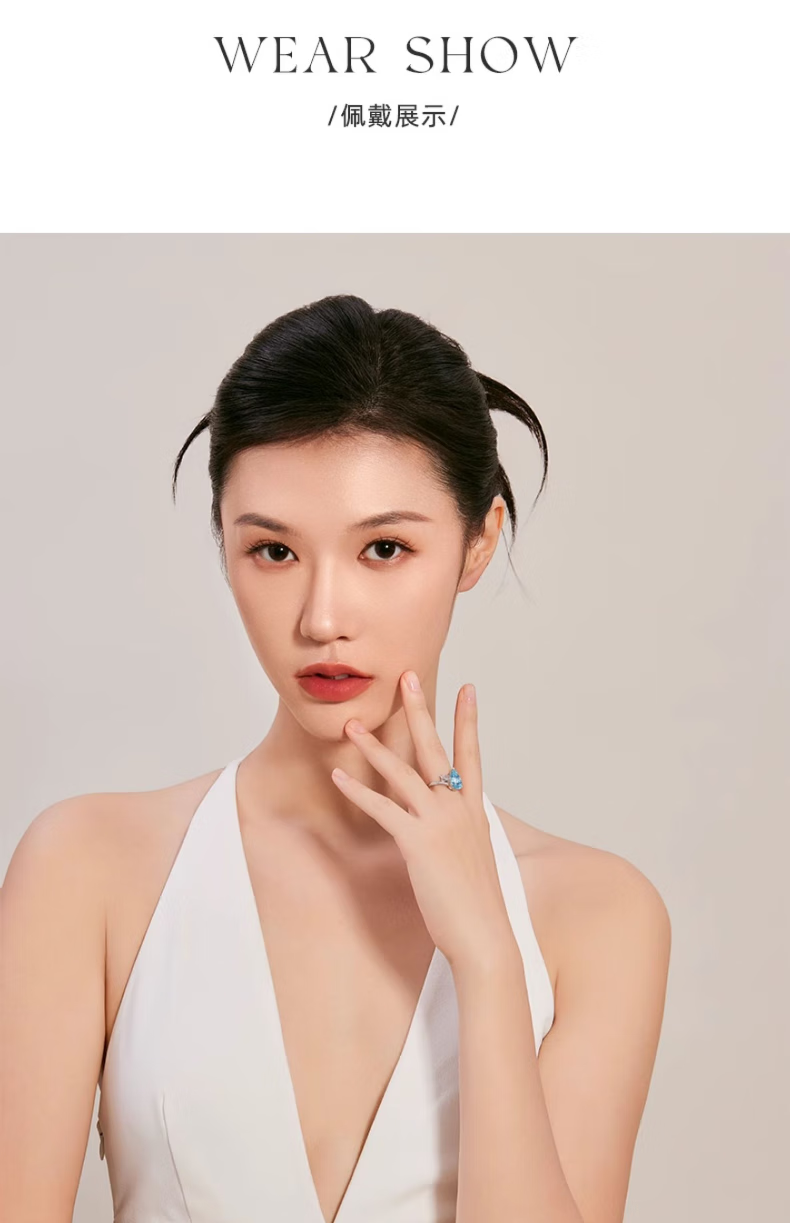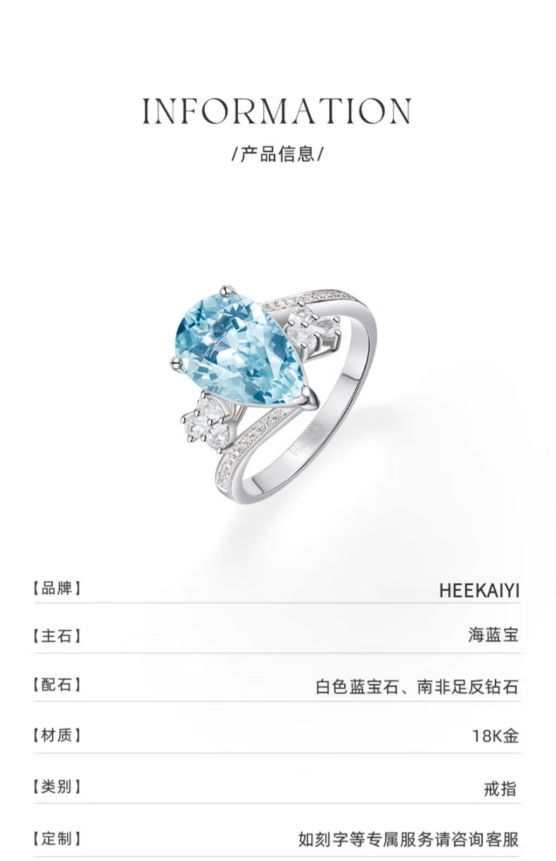 HEEKAIYI Aquamarine Ring Women's Diamond Ring Luxury Jewelry Chinese Valentine's Day Birthday Gift for Wife and Girlfriend Selected Aquamarine Ring 2.5 carats Take the photo and mark the circle number