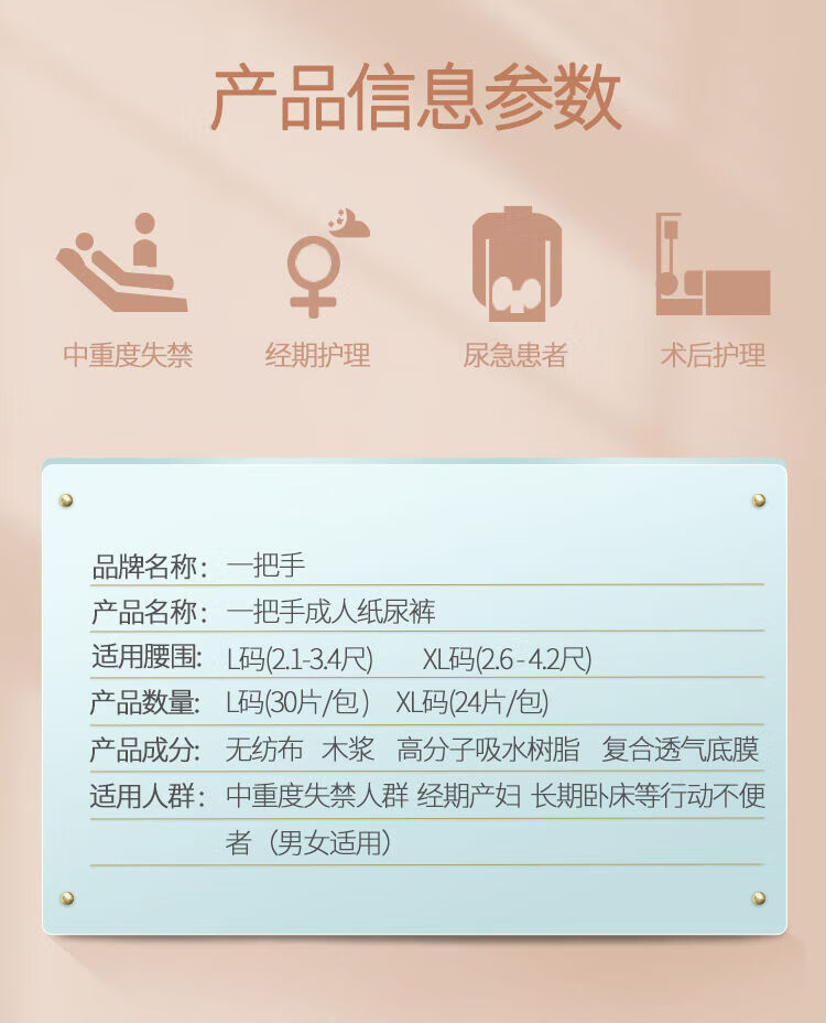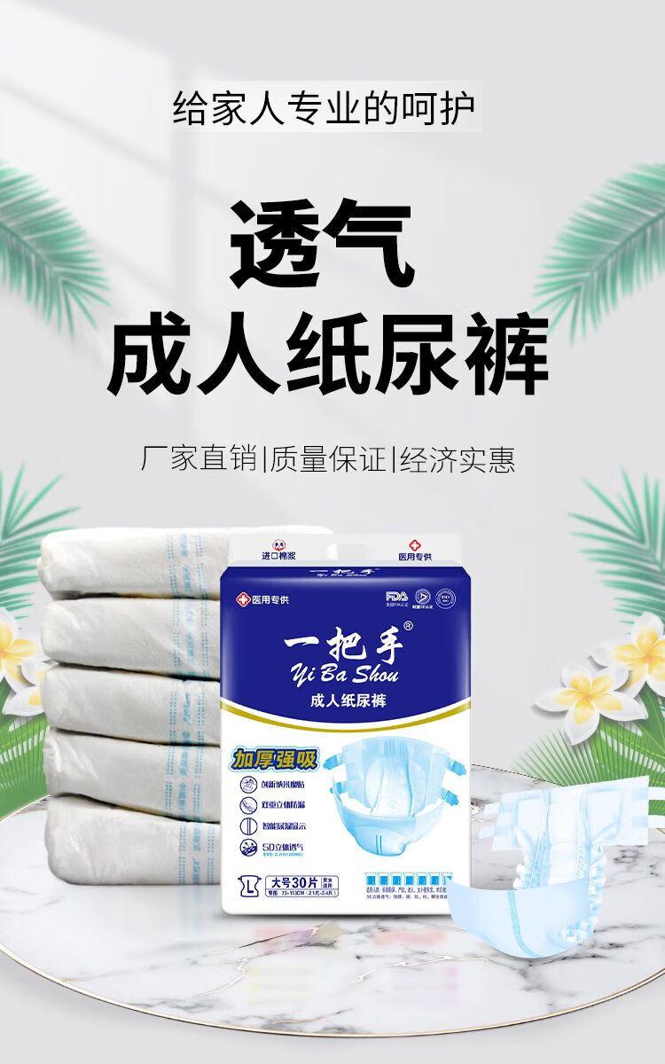 YiBaShou (yiBaShou) adult diapers, large size, unisex diapers for the elderly, thickened and absorbent, L size, 30 pieces, adhesive type