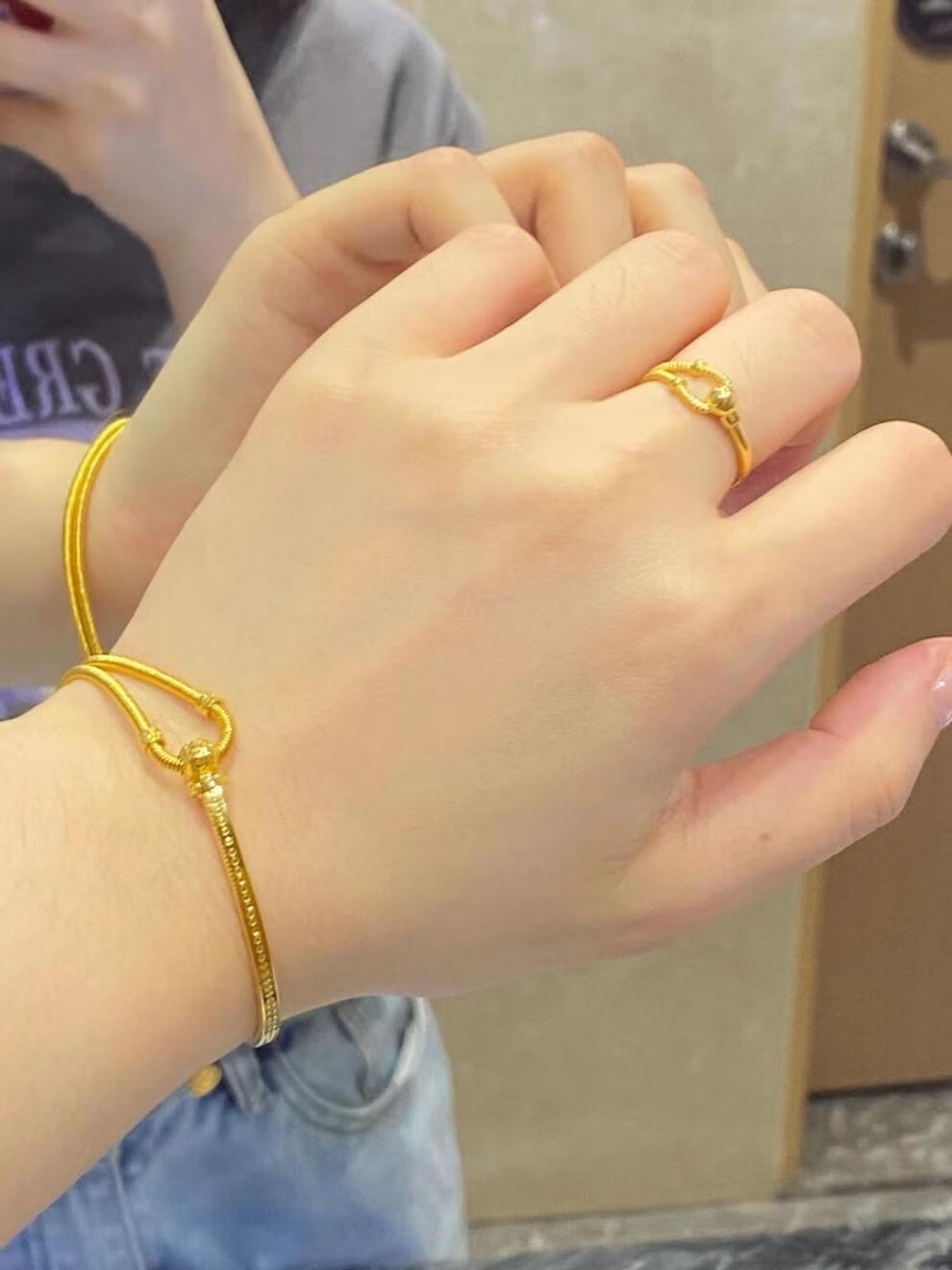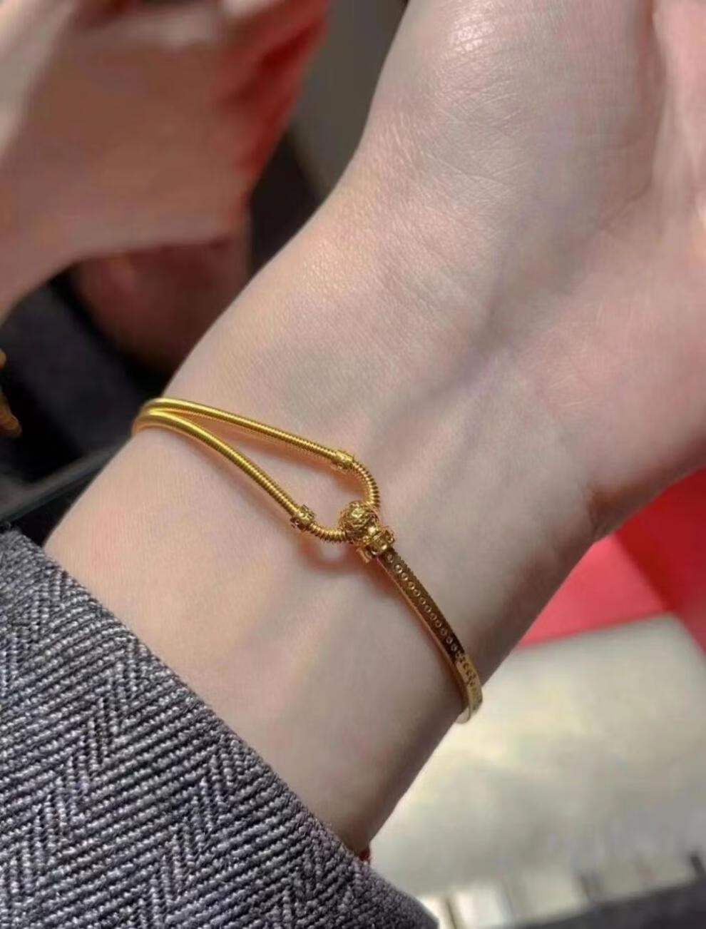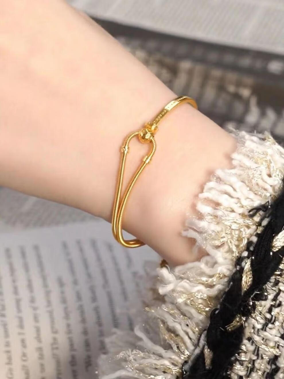 Fat Donglai same style 18K gold horseshoe buckle bracelet yellow buckle half bracelet bracelet ring for women 999 gold horseshoe buckle bracelet