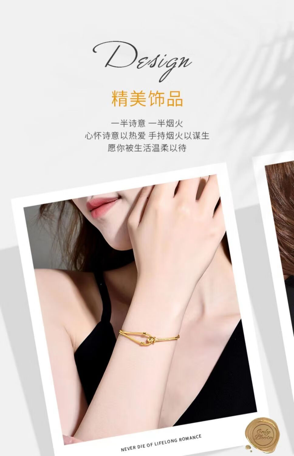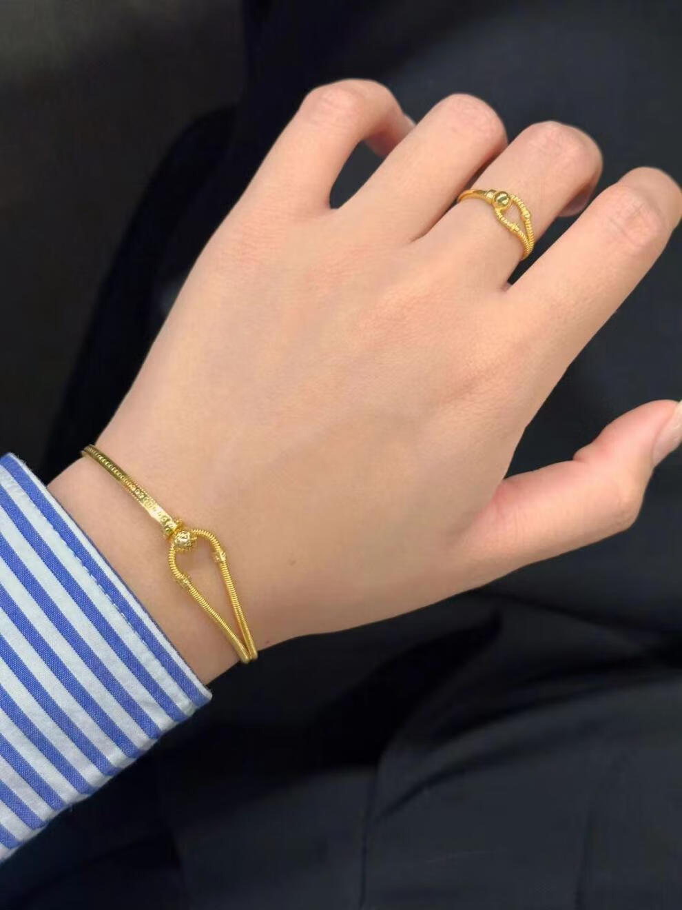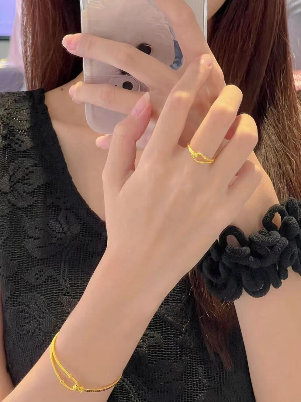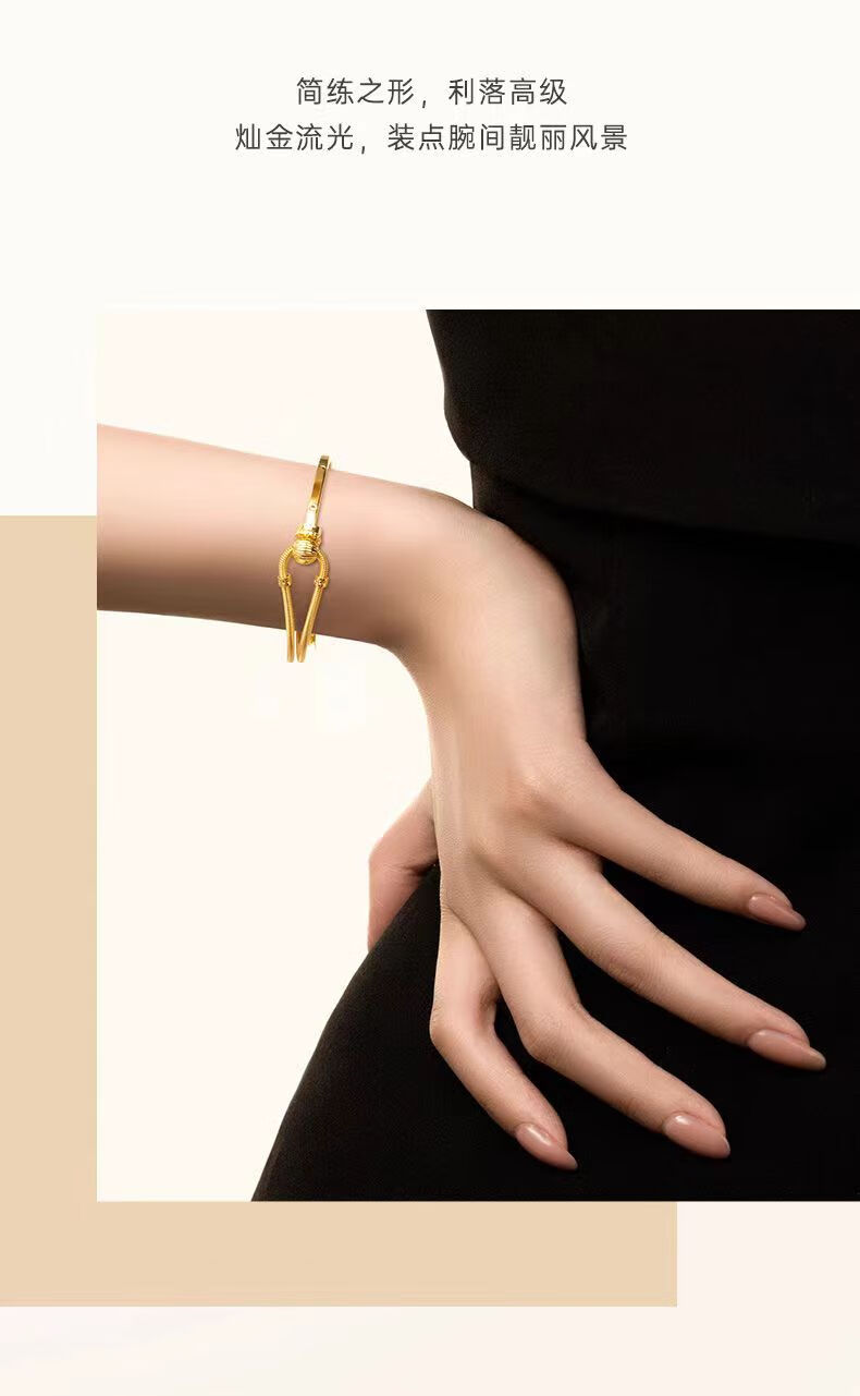 Fat Donglai same style 18K gold horseshoe buckle bracelet yellow buckle half bracelet bracelet ring for women 999 gold horseshoe buckle bracelet