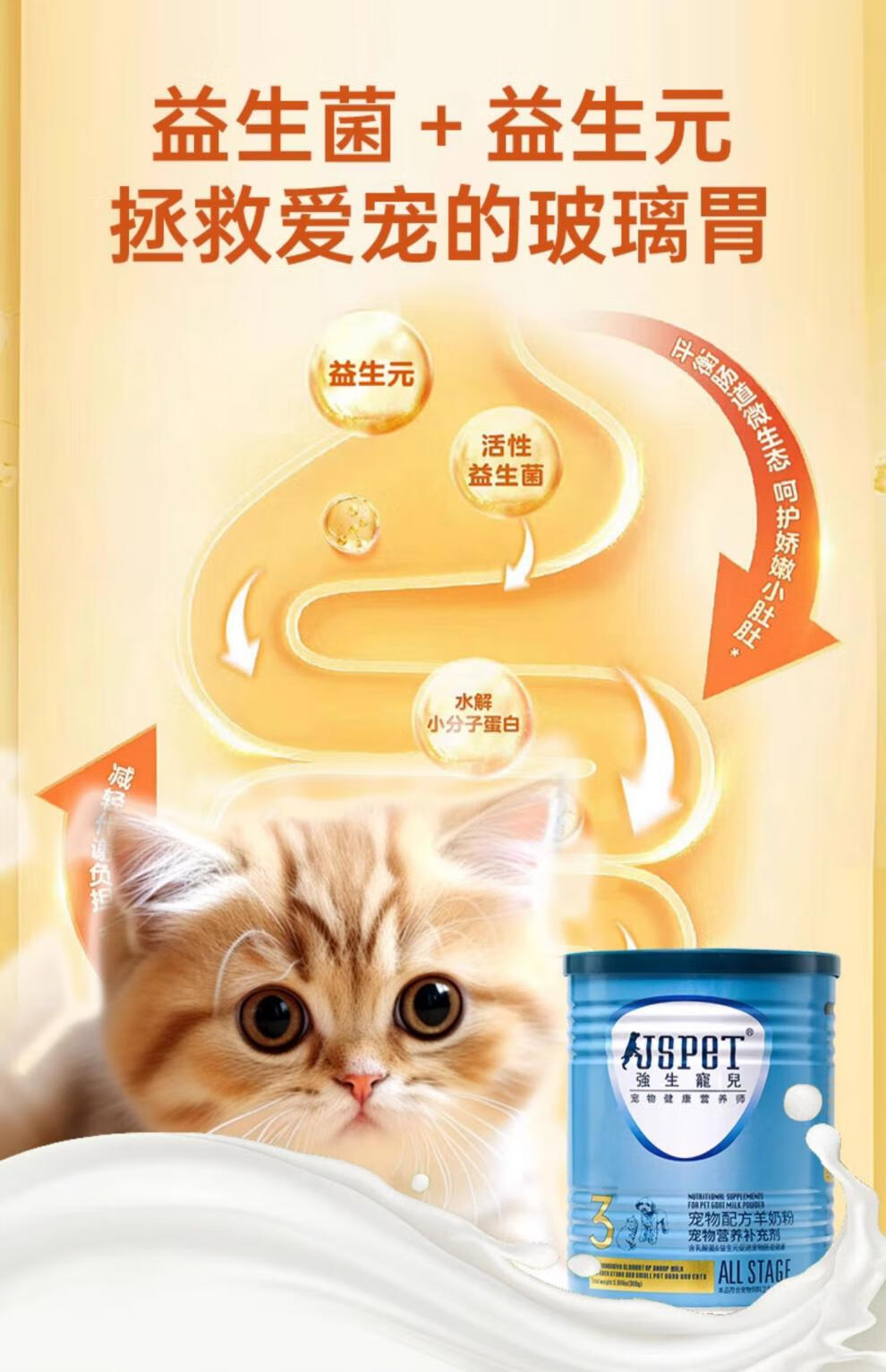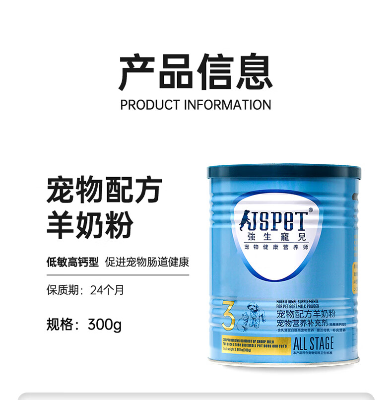 Johnson & Johnson Pet Goat Milk Powder for Cats, Dogs, Puppies and Adult Dogs, Nutritional Supplement for Newborn Dogs, Milk 300g, Upgraded 1 can of 300g, with bottle set for cats, milk source imported from the Netherlands, promotes growth and improvement (various combinations available)