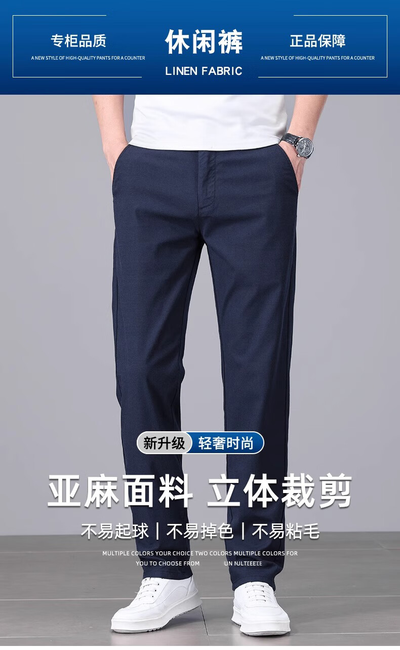 ROMON high-end old money style linen casual pants men's summer men's thin straight stretch breathable business trousers men's 8366B linen blue + 8366B linen yellow two-piece set 34 yards waist 2 feet 7 suitable for 150-160 Jin Jin equals about 0.5 kg