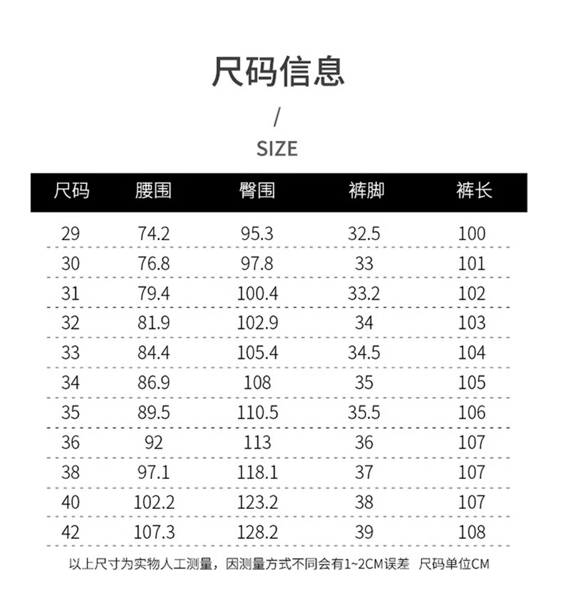 Outseam (cm) 99 cm 101.5 cm 104 cm 106.5 cm 109 cm