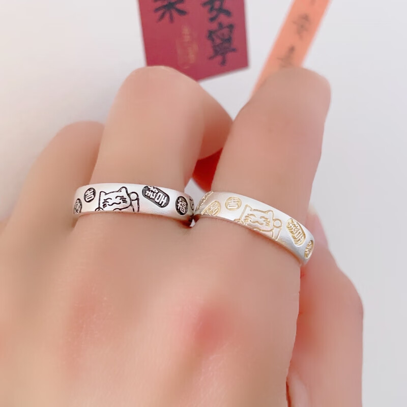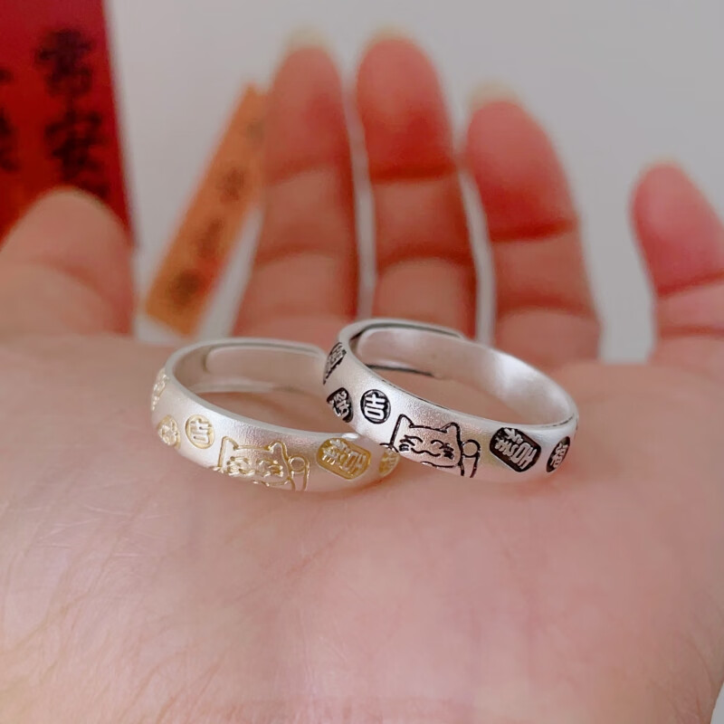 Centenary-old Minxiang pure silver 9999 sterling silver peace, joy and good fortune silver ring for women with gold tracing, national style and temperament, gold tracing 1 piece, one size fits all, adjustable mouth