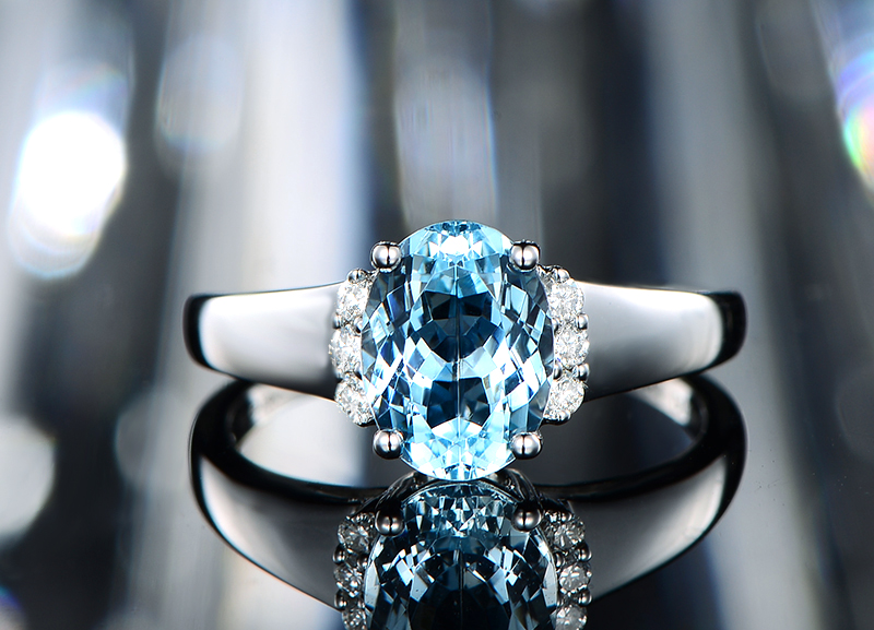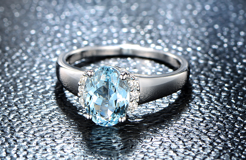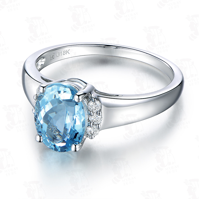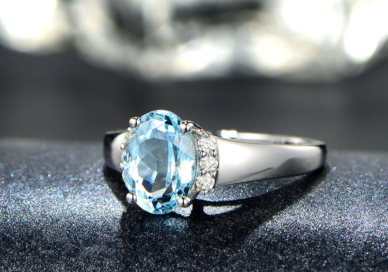 DRJEFUN jewelry 1.35 carat aquamarine ring 18K gold colored gemstone and diamond women's ring romantic noble wedding ring 15 5 days customization